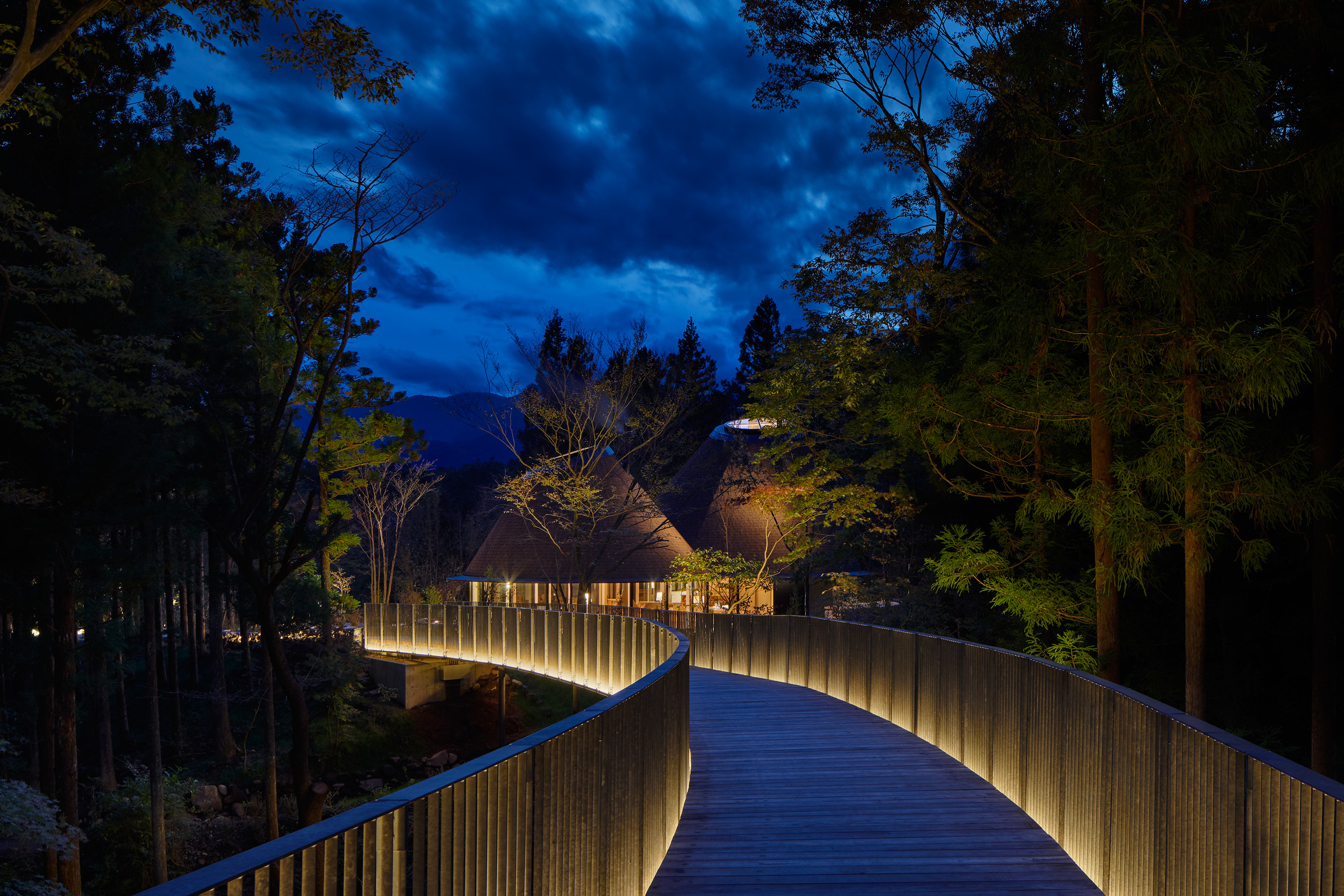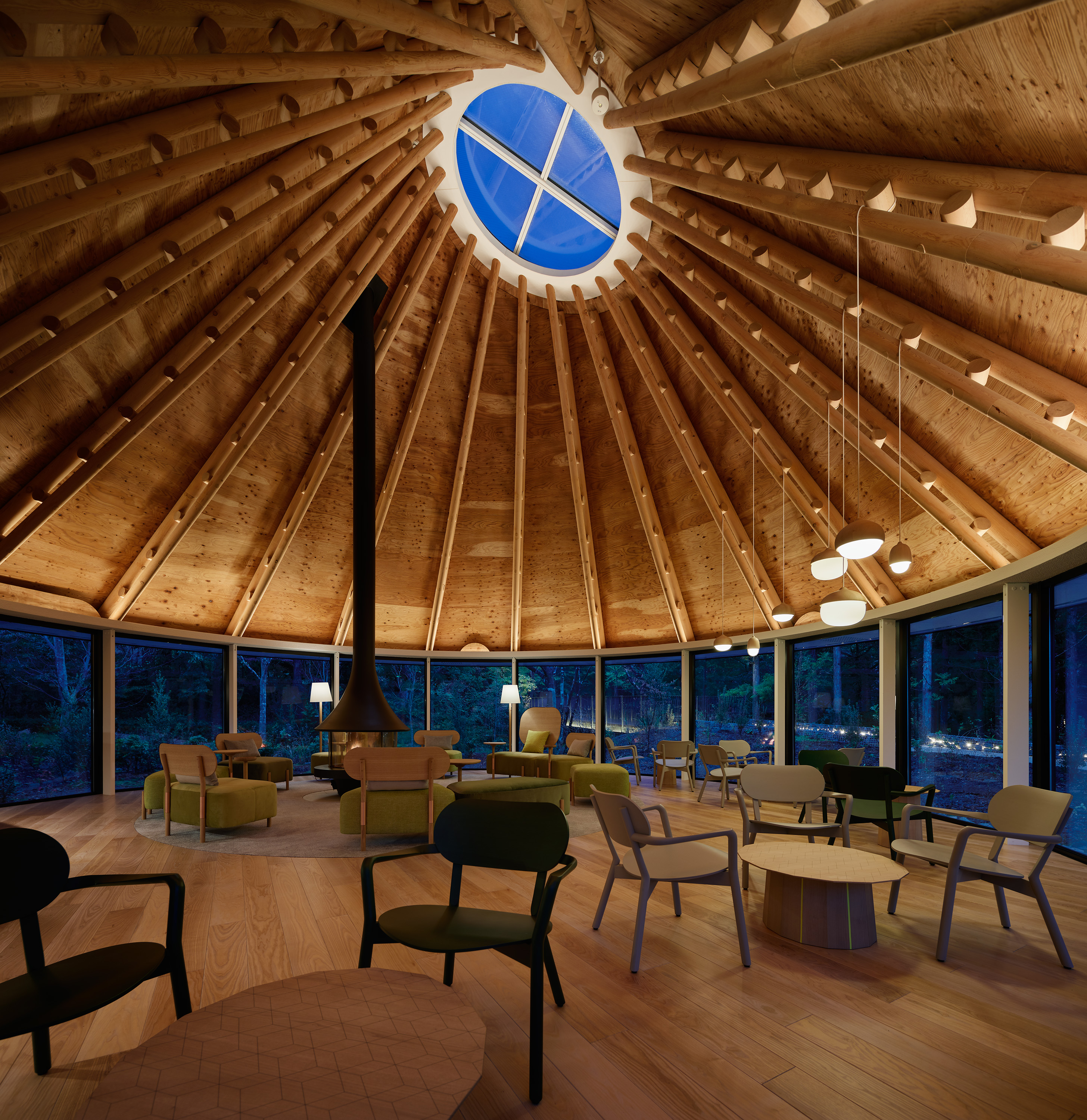 Pocopoco was built by the owner's desire to connect the two existing hotel buildings. Since 1986, the plan was to build a total of 43 rooms by expanding and renovating all the buildings that were small guest houses. The work of landscape design studio TERRA and Klein Dytham architecture (KDa) has created a new trail that can bend through the lush forest as a connection between the two buildings. The newly built building is a family-oriented clubhouse and an activity space for all hotel guests. When you walk in the forest, you can see three conical roofs at the intersection of the promenade. The material was simple and natural both on the outside and inside. It is a peaceful place in nature where you can feel the vitality of one space connecting to another in a cheerful harmony of all indoor and outdoor spaces.