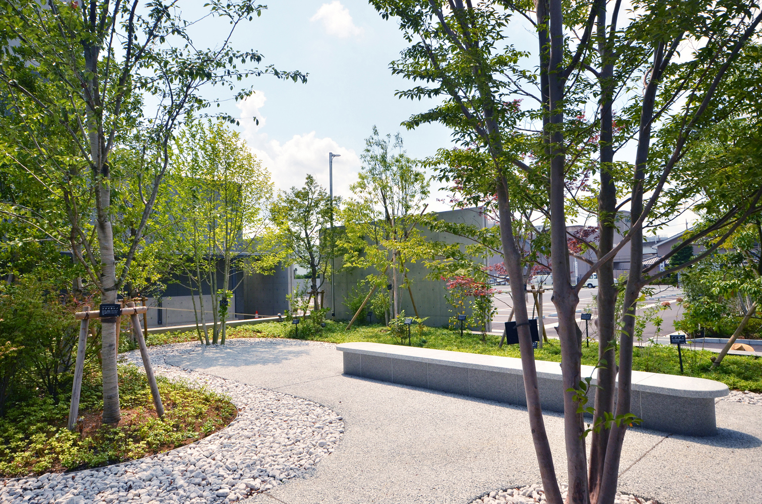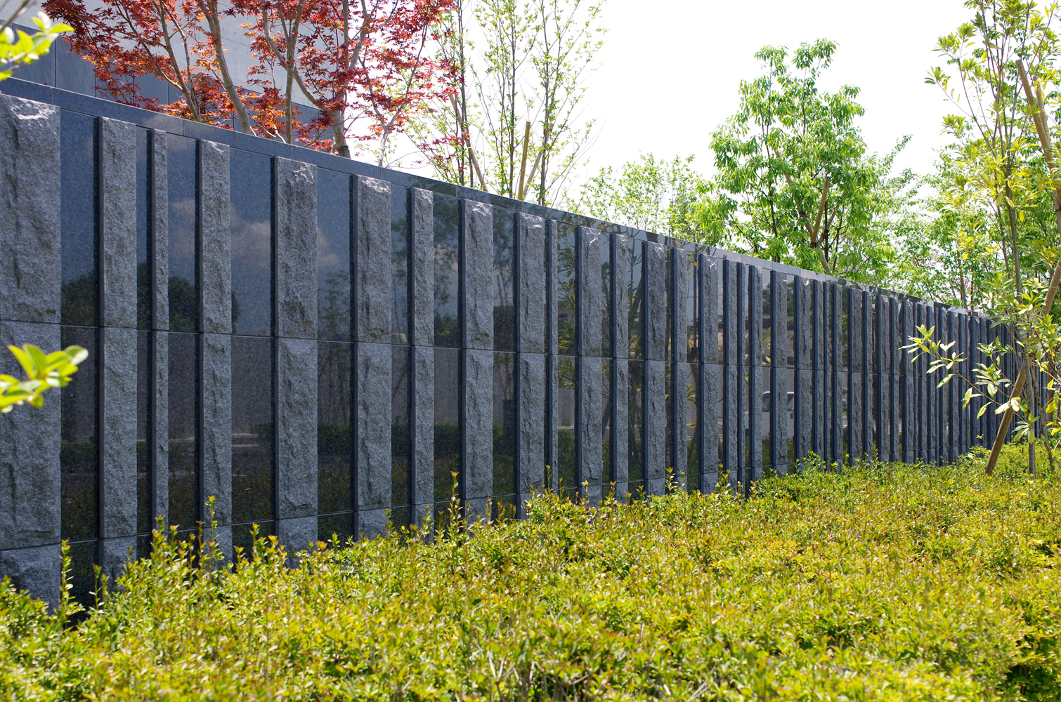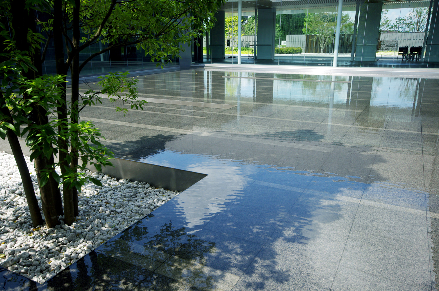 The funeral hall built in Tsuchiura was designed to allow visitors to recall memories with the deceased. To the north and south, a "green axis" is formed along the mountain range containing Tsuchiura's familiar landscape, Mt. Tsukuba, and to the east and west, there is a "water space axis" connecting the Sakura and Kasumigaura rivers, along which a wide frame is placed. The "Green Axis" features a prominent wall and a bamboo bank from the entrance, welcoming mourners and leading them to a place where they part ways with the sleeping deceased. Three underwater gardens leading visitors from the entrance to the waiting room are arranged along the "water space axis". The water flows gently down the wall, and clouds and sunlight are reflected by the water, comforting the hearts of mourners who want to remember their loved ones.