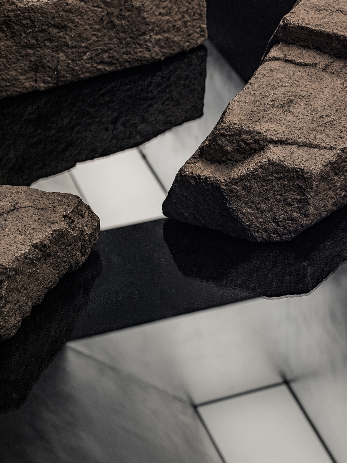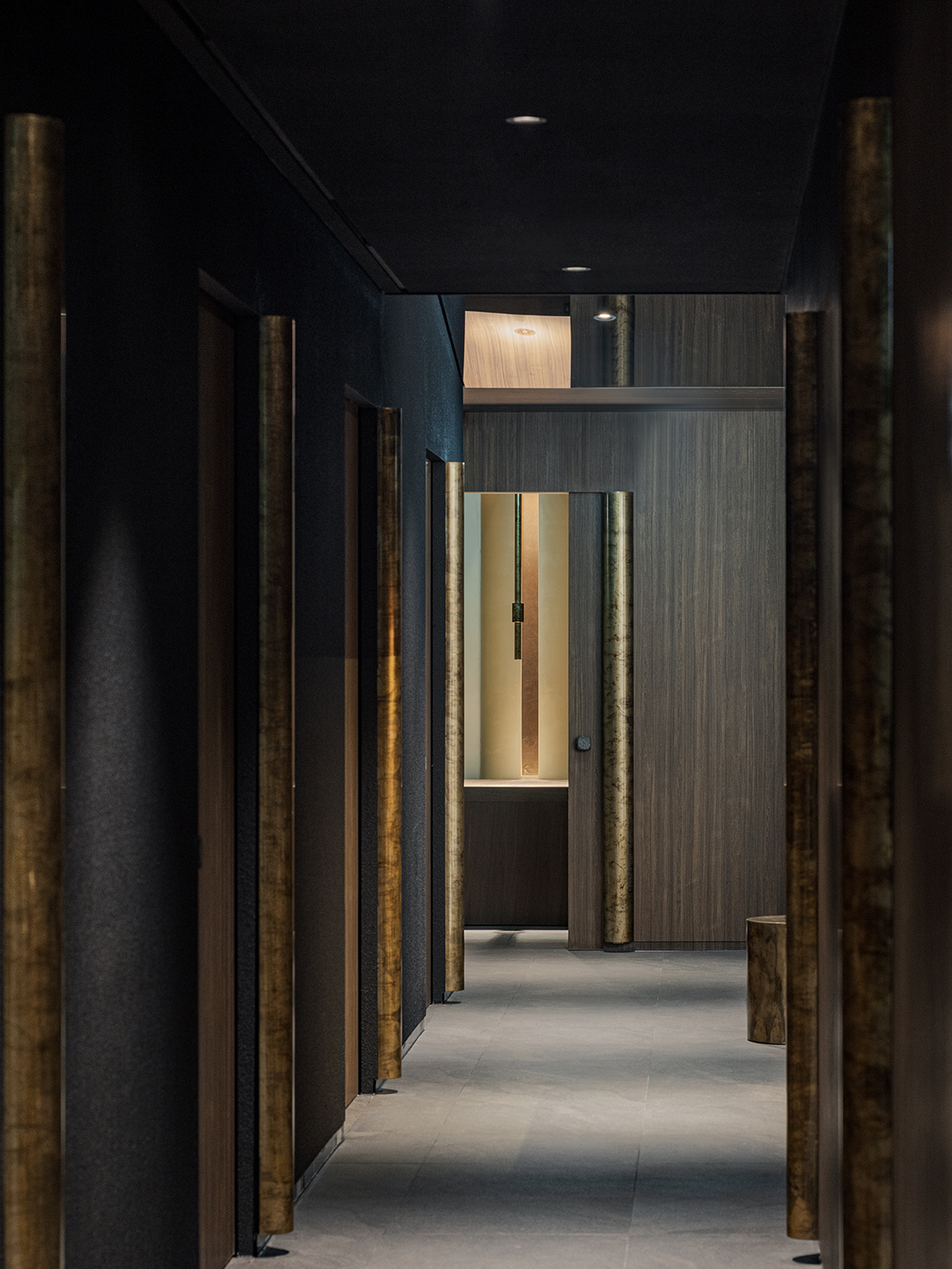 Designstudiominwoo* is designed to make two spaces feel different under the concept of "TIMELESS MODERNITY," which does not change over time. The world from the entrance through two roads is the same, but it gives a different feeling. The first hall space, which entered through the fork, reflected dimly the figures with the light falling from the high ceiling, imagining fog in the pond. A quiet stone work is located on the pond, creating an atmosphere of space. An object with different physical properties made of triangular horns becomes a point of space. The second room space of the forked road is reminiscent of the light from the wall and reflected through the trees, expressing the beauty of soft light. The space composition of Otsuseiromushi consists largely of an entrance, a hall, a room, and a kitchen. A considerable area of 210PY was largely classified into holes and rooms (15ea), and scenes in different spaces were created.