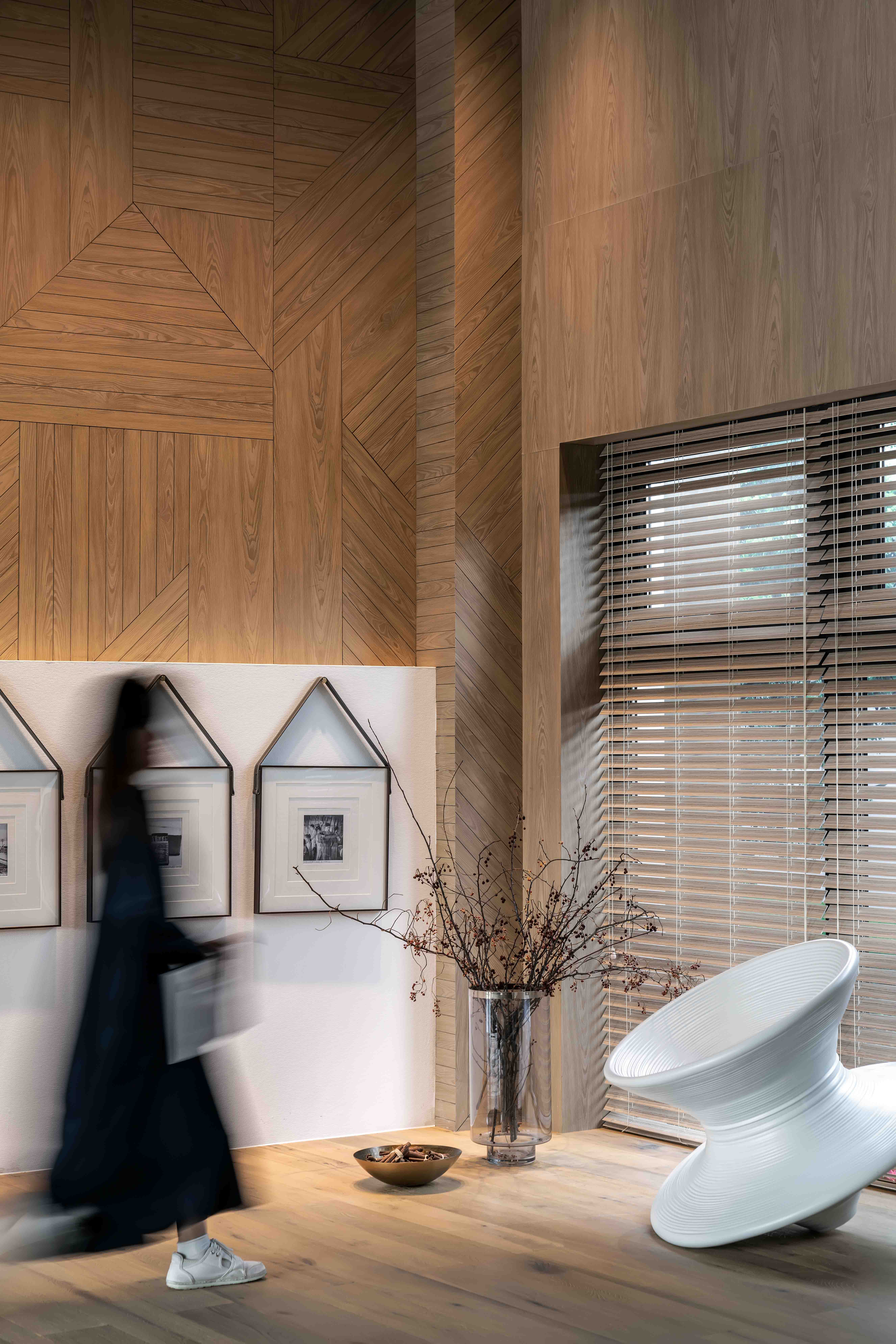 중국 문화에서는 항상 산과 강 사이에 “땅”과 “천국”이 있으며, 모든 것의 뿌리는 사각형과 원 사이에 있다고 여긴다. 잠강(Zhanjiang)의 바다낚시 문화는 현지인들의 염원과 추억을 담고 있다. 디자이너들은 바다낚시 문화의 독특한 상징물을 분석, 요약, 추출하여 상점의 모든 디테일 요소에 접목시켰다. 입구에서 건물 내부로 들어오면, 금속과 아크릴 같은 다른 재료가 사용된 현지 어부의 일상이 묘사된 그림이 보인다. 햇빛과 조명으로 보완된 이 리조트에서는 반짝이는 바다와 일출을 감상할 수 있다. 검게 그을린 나무 질감이 특징인 긴 벤치는 아열대 기후대에 사는 사람들의 단순한 생활양식을 구현하고 있으며, 이 지역의 재료로 만들어진 것이다. 그 위에는 물고기 화석에서 영감을 얻은 장식이 걸려 있고, 주변 책장에는 보트 요소가 포함되어 있어, 곳곳에서 지역 문화를 반영한 요소를 느낄 수 있다.