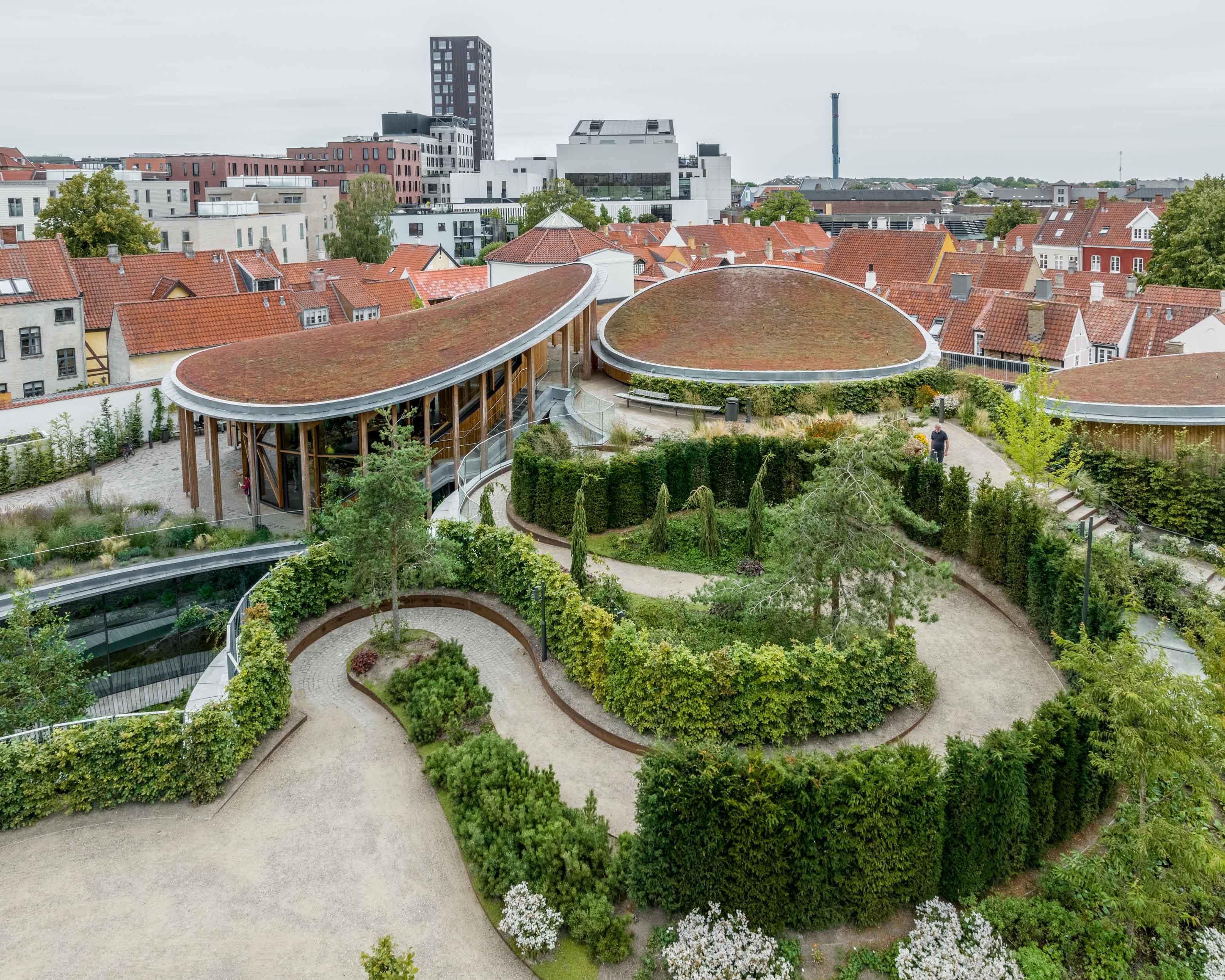 The HC Andersen’s Museum would play a core role in new Urban-scape of Odense city. The development plan is to close off one of the arterial roads and reconnect two parts of the city; new and old, which are currently separated. The Garden of the museum is to offer a new quality public area, giving life to this “in between” zone. One part of the city where the birth house of the writer is, remains the medieval townscape with small and meandering streets, the opposite of modern urban development with wide and straight fast lanes. The meandering path and hedge garden is to bring back the human scale quality to make a soft link to the urban area of the city. During the construction of the building, we were put in the unique situation, the Pandemic. it imposed us all unexpected challenges in carrying the work, in sequencing, planning, sourcing and so on. The reality and norm we were accustomed to in daily activities were questioned by the cause that were intangible and incomprehensible. It felt to me as if we were experiencing Andersen’s world of fairytales, flighting the invisible or learn to adapt, cope with the unknow. His stories speak to us still today.