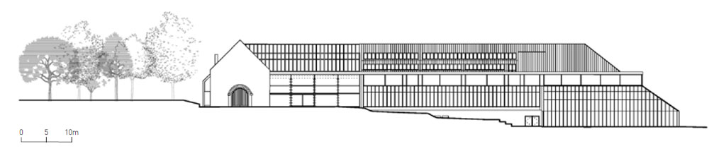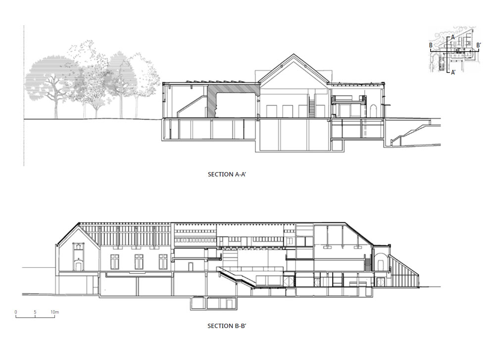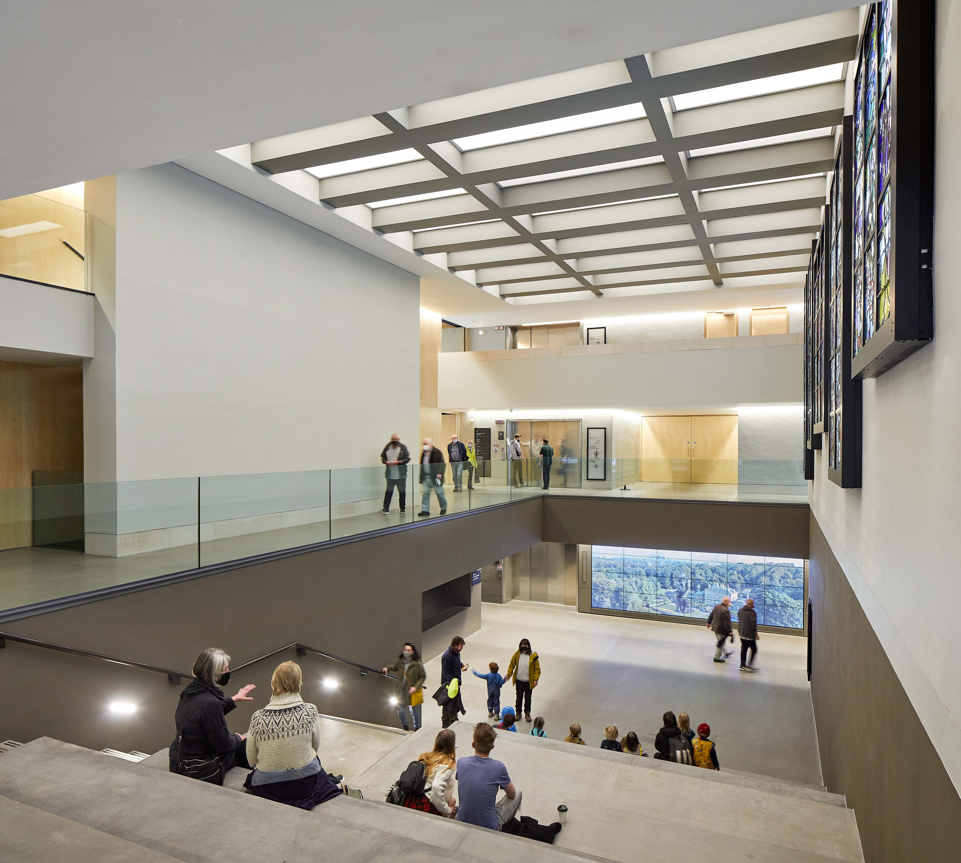 Working with a team of specialists, John McAslan + Partners focussed on three key project aims: to seamlessly repair the building and improve its environmental performance by a “fabric first” approach to its renovation; to strengthen the building’s parkland setting; and, after careful consideration to open up select areas of the interior to articulate the horizontal and vertical movement through the galleries, so that a greatly increased proportion of the collection can be enjoyed at any one time. Adjoining the entrance sequence, a new orientation volume connects the museum levels up to the mezzanine galleries and down by a stepped seating arrangement to the newly opened-up garden-level floor below. The latter now accommodates an exhibition and events gallery connected to a viewable art storage space, workshops, the rejuvenated café and parkland beyond.