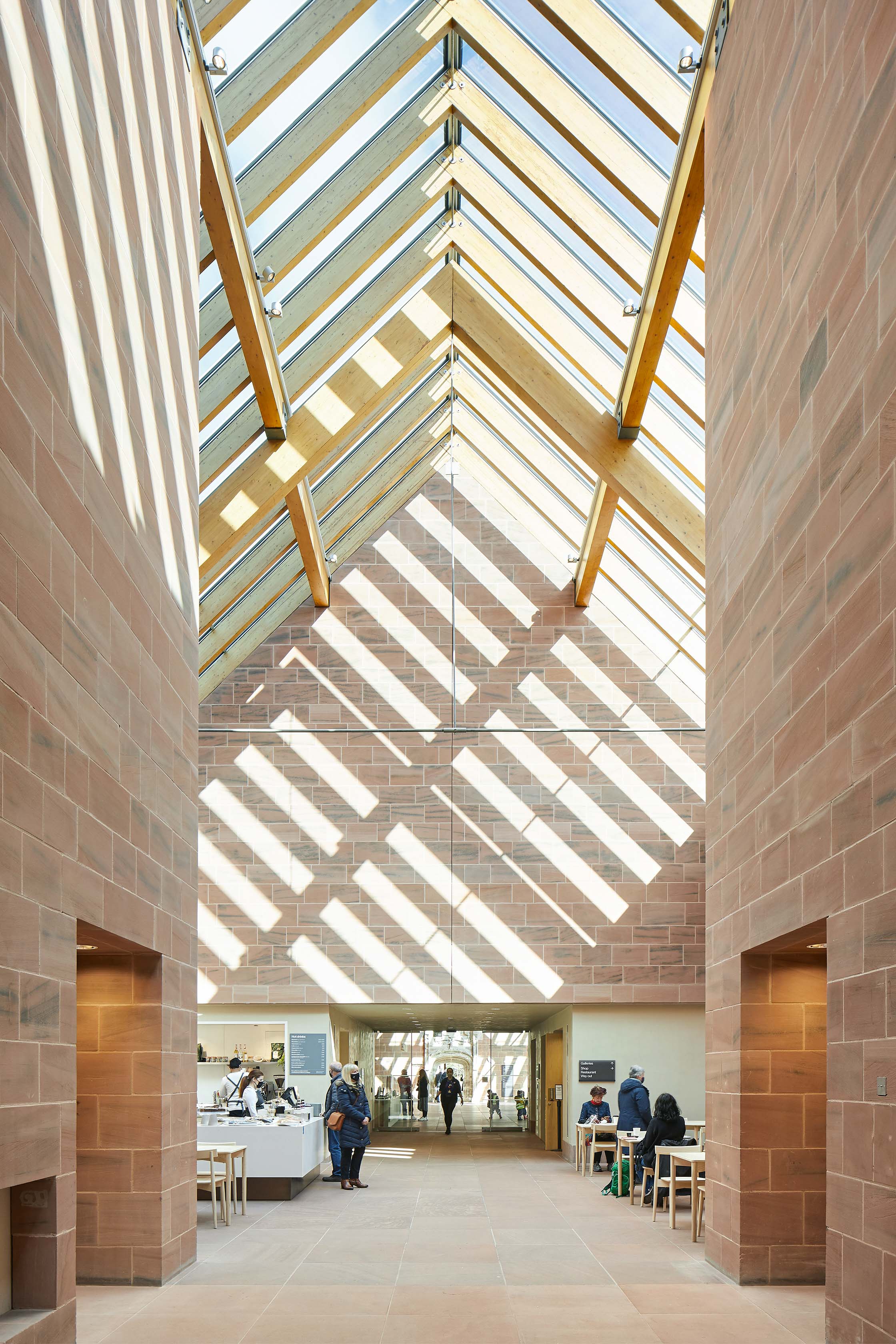 Back in the galleries, visitors will encounter the collection that is now curated thematically and using immersive narrative as the guiding vision for the Collection’s museography. In total, an additional 35 per cent of the gallery space has now been added from the previous arrangement and with the great majority of the collection on site for accessible storage and to assist with its rotation. The project is a strong example of John McAslan + Partners’ interest in reuse and, especially, in working with significant 20th century buildings. The Burrell has been adapted and refurbished focusing on a ‘Fabric First’ approach, maximising the benefits of improving the building’s existing built fabric. Within this approach, for instance, the re-use of existing aluminium glazing frames has saved over 8.5 tonnes of new aluminium from being added to the building which in turn saved 100 tonnes of carbon emissions associated with new aluminium production.
