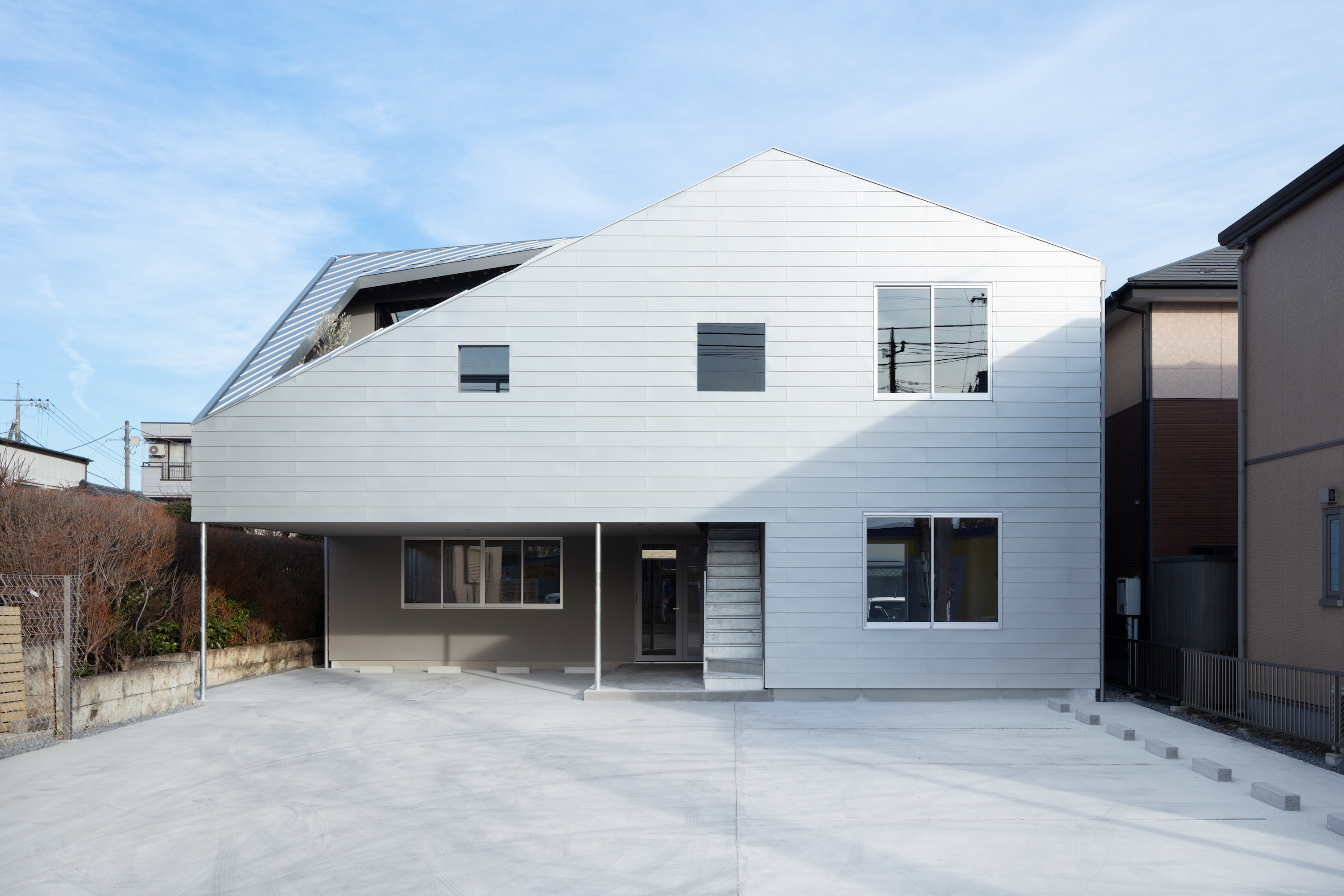 일본 규제 내에서 일조권을 확보하기 위해서 건물 높이를 10m 이하로 설정하고, 주변과 어우러지는 형태를 모색할 결과 정육면체 상부의 네 꼭짓점이 낮아진 사방에서 바라봤을 때 박공지붕집처럼 보이는 형태가 만들어졌다. 처마의 높이는 이웃집들과 일직선으로 맞춰져 이웃집들에 대한 간섭을 최소화 한다. 지붕은 사면을 박공지붕집 모양으로 만들어 쌍곡선 포물선의 모양을 가지고 있다. HP 쉘의 곡면은 60mm 두께의 서까래에 20mm 두께의 목재 부재가 비틀어 설치되어 있다. 곡면 합판은 못으로 고정되었으며, 전체 지붕은 입식 이음새 지붕은 구부린 형태다. 테라스 위의 지붕에도 넓은 개구부가 있으며, 테라스는 주변 환경과 격리된 공간이자 세입자만만 사용할 수 있는 자유로운 야외 공간이다.