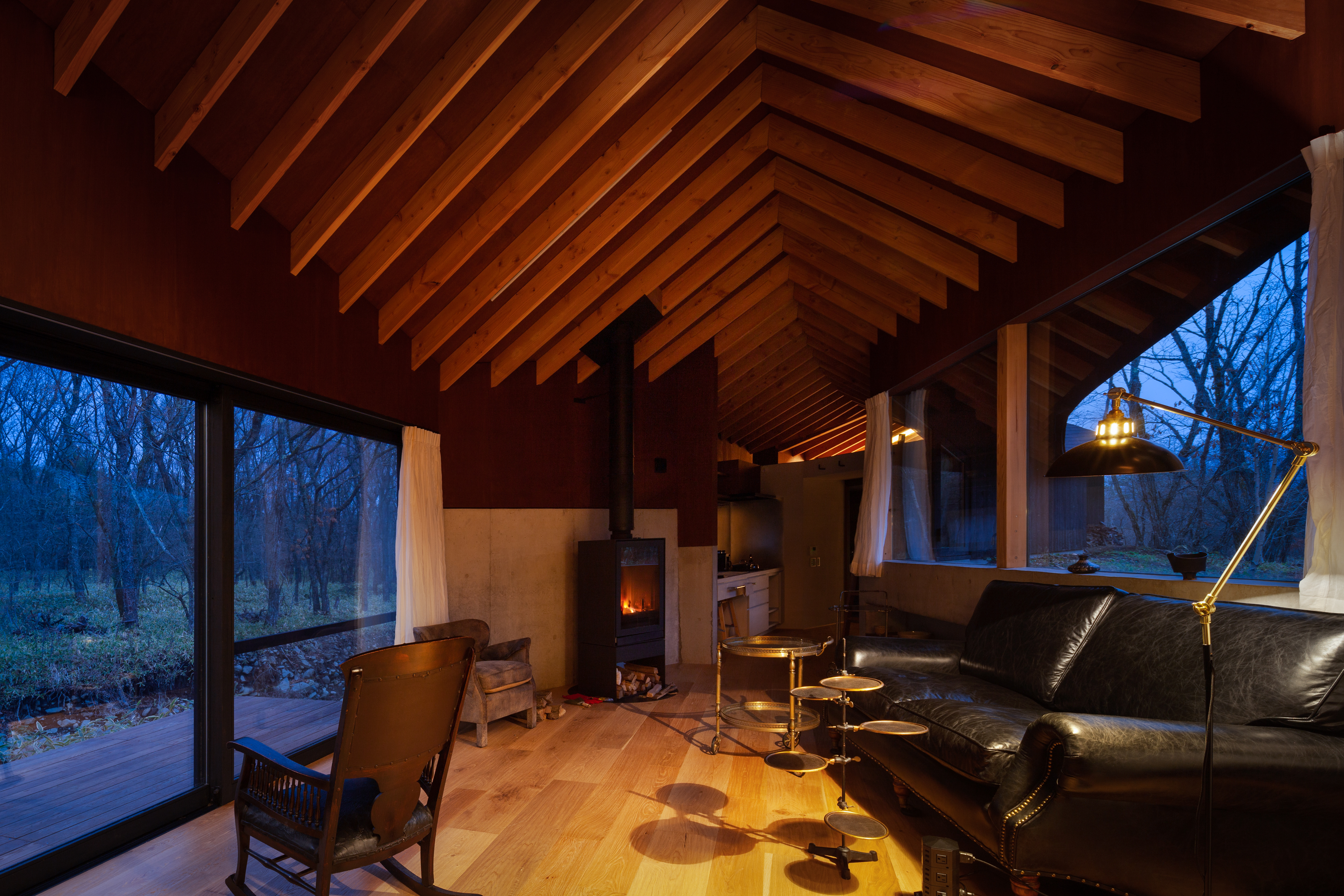 Nagano, where the house has built is a region with a height of 1,380m and renowned for its severe cold of winter. However, it’s surrounded by non-destroyed nature and it’s the place where a hut of Jomon period (about 14,000-1,000 BC) was found nearby. Through design, it has been intended to make the resident closer to the nature in his daily life. The main living space was planned about 900mm below the ground for warmth. The elevation design was designed to reflect the curve of the roof, and the shape of the curve reminds us of whales and dinosaurs. This house, which follows the shape of a primitive house, is the result of conformity rather than resistance to nature in the process of planning the necessary space.