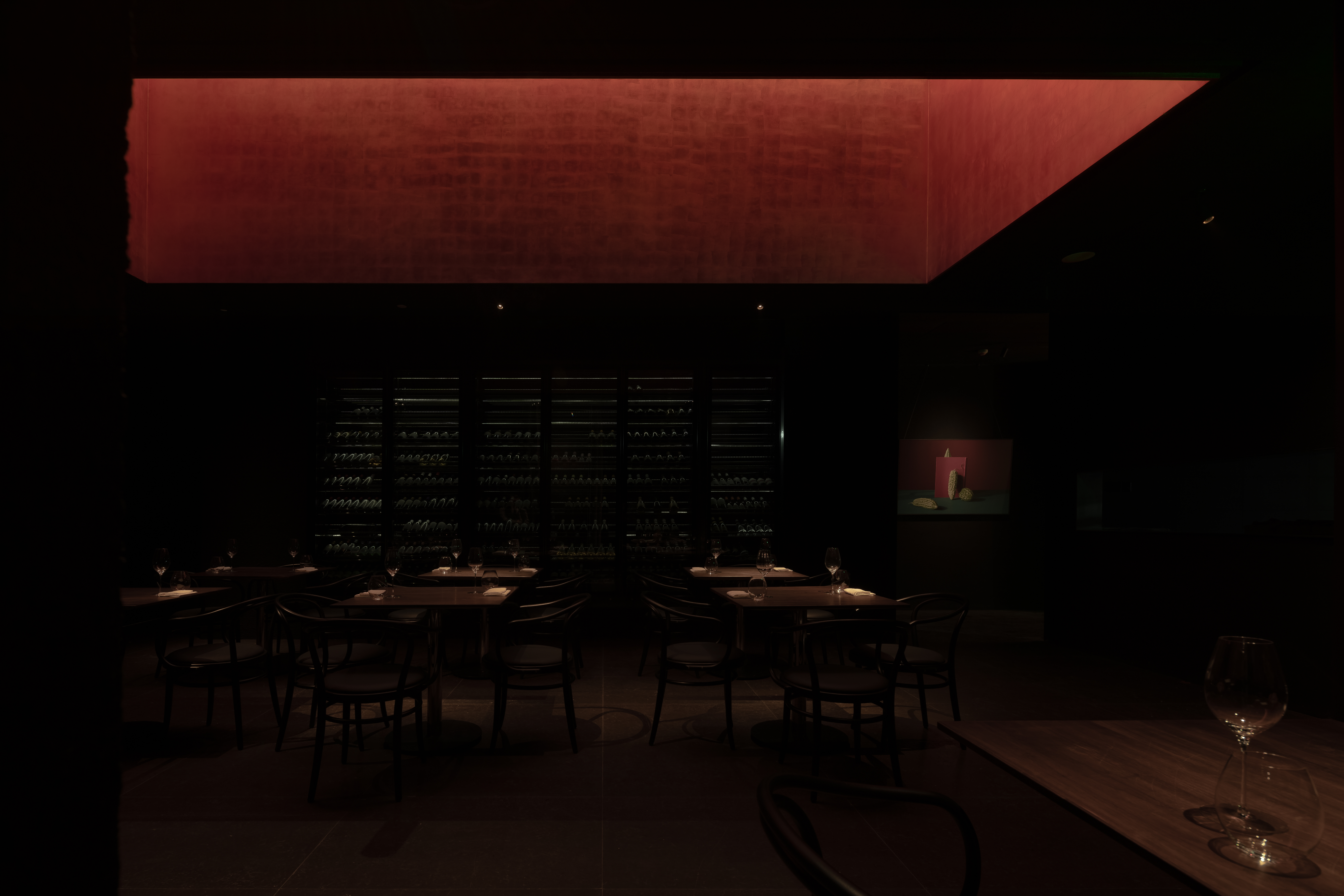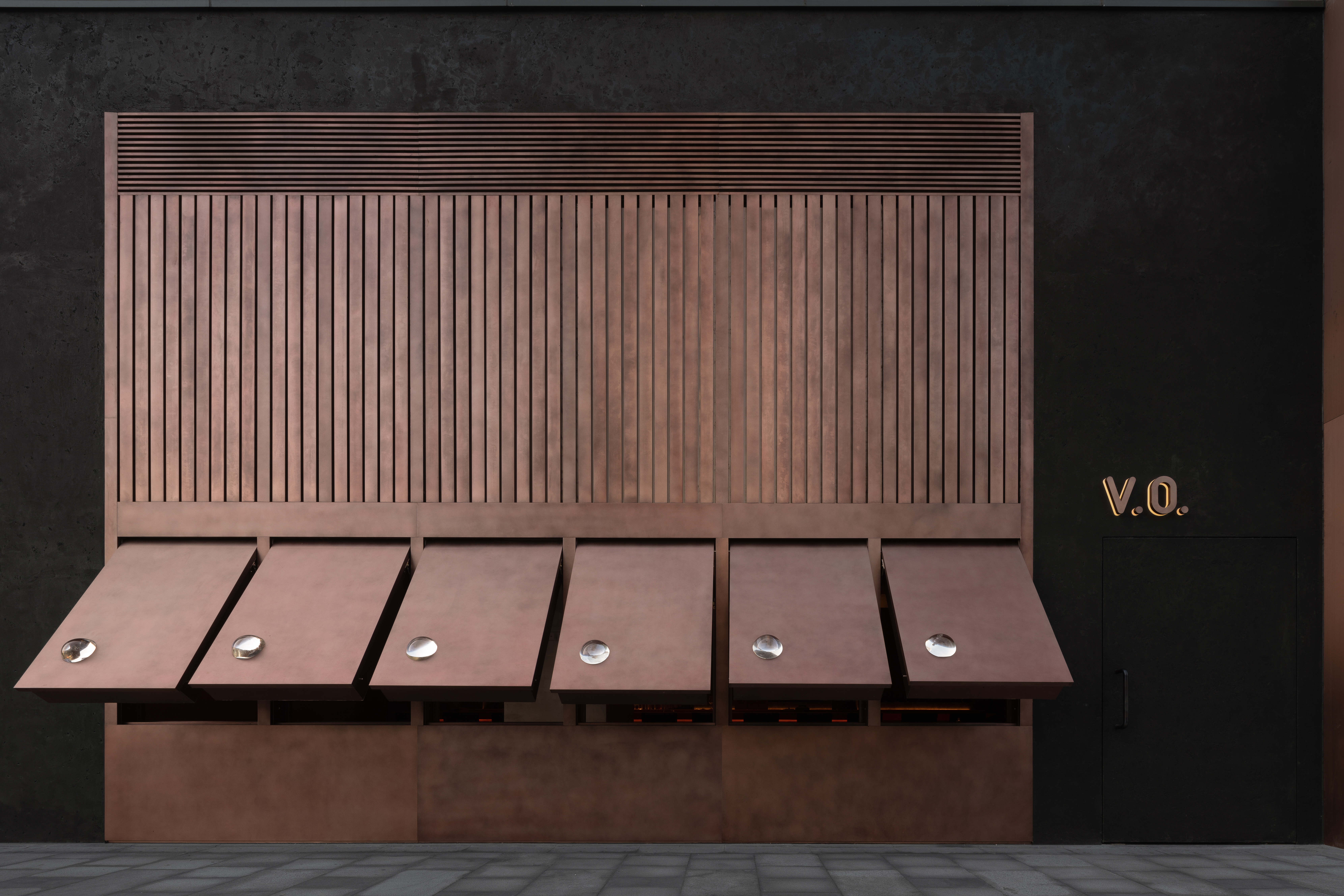 Voisin Organique, which is located in the tall hill of Futian, Shenzhen is a restaurant which serves modern Chinese cuisine coming from the organic farm to table right away. The restaurant provides interior expressing traditional beauty and fine dining experience with an ancient Chinese cuisine made with ingredients from his farm with ECOCERT certification. The owner asked to design a lounge, a fine dining area, and a 110-square-meter kitchen in the space. The restaurant is planned as a towering brass façade that attracts people's curiosity about the interior with the light coming through custom-made convex lenses and prevents the dazzling sunlight. This restaurant is a place where you can eat in an atmosphere where you can enjoy picnics in the valley.