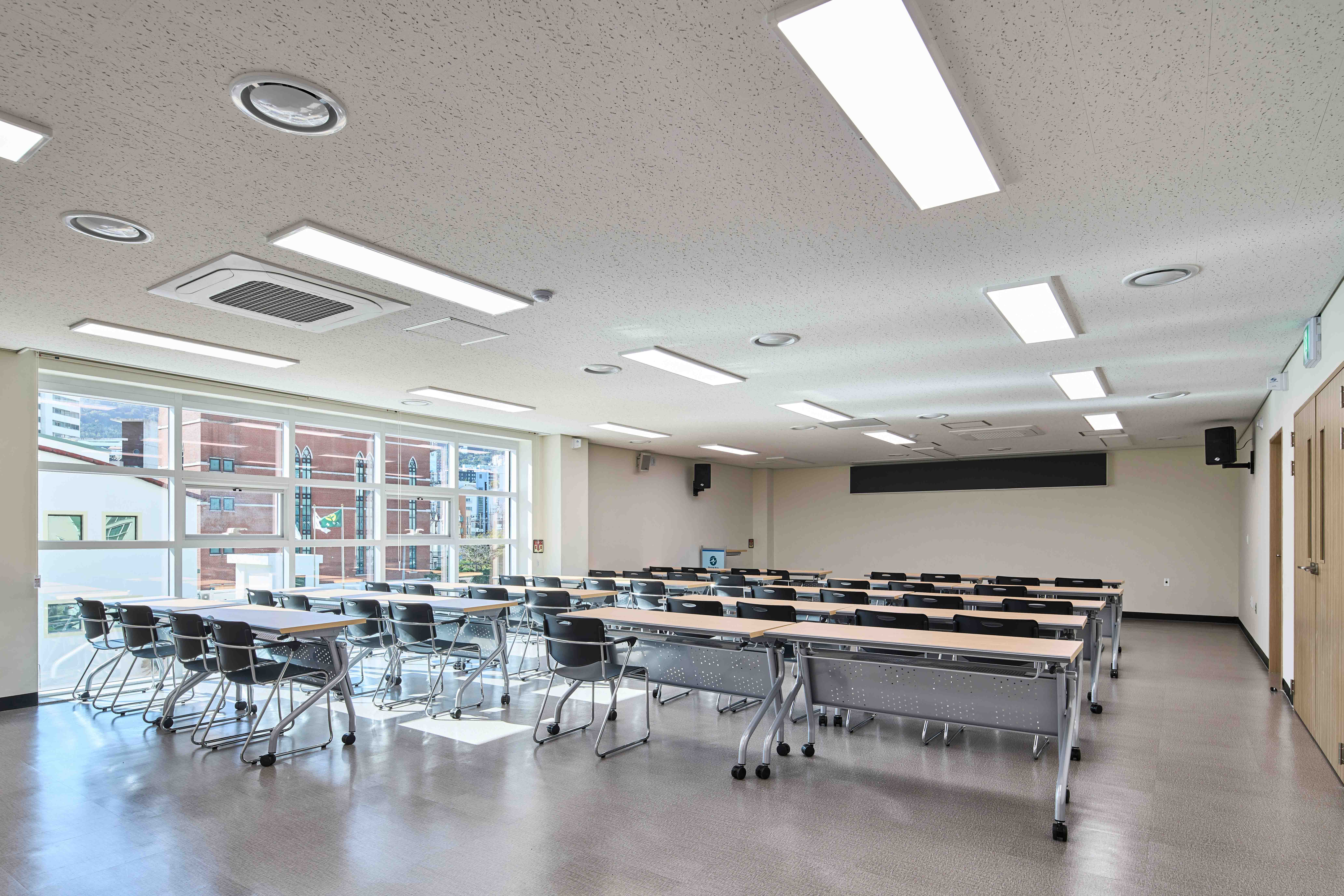 The main exterior material was aluminum panel and external insulation system (stucco finish), which was the same as and contrary to the physical properties of existing buildings. The existing building and the expansion plan are divided on the elevation around the space of the aluminum panel ribbon, and the volume of the extension with cognition and symbolism expresses the concept of collection and diversity in texture through a stucco finish. In addition, it was planned to create a sense of depth on the elevation by utilizing the physical properties of materials and to create a new light in the city by newly interpreting the sense of depth on the surface of existing buildings.