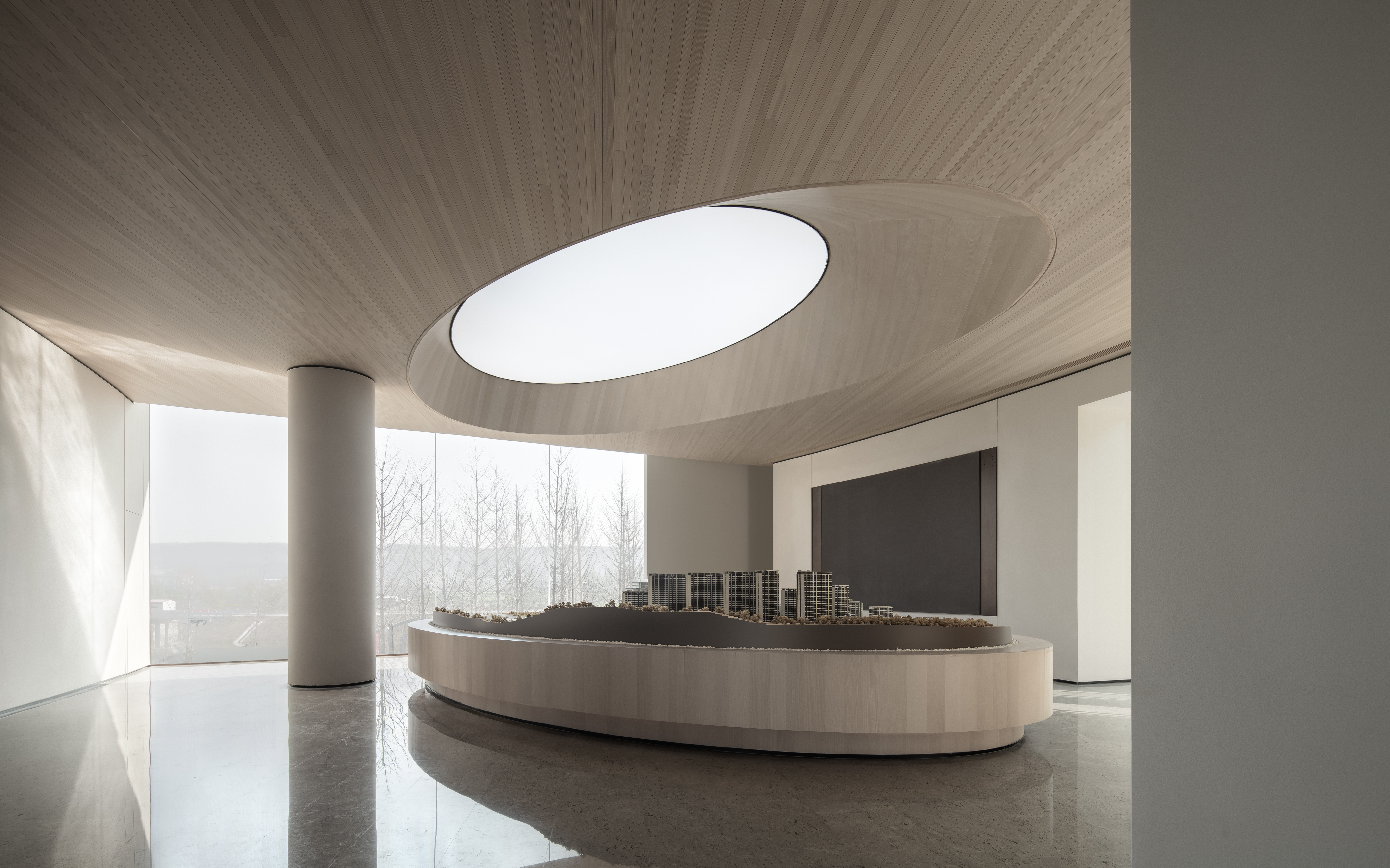 호숫가 옆에 거주는 것은 사람들에게 자연 가까이에서 평화로운 삶을 보낼 수 있는 기회한다. 호수를 조망하는 세일즈센터는 중국 시안의 주택분양사무소다. 인구가 밀집된 지역과 외곽지역 사이에 위치하여 도시민들에게 이상적인 생활양식을 제공할 수 있는 완벽한 장소를 보여준다. 디자인은 가을 호수 경관으로 전체적인 공간의 톤이 설정됐으며, 돌, 나무, 갈대로 표현된 다양한 설치물이 공간을 장식하고 있다. 또한, 빛과 그림자의 상호작용으로 서로 다른 공간적 장면의 대비를 강조된다. 질서정연하게 배열된 기둥은 자연광의 변화에 따라 복도에 신비롭고 매혹적인 분위기의 그림자를 그려낸다. 공간 곳곳에 자연과 아이디어, 창의성을 결합한 현대미술 작품이 전시되어 미적 욕구를 충족시는 동시에 쾌적하고 편안한 환경을 제공하는 곳이다.