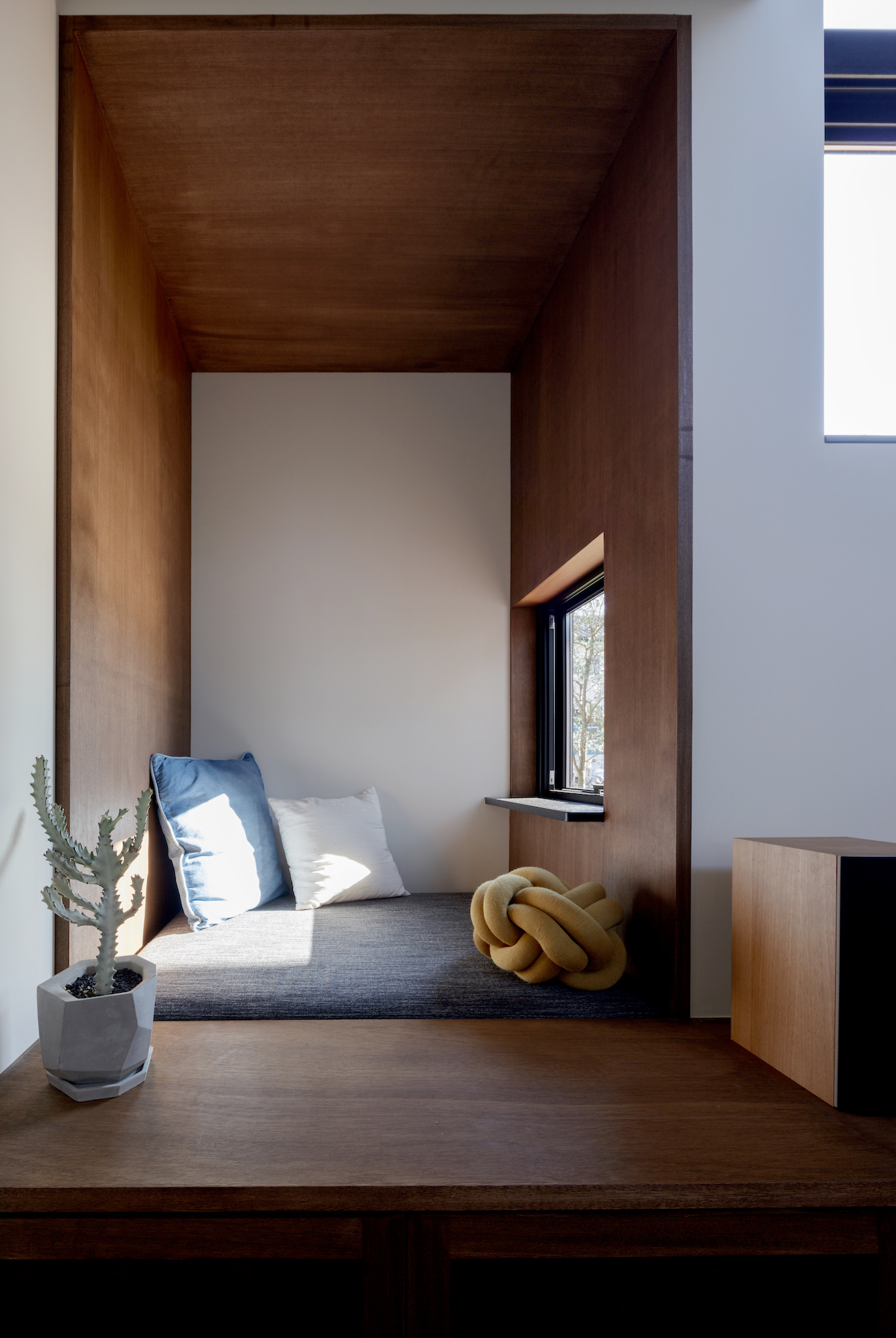 큰 목조 지붕이 특징인 이 집은 도쿄의 이웃 도시인 시키(Shiki)에 자리 잡고 있다. 평지붕으로 덮인 공간과 박공 지붕으로 덮인 공간은 대지에 ㄱ자 형태로 배치되어 있다. 큰 목조 박공 지붕이 덮인 주요 볼륨은 2층 높이로 계획됐으며, 부분적으로 다락 공간이 계획되어 있다. 또한, 거실, 응접실은 전면에 배치됐고, 주방, 욕실, 뒷마당은 뒤쪽에 있으며 아이방과 다다미방은 다락에 있다. 평지붕으로 덮인 공간은 반쯤 땅에 묻혀 있는데, 건축가는 집 안과 테라스를 같은 석재로 마감하여 경계를 없앴다.