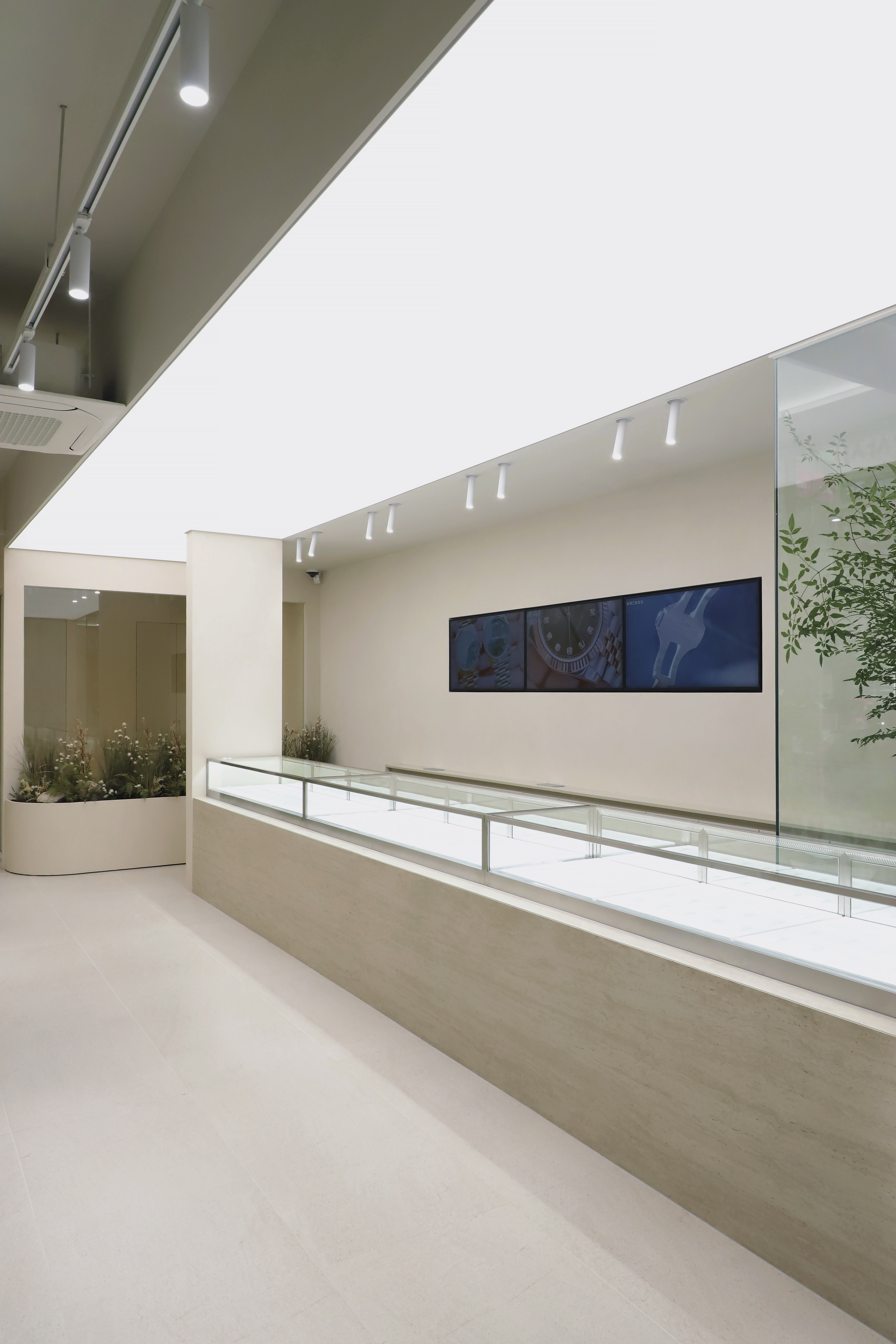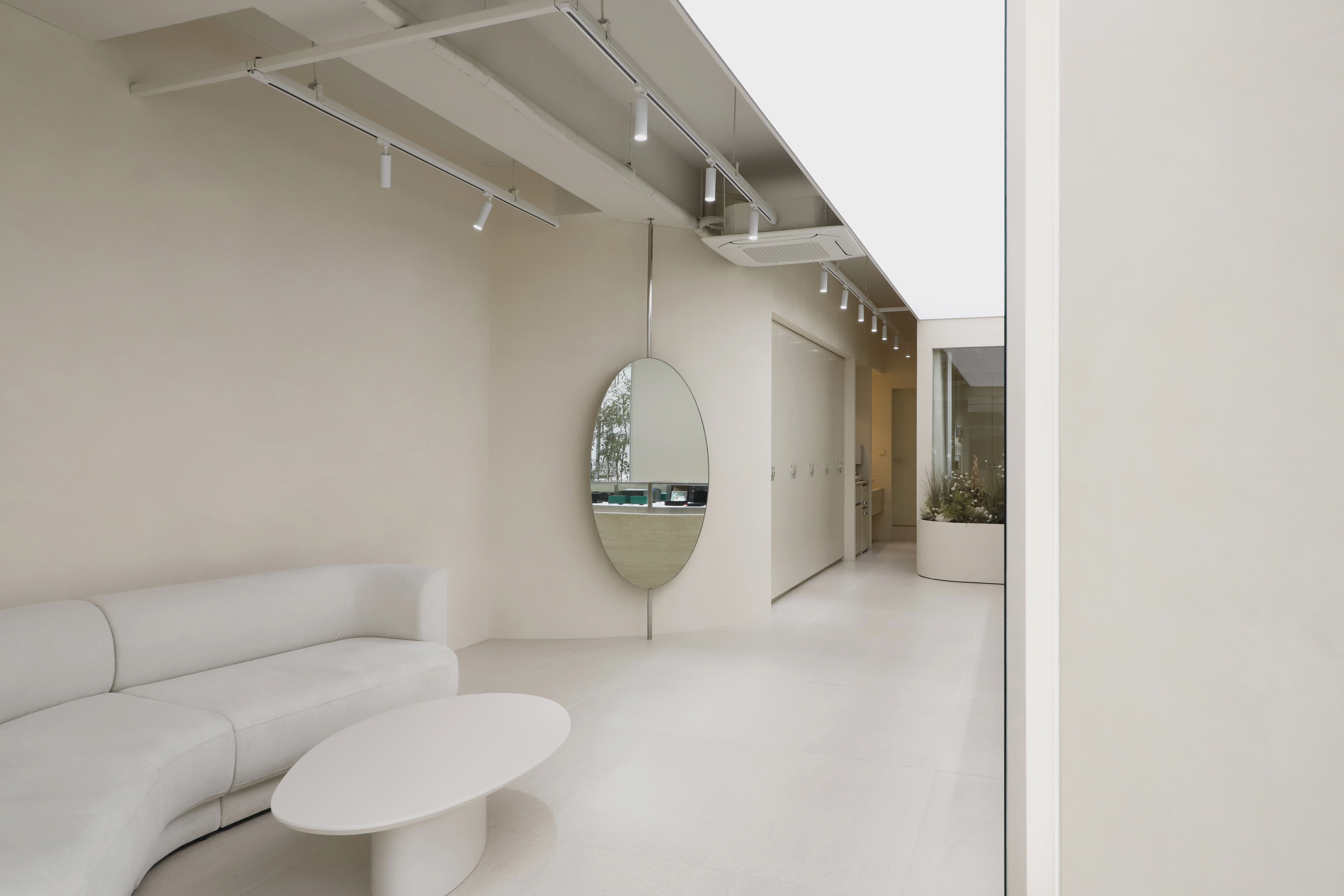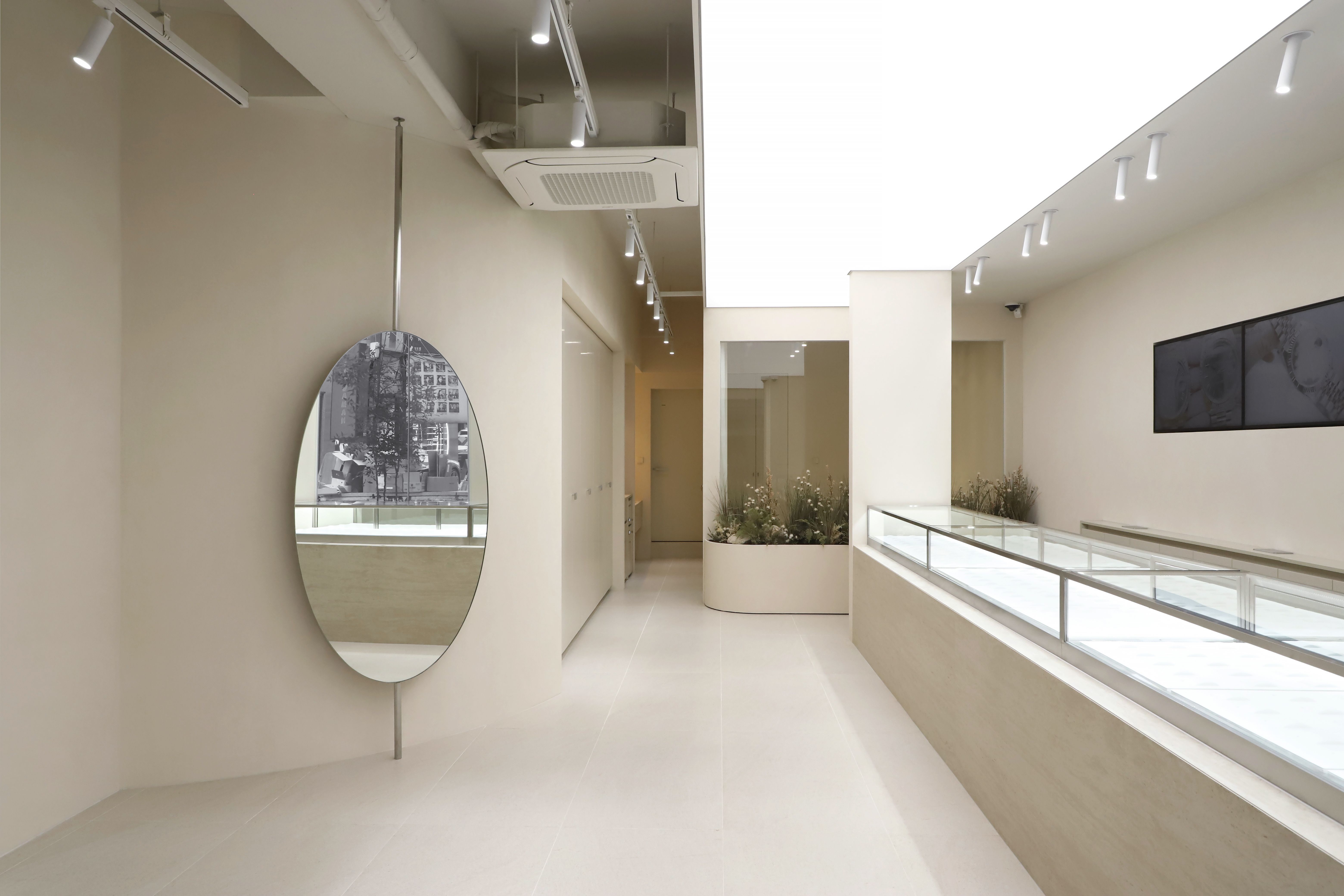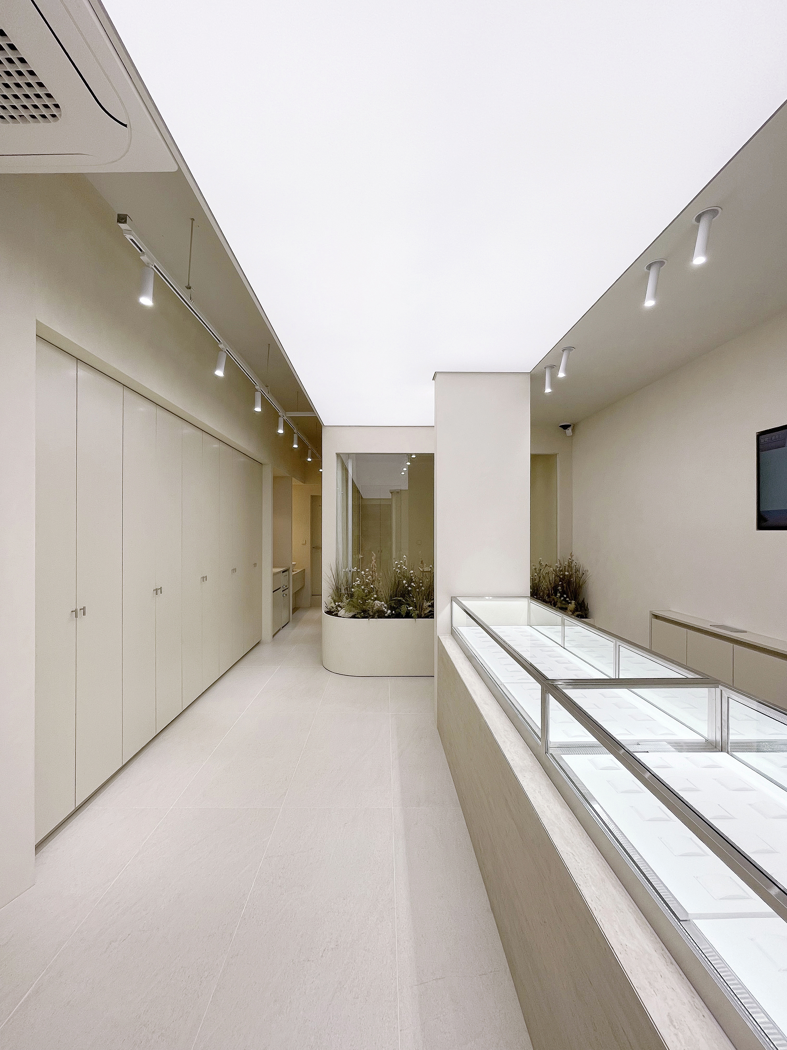 Between the private room and the showroom, we put elements of nature so that people can enjoy the small scenery in both spaces. On one wall, storage and washbasin space are organized in a minimal form to utilize the space functionally. Two selfie spaces, allow customers to experience the space in multiple ways. We hope that the intended spatial experience will be conveyed to the customers.