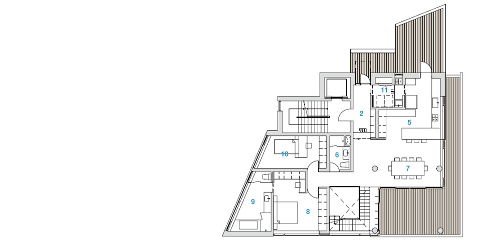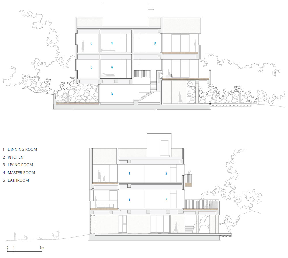 이 건물은 살아갈 개인이 이 장소에서 직접 경험하고 체감하였던 장소적 특징을 현실로 번역하여 적용하는 건축적 전략을 활용했다. 건축주의 기억에 담겨있는 장소성을 6개월간의 대화를 통해 사업 예산에 맞추어 실제적인 건축물로 구축했고, 이는 간결하지만 스토리를 내재한 힘을 가지게 됐다. 단순히 형태적으로, 아니면 어떠한 스타일을 취하기보다는 대화를 통해 자연과 접하는 전략을 함께 탐구하며 찾아낸 이 공간은 그 어떤 대가들의 건축보다도 의미가 깊다.