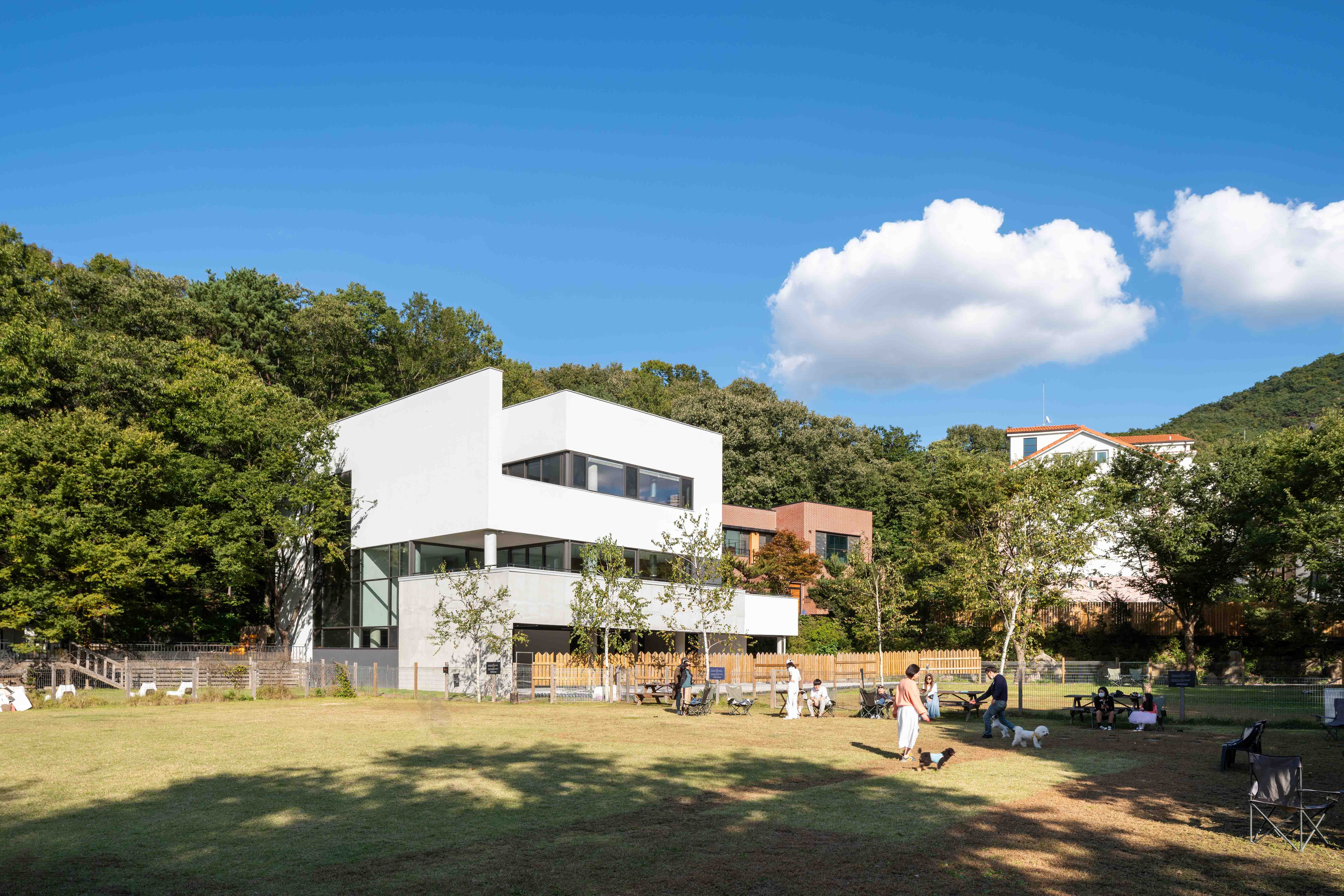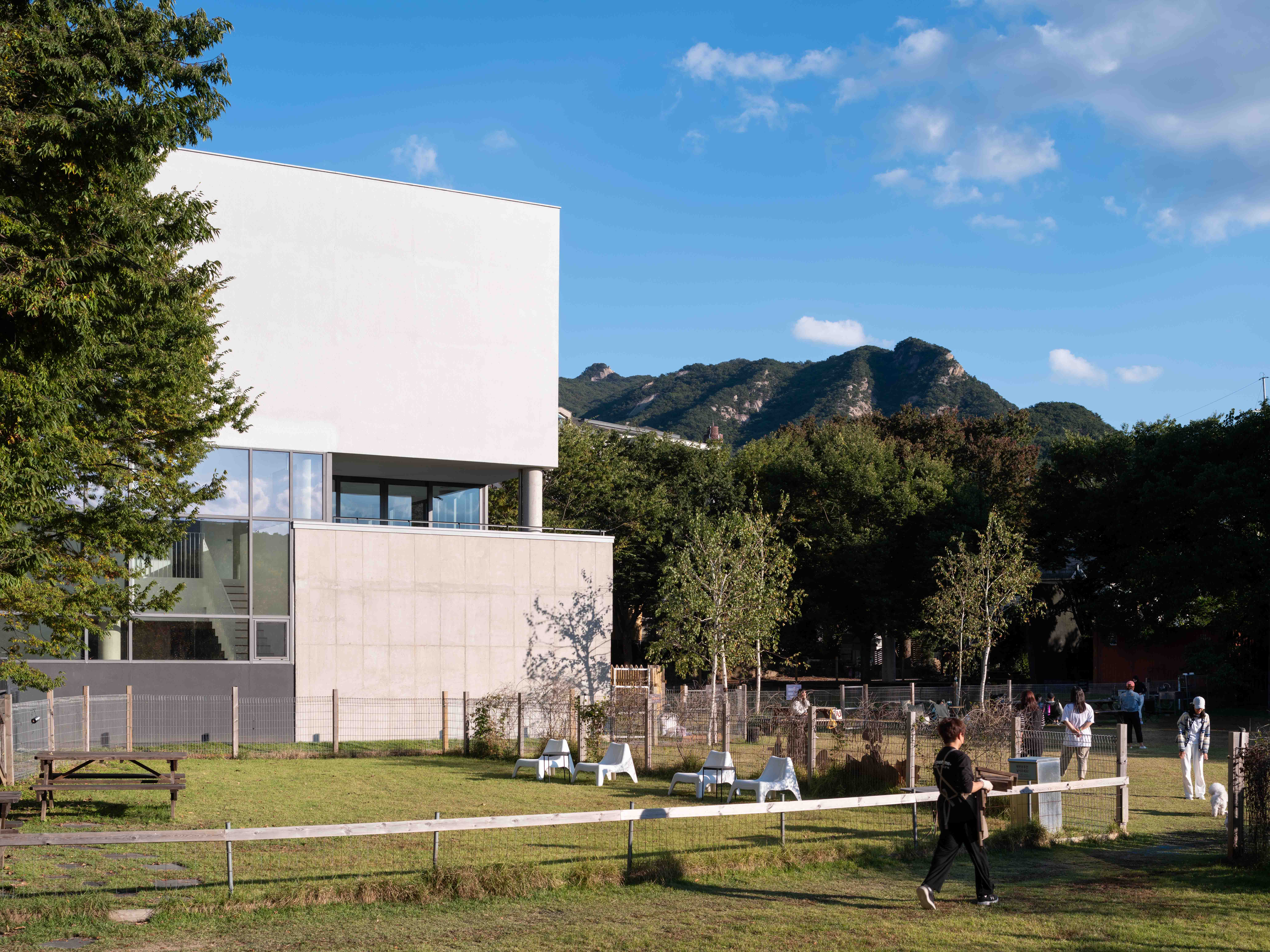 Casa Rosa is a house where an architecture enthusiast and family, embarked on a second phase of life, inspired by Hermann Hesse's ideals. The house is situated in "Hesse's Garden." Over the course of a decade, the owner has cultivated "Hesse's Garden," which has become a popular spot on social media. Set against the majestic backdrop of Bukhansan Mountain, this garden seamlessly combines large protective trees with expansive lawns, drawing numerous visitors. Therefore, Casa Rosa was designed to preserve the family's privacy amidst the crowds of visitors while capturing the beauty of the landscape of Bukhansan Mountain within the home.