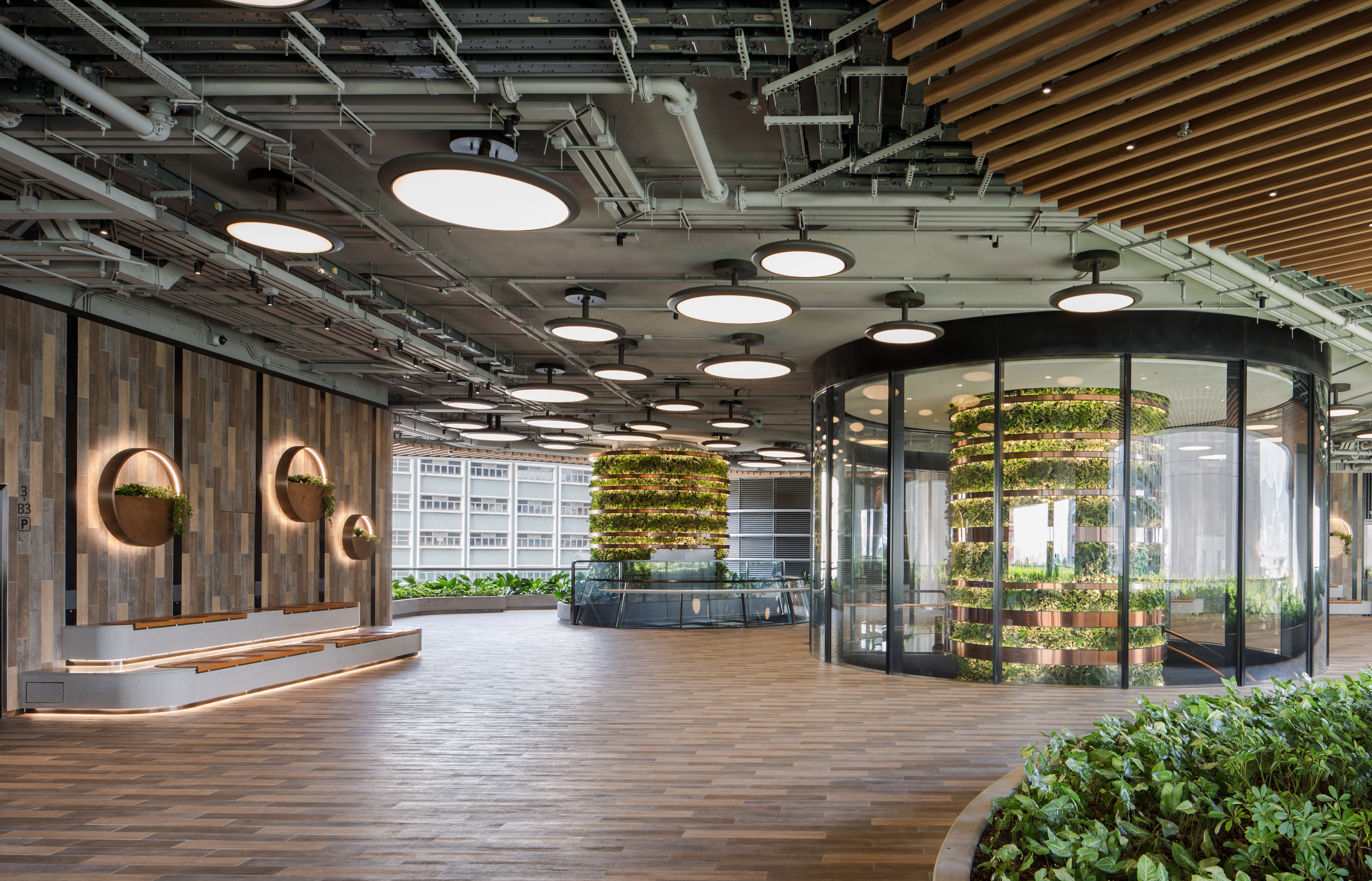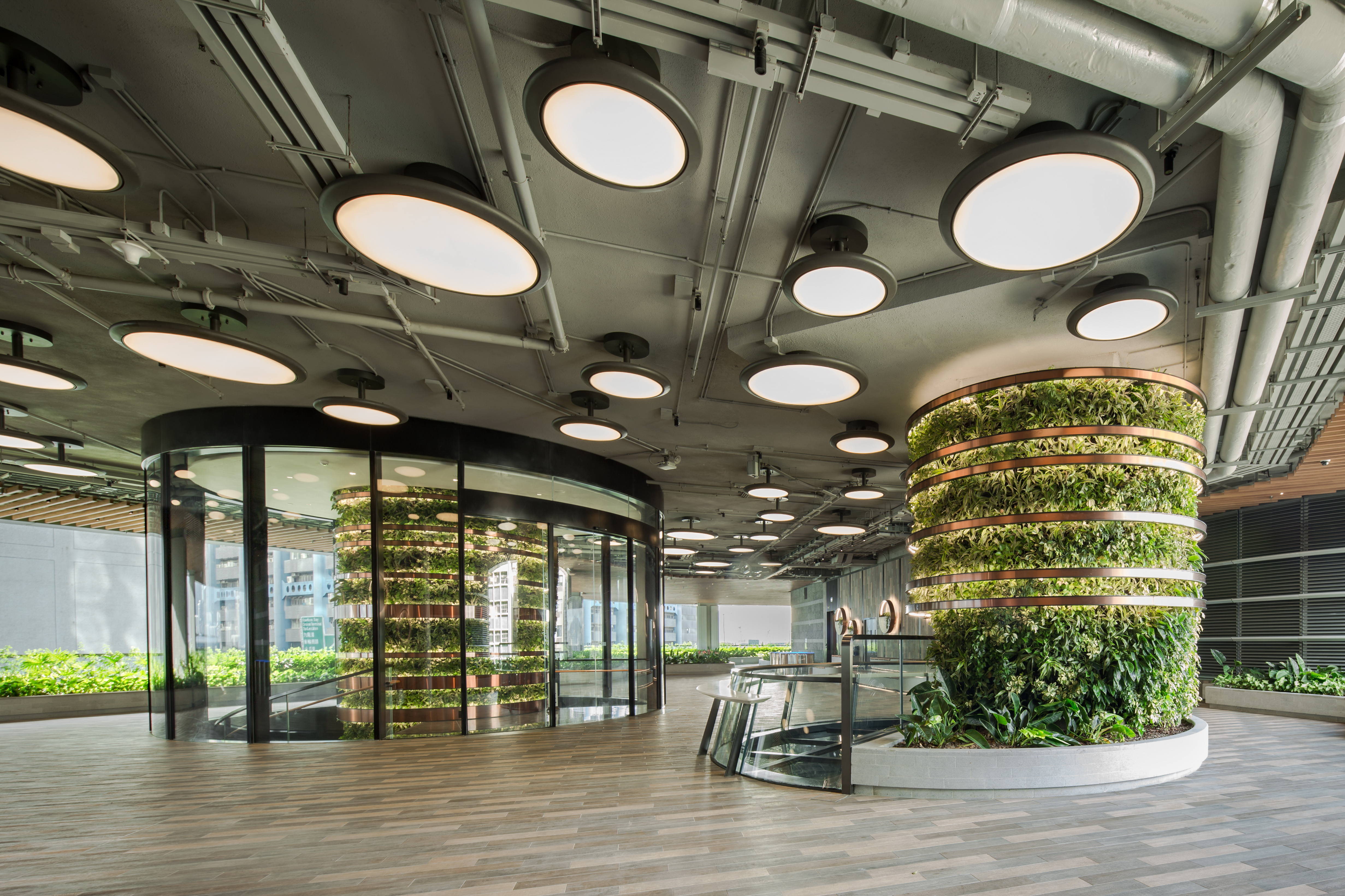 키사이드(The Quayside)는 홍콩의 산업 지구에서 업무, 식사, 레크리에이션, 자연 오아시스에서의 휴식을 결합하여 건강한 업무 환경을 촉진시키는 혁신적인 복합 개발프로젝트다. “자연”이라는 콘셉트는 몇 가지로 표현되는데, 하나는 자기관개시스템을 통한 엄청난 양의 수목을 식재한 것이다. 바닥에 구멍을 뚫고 연결성을 만듦으로써 수직적인 녹색 기둥을 만든다. 두 번째는 주변의 열을 차단하기 위한 브리제 솔레이유가 있는 패시브 태양광 디자인을 활용한 것으로, 완전히 열릴 수 있는 상점은 자연광을 내부로 들인다. 세 번째는 높은 수준의 WELL 기준을 달성하기 위해 재활용 쓰레기통, 건강자판기, 휴식을 위한 포디움, 산책로, 스마트정보시스템을 장착했다. 마지막으로, 일-휴식-놀이가 균형 잡힌 라이프스타일을 증진하기 위해 슬라브 개방구를 구성하여 사무실 리셉션과 포디움 사이의 상호 연결성을 만든다.