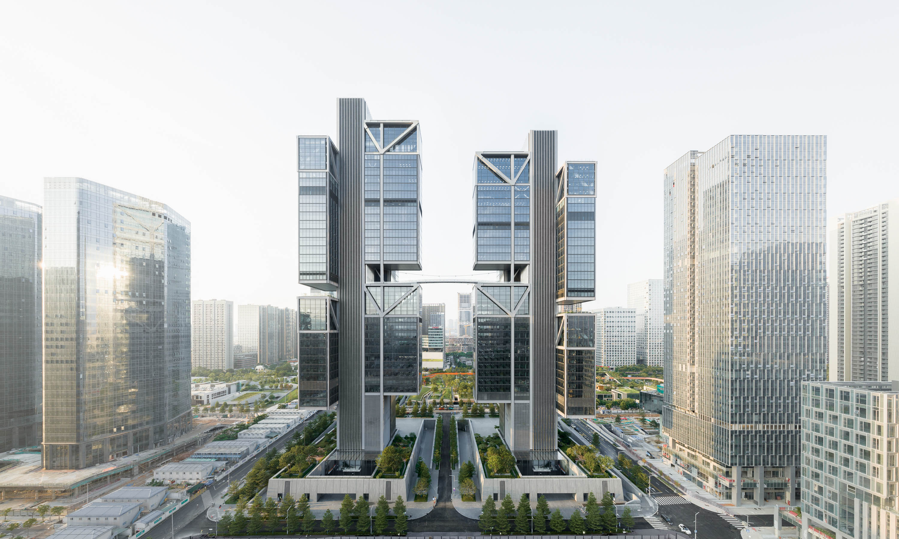 DJI 스카이시티는 중국 선전의 남산 지구에 위치하며, 각각 44층과 40층의 두 개의 타워로 이루어져 있다. 하늘을 향한 고층의 두 건물은 시민용 드론과 창의적 카메라 기술 분야에서 세계적인 기술력을 자랑하는 DJI 회사의 ‘혁신의 중심’이자 창의적인 커뮤니티를 형성한다는 상징성을 나타낸다. 더불어 혁신적인 구조의 고층 빌딩 디자인을 통해 유네스코 도시인 선전 지역의 랜드마크를 형성한다.