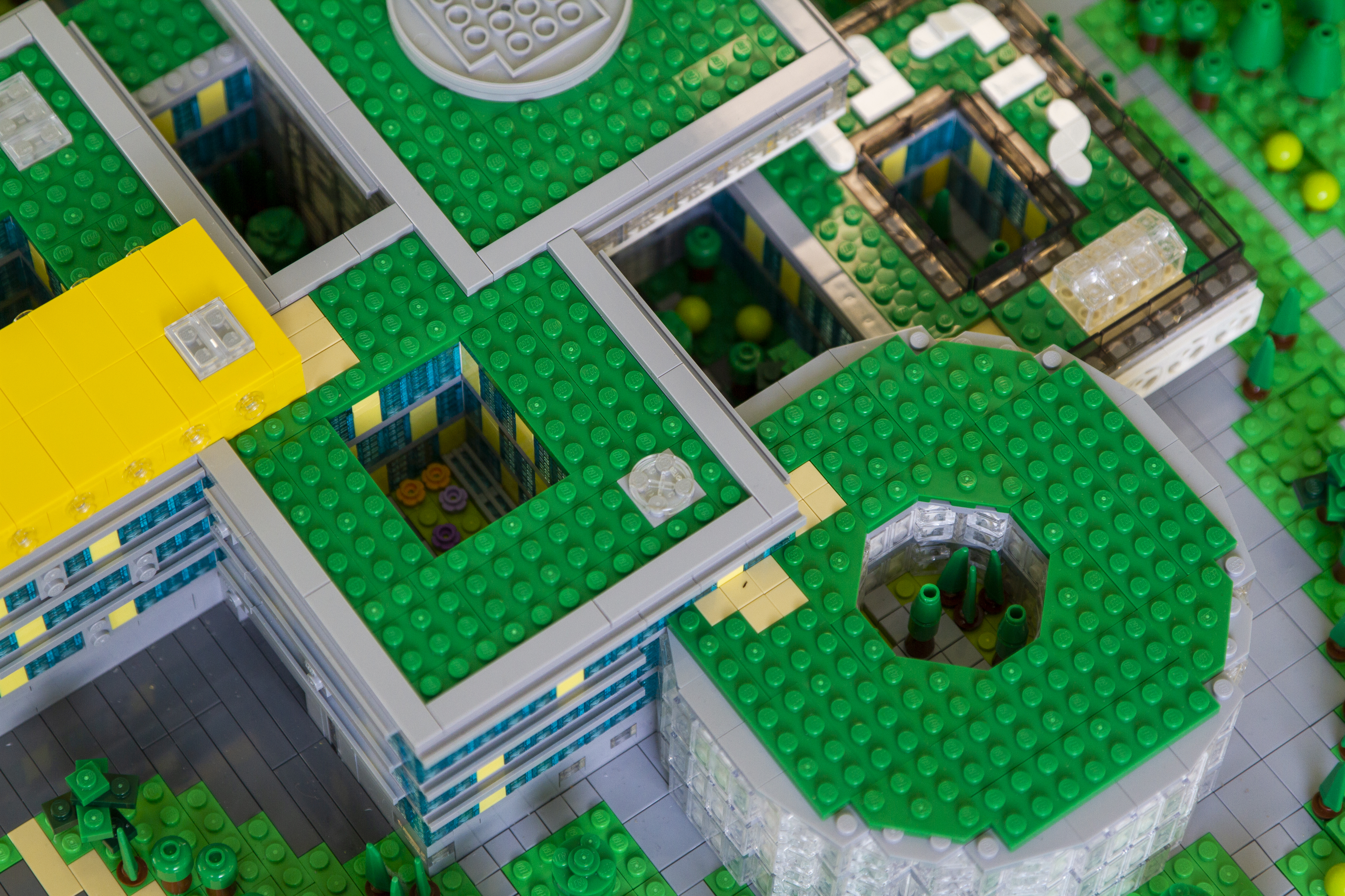 공원은 건물을 통합하여 외부의 공공 공간을 만들고, 야외 회의 공간, 산책로 및 놀이 공간으로 계획하였다. 이러한 요소는 건물의 내부와 외부 사이의 장벽을 허물고 혁신에 대한 창의성을 자극한다. 건물의 내부에서 바라보면 공원과 중정, 작은 정원, 온실, 미니 골프 코스를 포함한 녹지가 녹색의 지붕 형태로 사방을 둘러싸고 있다. 레고 캠퍼스는 녹색 지붕의 설계,