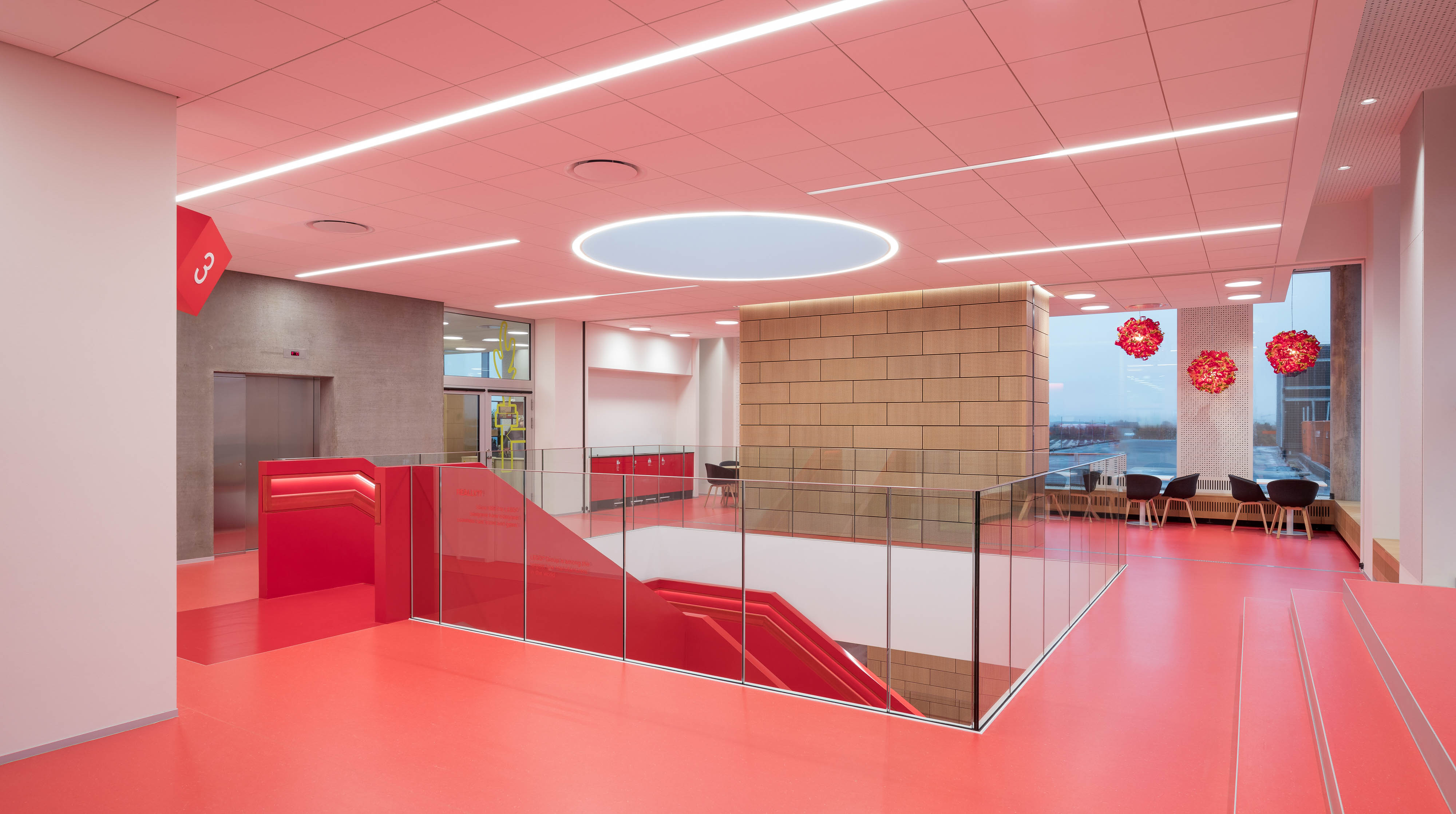 레고(LEGO®) 캠퍼스는 레고 그룹의 기업 가치와 유머러스한 문화를 반영하여 유연함과 지속가능성을 반영하여 업무시설 겸 공원으로 설계되었다. 건축물은 2천 명의 직원을 수용할 수 있는 규모로, 총 8개의 건물을 병합하여 구성되었다. 각각의 건물은 빌운트(Billund) 시의 스케일을 반영하고 있다. 대중에게 개방된 대형 공원과 내부의 아트리움, 밝고 유연한 분위기의 사무실 공간은 레고 그룹의 제품에서 영감을 받아 고유의 극적이고 밝은 색상과 특징을 보인다. 이는 레고 제품이 대표하는 다양한 옵션을 반영하기 위해 획일성을 의도적으로 피하고, 장난스러운 반전과 다양성을 지향한 것이다.
