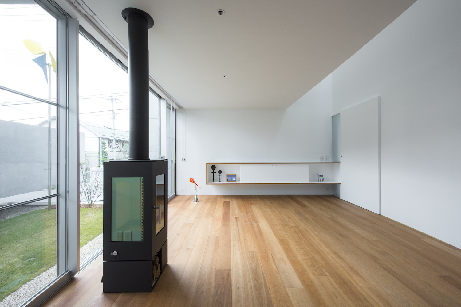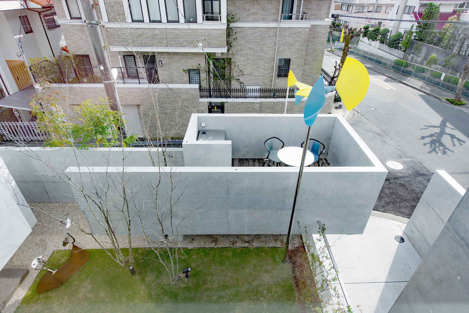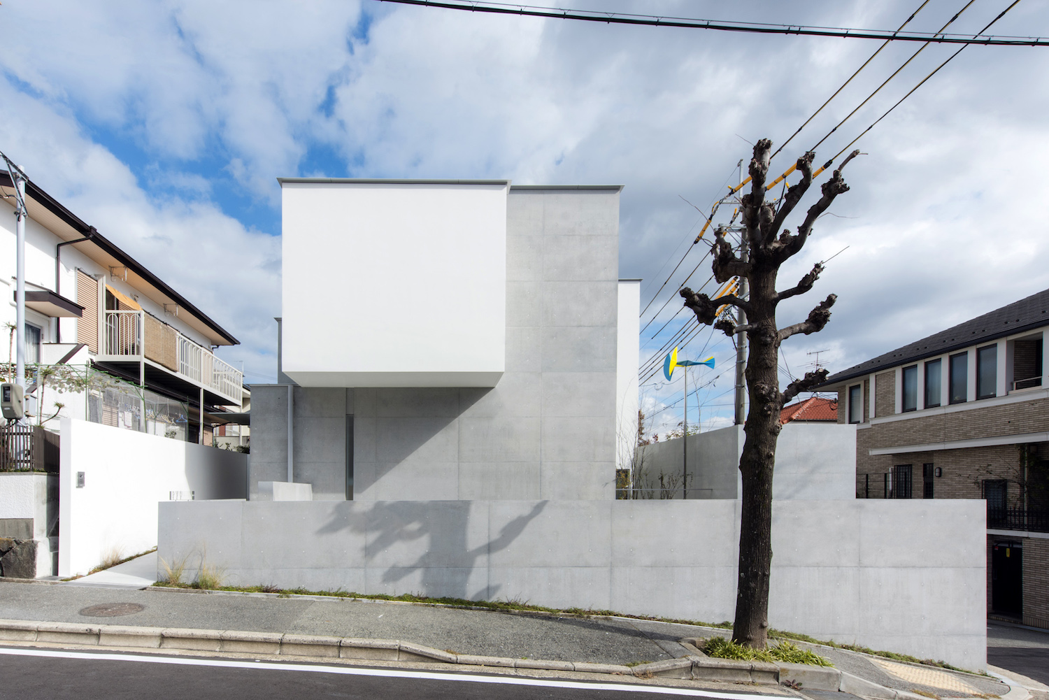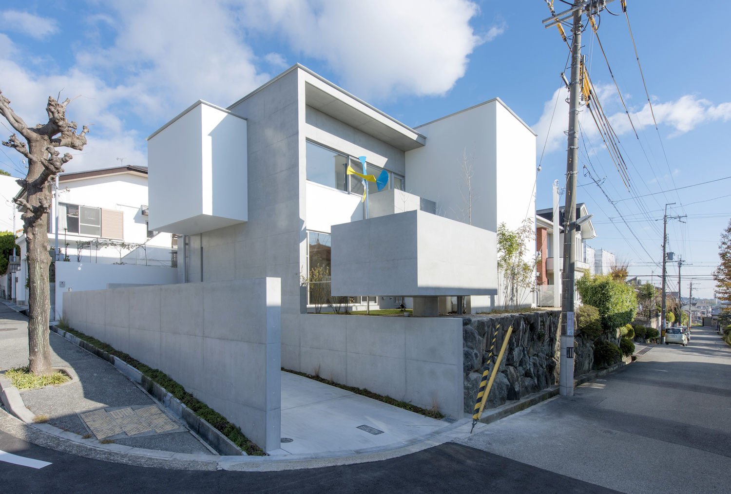 게이인의 이 주택은 경사진 조용한 주거지에 있다. 대지는 모서리 부지이며, 서측과 남측은 도로와 연결되어 있는데, 건축가는 주택의 남서쪽에 배치된 떠있는 데크에 주위의 시선을 차단하기 위한 높은 벽을 설계했다. 거주자들은 쾌적한 날씨에는 이 데크에서 간단한 차나 식사를 하며 시간을 보낼 수 있다. 건축물의 불균형적인 형태와 보이드 등으로 외부의 시선을 차단하면서, 공간적으로 넓게 트인 느낌을 느낄 수 있는 아늑한 주거공간이다. 게이인 주택은 외부와의 적절히 연결된 느낌을 가진 삶을 실현하는 곳이다.