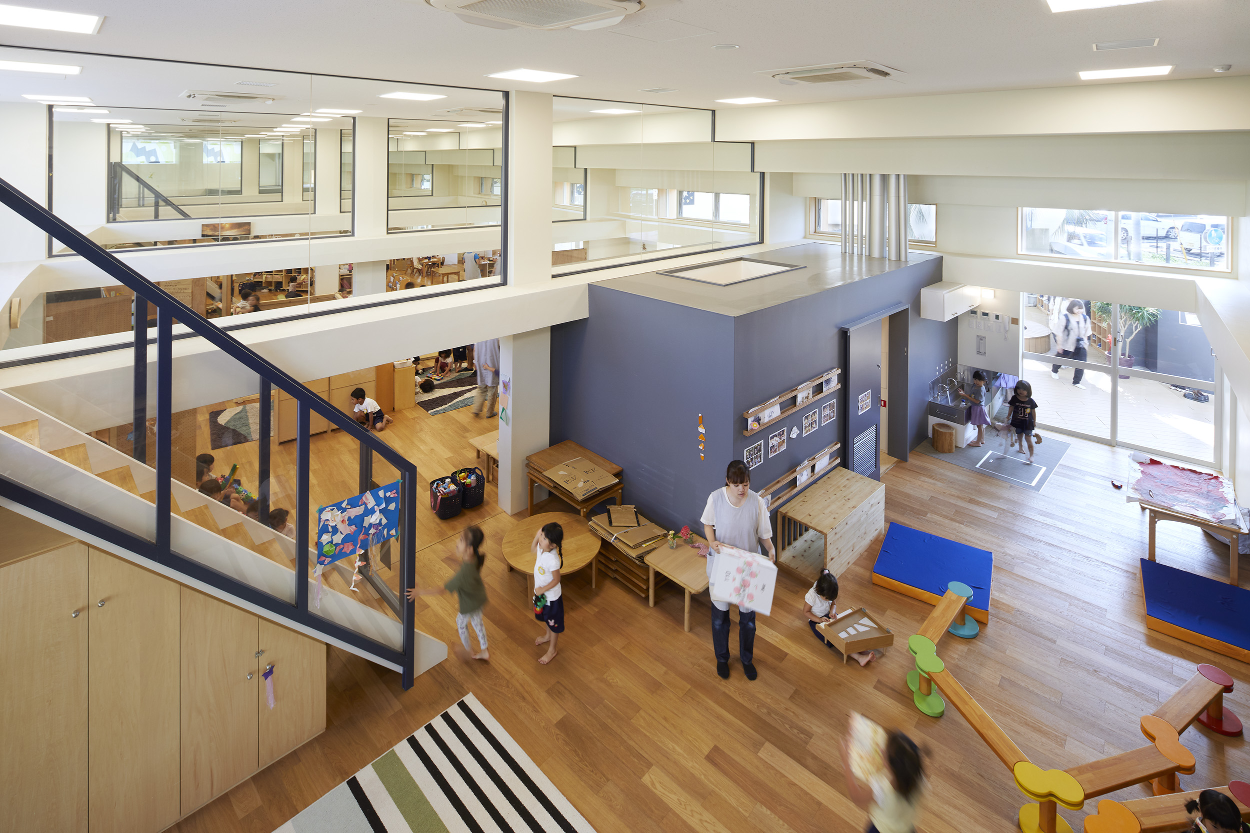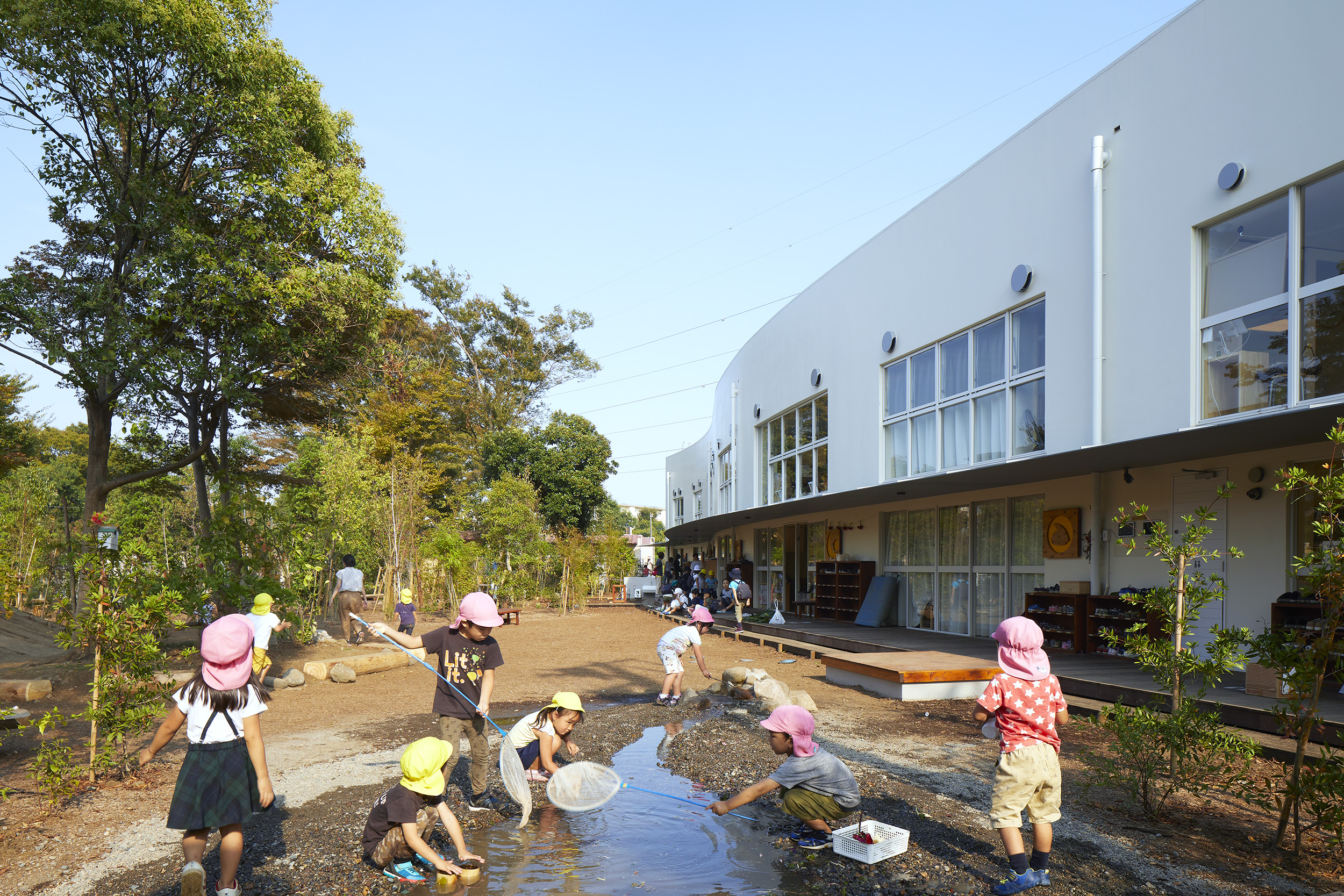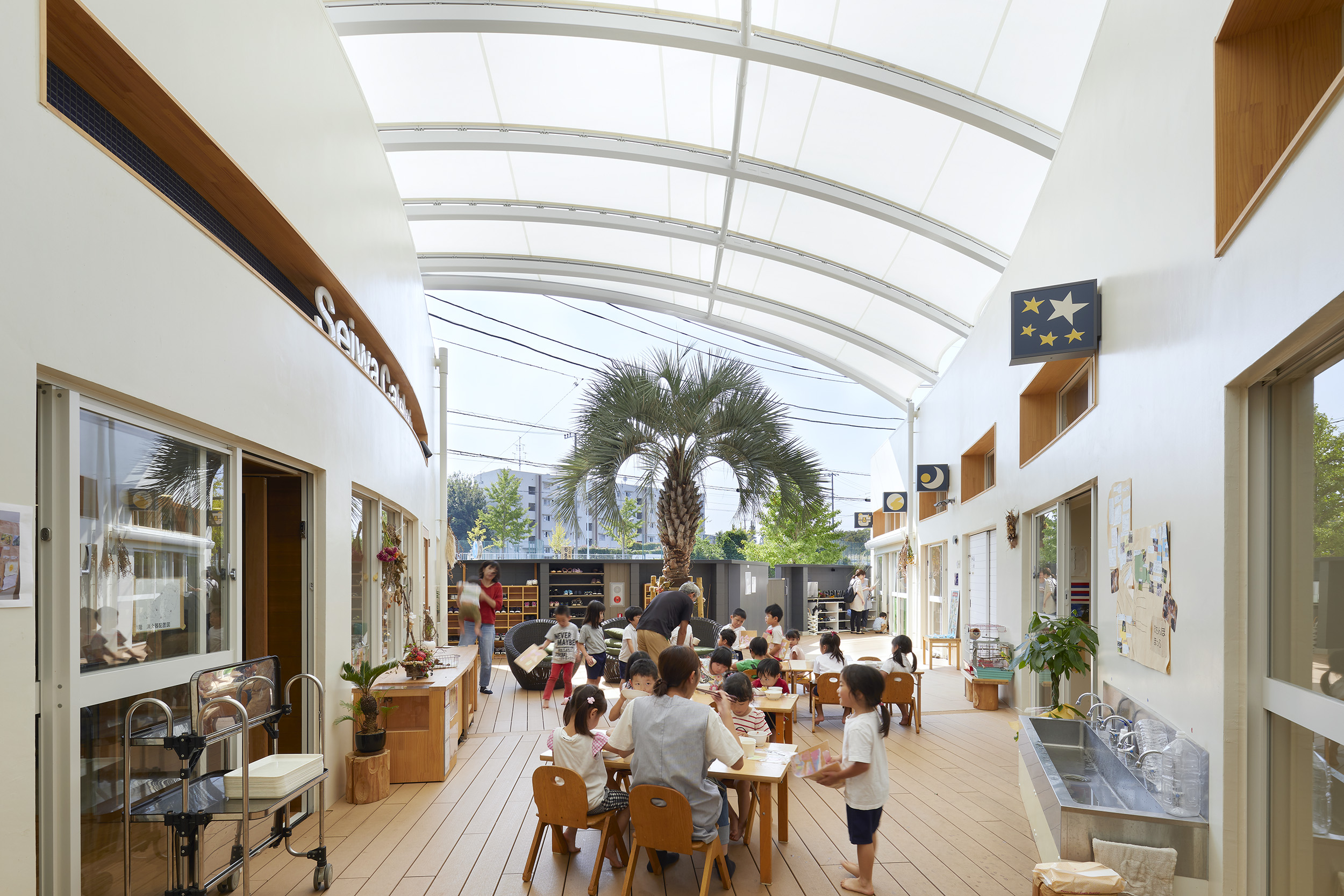 세이와 유치원은 도쿄 외곽에 위치한 거대 주거 단지의 끝쪽에 있던 50년 전 유치원을 재건하여 만들어졌다. 단지에 거주하는 어린아이들의 수가 감소함에 따라 주거 단지를 넘어 단지의 외부와 어떻게 연계시킬것인지가 주요 과제였다. 이 과제를 해결하기 위해 건축가는 간호실을 정원과 바로 연결되게 배치하고 놀이방과 부엌을 통합시키면서 두 건물 간의 막 지붕을 두어 공간을 확장함으로써 편안한 환경을 만들었다.
