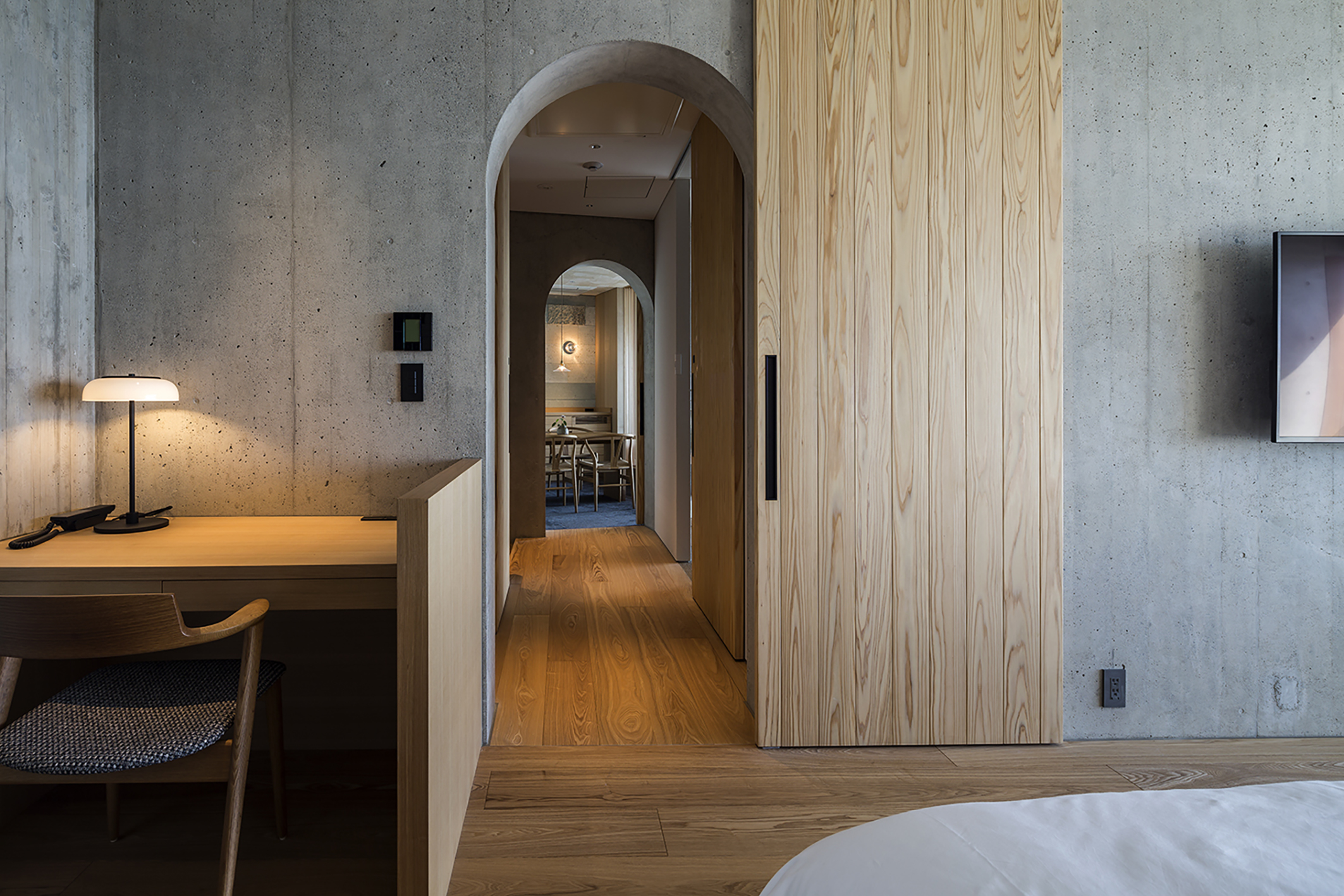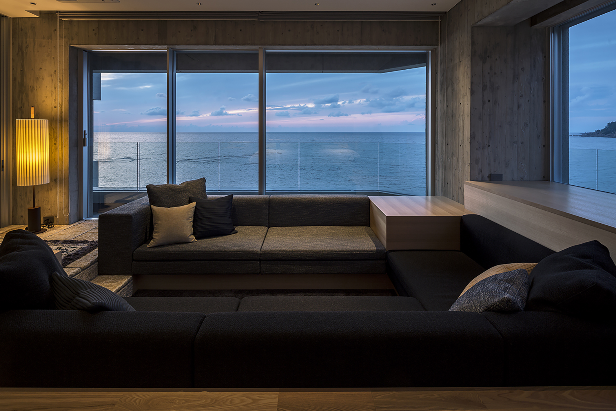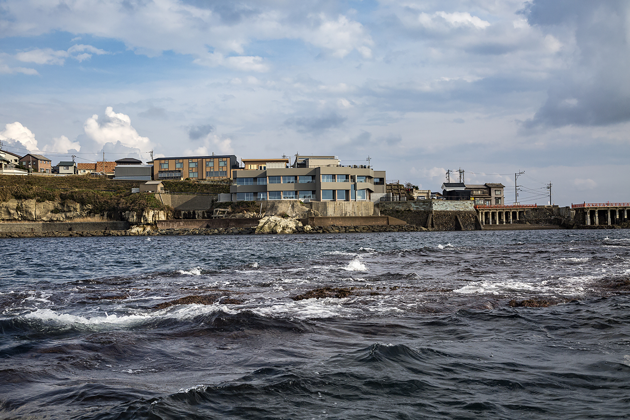 이 프로젝트는 서쪽 일본해 절벽 위에 지어진 작은 호텔이다. 철근 콘크리트 벽식 구조이며, 외벽은 외단열재로 덮여 있어