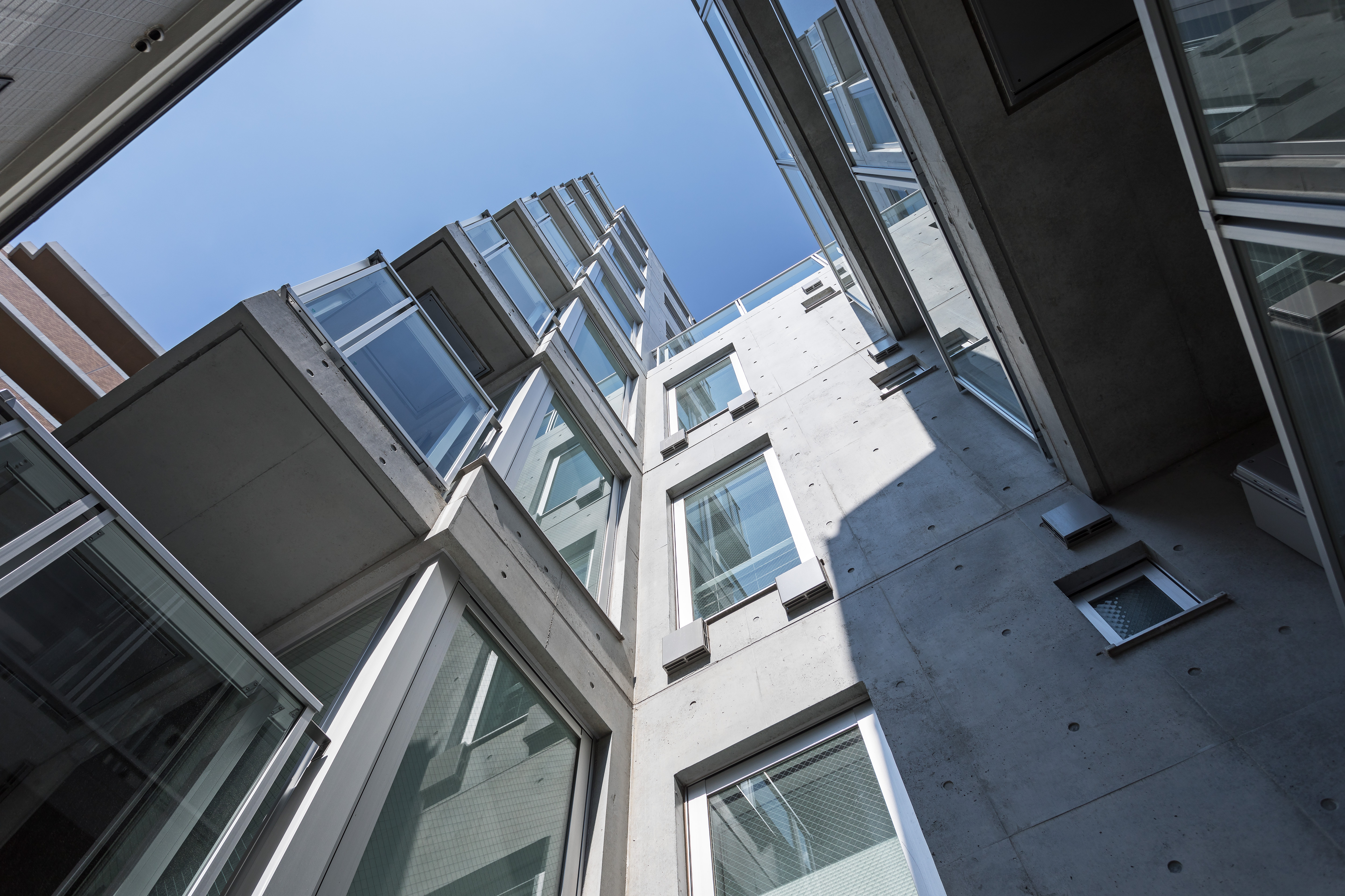 부지는 L 자 모양이며 완만하게 경사진 언덕을 따라 메인 거리에서 뒤로 뻗어 있다. 이 프로젝트는 건축과 미니멀 아트의 관계를 추구한다. 단순한 사각형의 개구부와 알루미늄 등의 마감재를 통해 주변 지역에 어우러지는 설치작품이 된다. 주거 세대는 스튜디오에서 대가족 유형까지 다양하다. 여러 계획을 통해 자연광과 바람이 공간에 들어오는 방식이 여러 공간을 만들고, 기둥이나 빔이 노출되지 않은 프리스트레스 콘크리트 구조로 지어져 주거 세대의 내부는 자유로운 공간 구성을 가능하게 한다. 내부 구성은 단순한 흰색 석고와 노출콘크리트 벽으로 상반되어 있다. 거주자가 거실, 식당 및 침실 위치를 변경할 수 있는 잠재적 옵션은 이러한 단순함을 통해 실현된다. 이 계획에는 큰 옷장이나 소형 PC를 놓을 수 있는 공간이 포함된다.