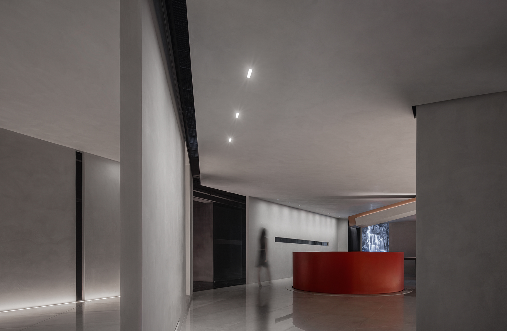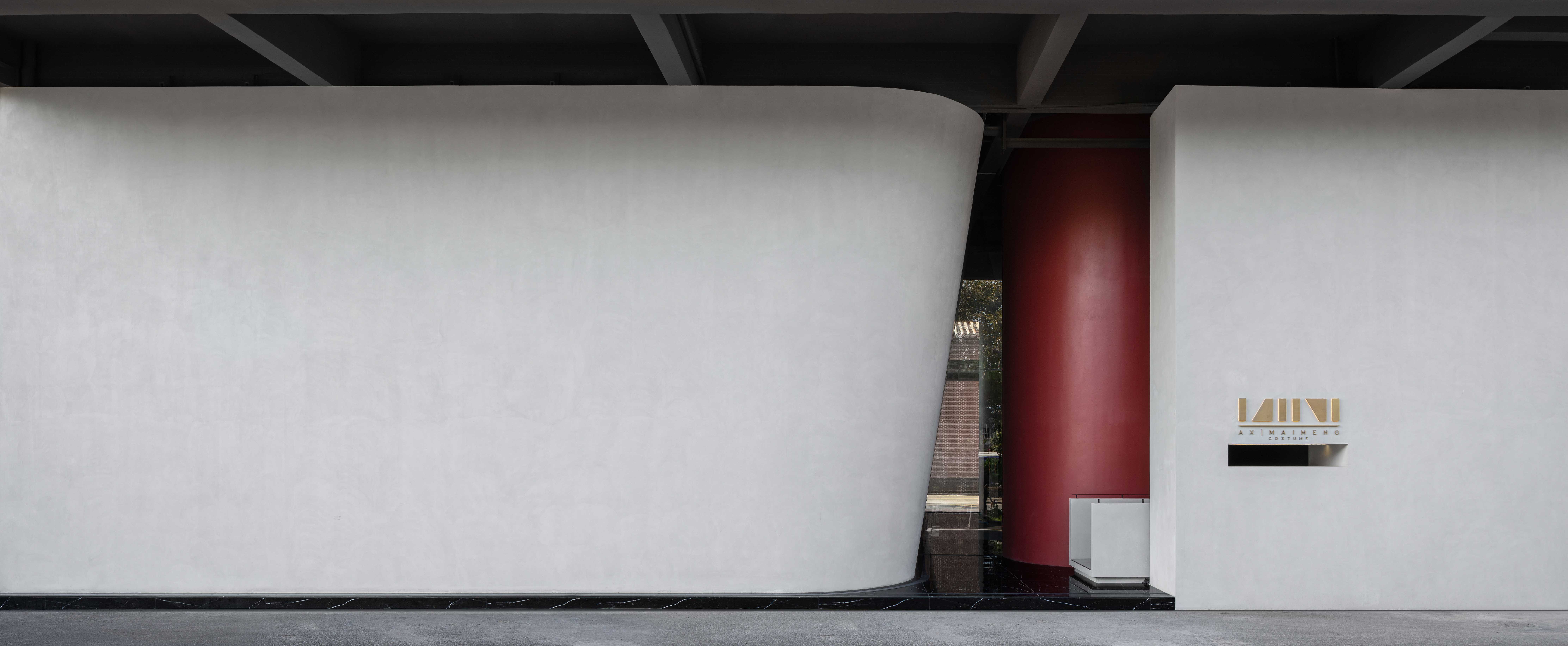 이 프로젝트는 중국 포산(Foshan)에 본사를 둔 의류 브랜드 메이멍(MAIMENG)의 작업 및 전시 공간이다. 도시 간선도로 옆에 위치하여 교통이 편리하다. 이 공간은 식물, 일광, 빗물을 내부로 들이는 동시에 사용자의 소리와 활동을 수용하는 포괄적 공간이다. 입구는 직사각형 블록 옆에 숨겨져 있다. 깔끔한 시멘트 마감의 화이트 톤은 차분한 분위기를 연출하며, 정돈된 옆면을 보여준다. 2층에는 불연속 벽이 비어 있는 사각형의 복도를 둘러싸고 있다. 벽의 분리되면서도 연결된 관계가 고요한 공간적 분위기를 만들어내고, 외부의 분주함으로부터 공간을 분리시킨다.