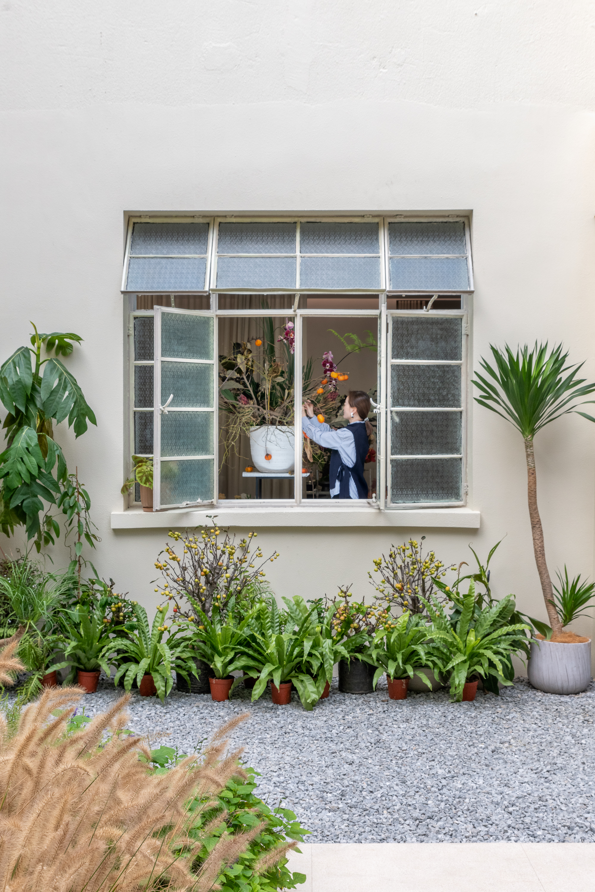새로 생긴 꽃집은 오래된 집의 1층에 위치하며, 뒤쪽의 넓은 정원까지 작물로 짜놓은 듯한 일련의 이르는 일련의 직물로 짠 공간으로 구성되어 있다. 설계는 세 영역인 스트리트 갤러리, 인공 경관 그리고 비밀 정원으로 나뉜다. 거리에서 들어서면 방문객이 갤러리 옆을 지난 후 실제 식물을 경험하게 된다. 정원은 주인이 친구들과 차를 즐길 수 있는 휴식 공간이다. 쉼터에 활용할 수 있는 기존 나무가 있어 나무를 감싸는 L자 모양의 벤치를 사용해 도심 한복판에 조용한 오아시스를 연출했다. 꽃집 내부와 연결되는 일관적인 평면으로 설계됐으며, 나무의 수직성이 균형을 이룬다.