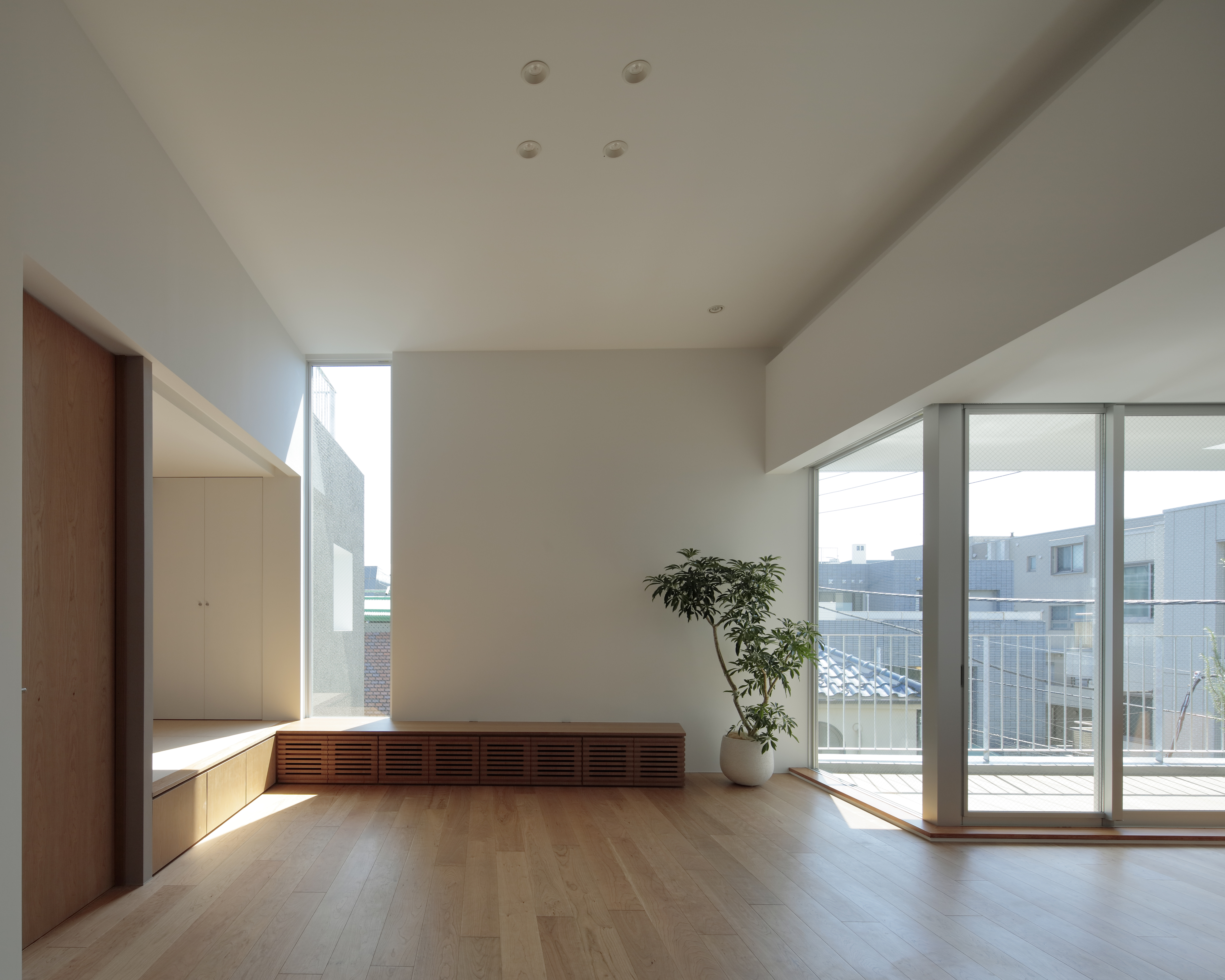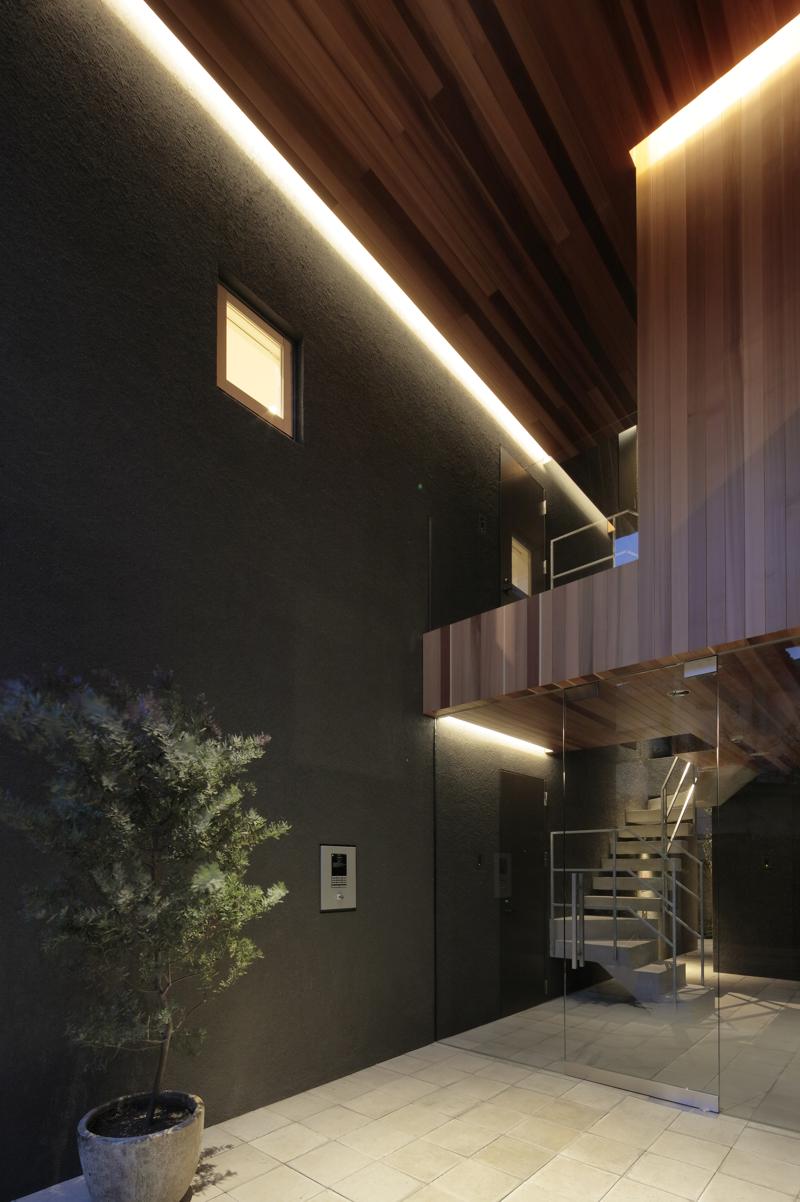 약 300m2의 대지에 계획된 이 아파트는 건축주의 요구사항이었던 남측 정원과 환기를 위한 작은 창을 품고 있다. 건축가는 총 8개의 아파트 유닛들과 상호 연결되는 편안한 공간을 창출하기 위해 작은 정원들을 근접한 건물들과 유닛 사이에 배치했다. 그리고 이음매 없이 연결된 공용공간들은 집과 외부의 중계자 역할을 한다. 아파트 유닛들은 외부세계에 대한 프라이버시를 보장받는 방법으로 나무를 식재하고 작은 창을 설치했으며, 내부의 정원을 공유하면서 커뮤니티의 소통을 가능하게 했다.