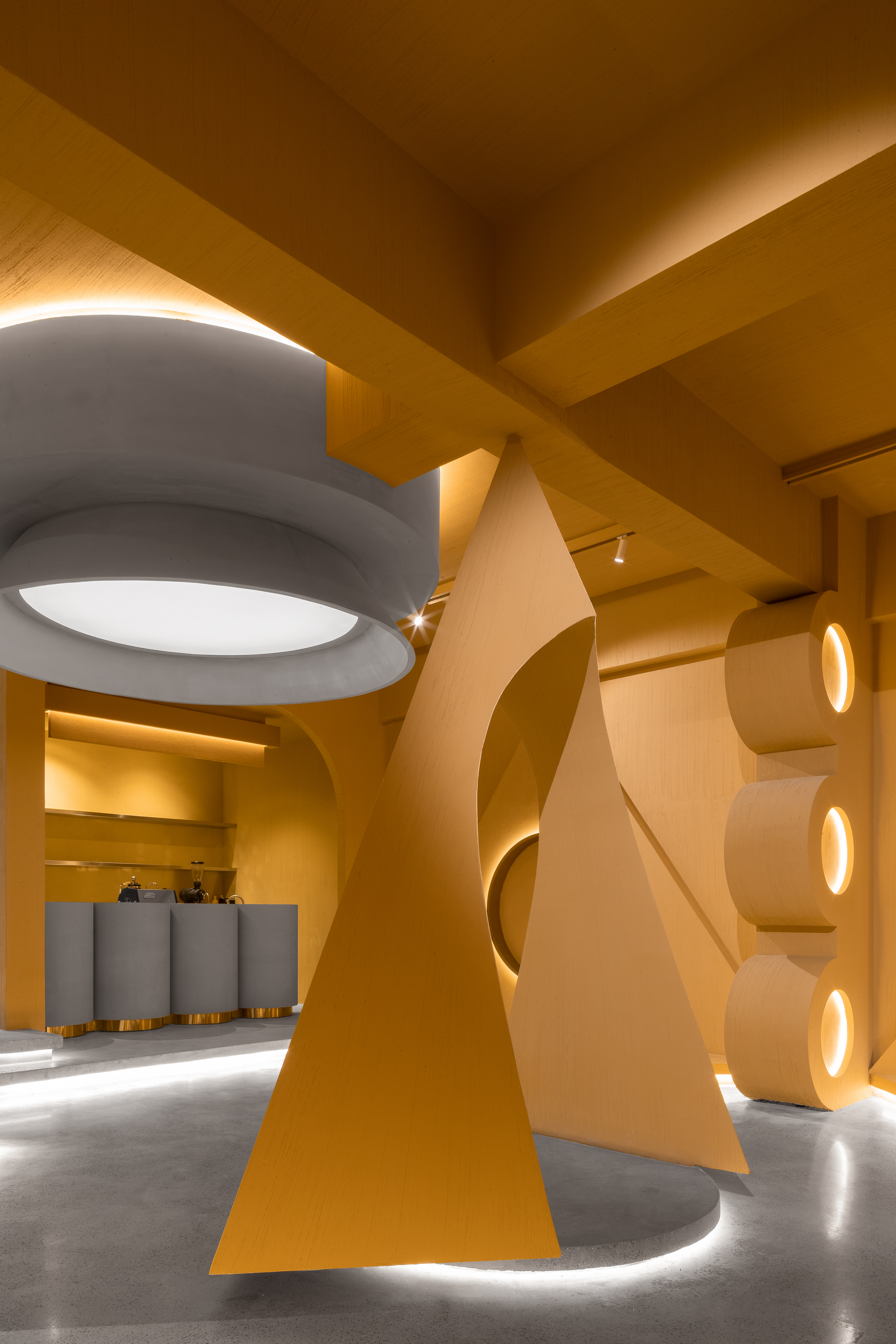 The unique combination of geometric forms in the interior creates spatial rhythms and enriches the visual experience. The exhibition area, based on a visual frame, disrupts and recombines perspectives, making the act of observation more enjoyable.