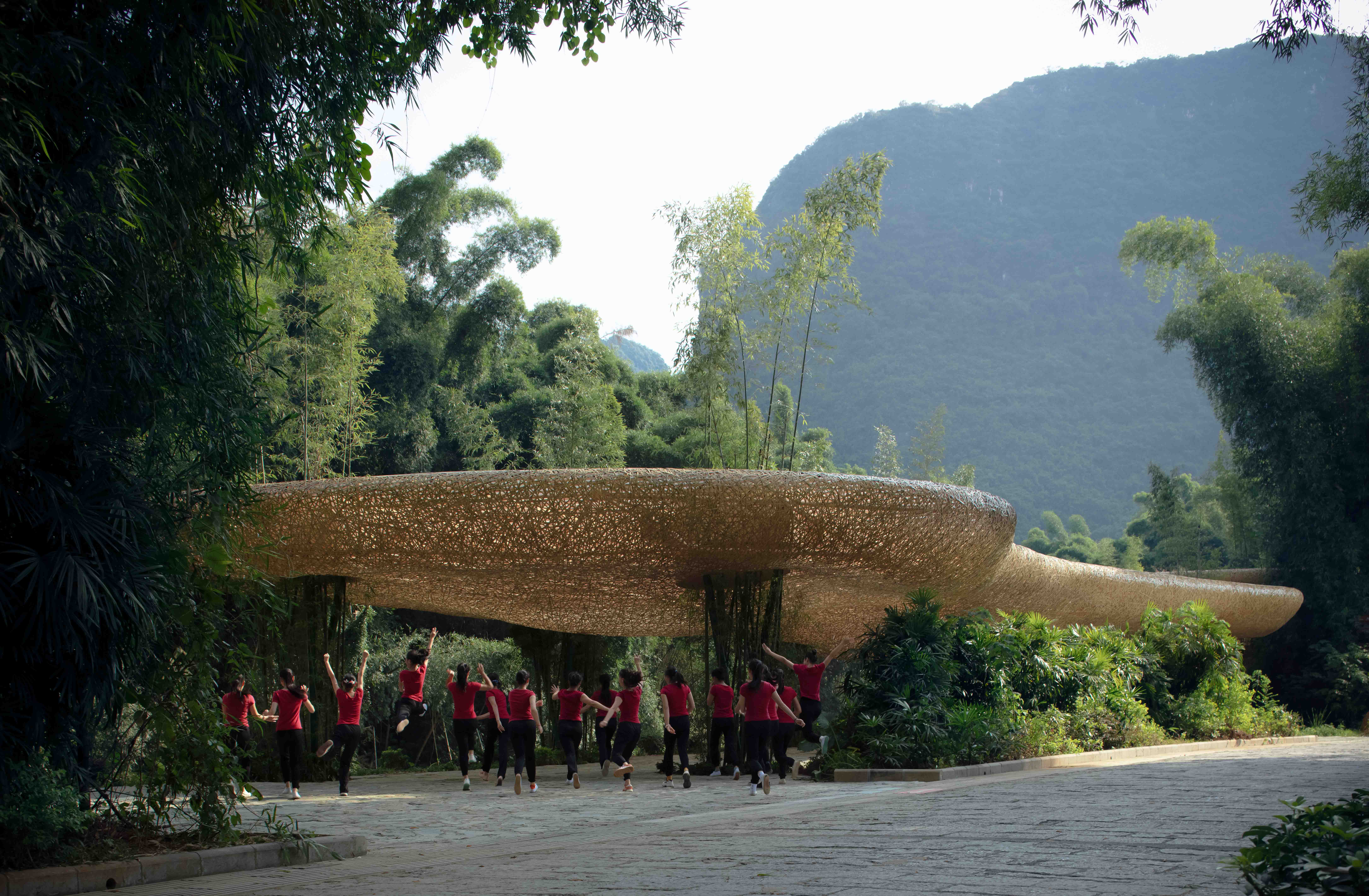 이 프로젝트는 15년째 운영 중인 기존 인상유삼저(Impression Sanjie Liu) 공연의 건물의 대부분을 그대로 유지하며 진행했다. 현재는 거대한 대나무 군집이 대부분의 부지를 덮고 있고 파이프와 잎이 서로 어우러진 구조를 만들어내고 있다. 새로운 공간은 기존에 있던 것들과 통일시키며 동시에 새로운 공간을 만들어내려 했고, 그 과정에서 대나무의 특성을 이용했다. 자연스럽게 주변을 대나무 숲과 언덕으로 채워 나가는 것을 목표로 하고 있다. 종잡을 수 없는 튜브형 기둥으로 지지되는 캐노피의 구조는 그 자리에서는 보이지 않으며, 서로 다른 높이의 표면 사이에서 물결치며 뒤바뀐 풍경의 형태를 안고 있는 직조된 형태의 천장을 가지고 있다. 이로써 자연에 대한 인지를 넓히고 이것에 매료되도록 의도했다.