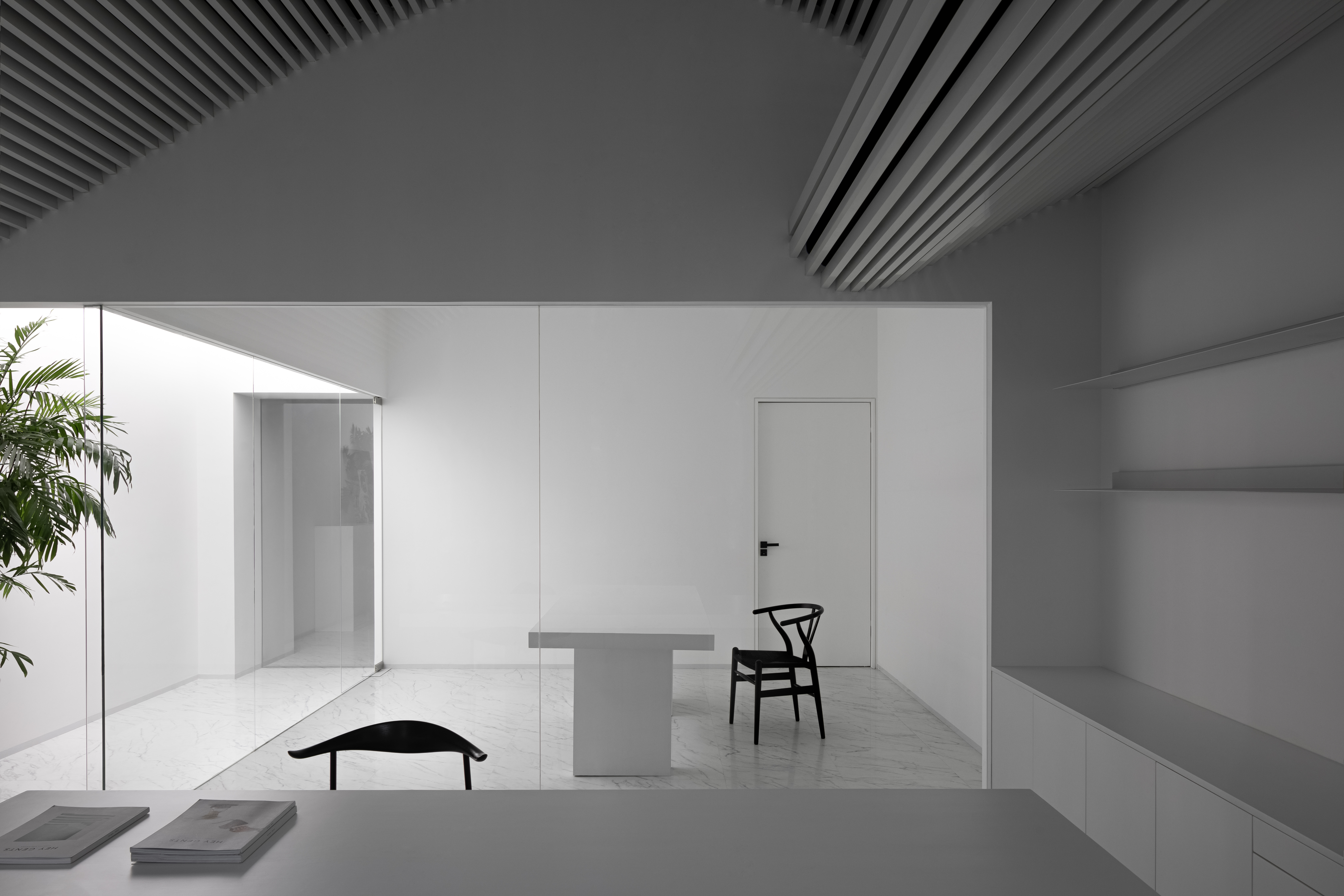 이 프로젝트는 중국 포샨의 유명한 섬유 도시인 장챠에 있다. 공간은 대지의 1층을 차지하고 있다. 전체 건물의 파사드는 브랜드를 위해서 사용 가능하나, 발주자는 파사드의 리노베이션을 통해 2층으로의 통풍을 보장하고, 현존하는 타일 마감을 존중하도록 요청했다. 건물은 순수한 백색의 톤, 자연적인 질감과 분위기를 특징으로 한다. 내부 디자인은 흰 색조의 순수함에 기안하여, 외부에서 내부까지 연장되어 브랜드 정체성을 미묘한 방법으로 전달하는 건축적 언어를 통해 옷감 생산의 과정을 해석한다. 옷감의 유연성은 내부 공간에서 산맥과 같이 올라갔다 내려갔다 하는 율동성으로 해석되었다. 천창은 공간을 자연으로 재연결하며, 편안하고 안락한 업무 환경을 만들 수 있게 해준다.
