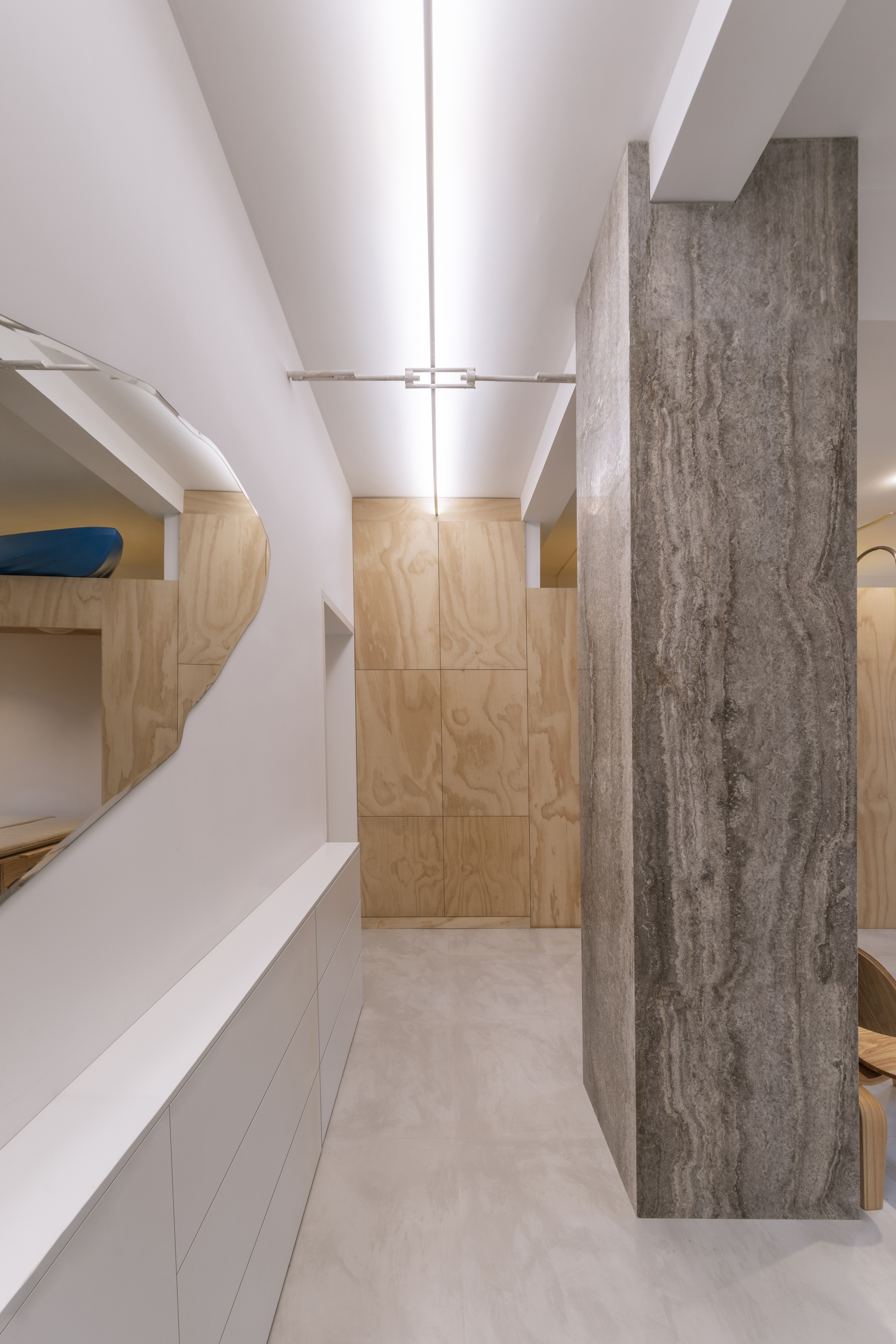이 건물은 본래 리서치 기관을 위한 가족 기숙사로 설계됐으며, 건물의 건축적 양식은 가구 당 50m2의 내부 공간을 지닌 전형적인 벽돌 콘크리트 구조였다. 1950년대에 건설된 3층 규모의 전후에 건설된 건물은 역사를 증명하지만, 방치되어 있었다. 프로젝트의 핵심은 오래된 집단 주거시설을 현대 도시 생활에 맞게 조정하는 방법을 찾고, 손상된 녹지 영역을 복구 시키면서 그 기존의 구조를 보존하는 것이었다. 건축가는 불필요한 모든 요소들을 제거했으며, 중앙의 오래된 벽을 철거했고, 오래된 그리드 패턴을 부쉈다. 그리고 비교적 개방된 공간에서 다양한 기능들을 이행할 수 있는 아파트로 변화시켰다.