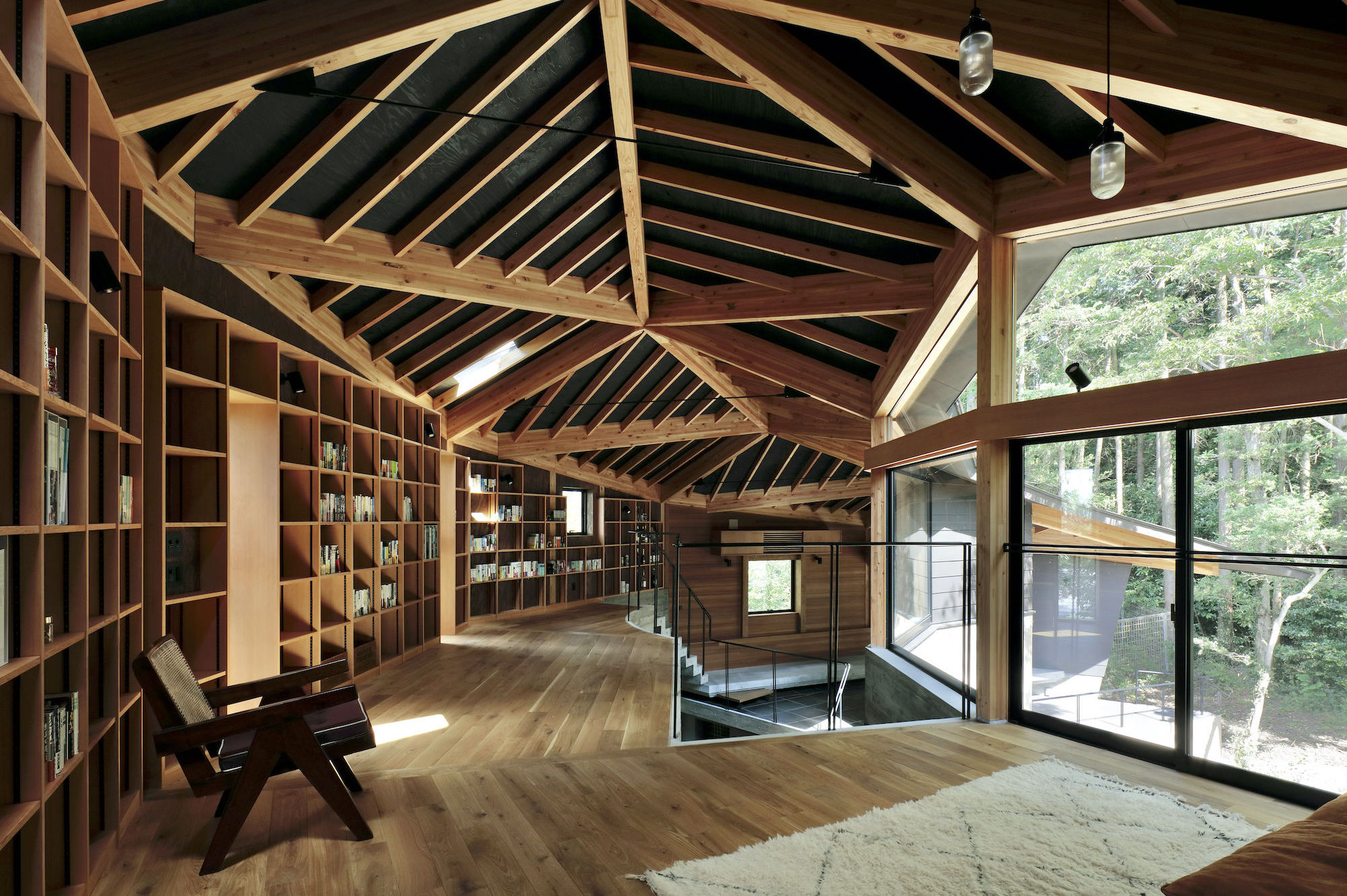 이 프로젝트의 부지는 경사지이며, 초기에는 울창한 숲으로 덮여 있었다. 여러 번 현장을 찾아가는 과정에서 건축가는 커다란 노각나무에 이끌렸고 건축물과 공존할 수 있도록 그대로 유지할 방법을 찾기 시작했다. 나무를 중심점과 구심력으로 여기되, 각도가 균일한 대칭적인 디자인은 피하도록 했다. 또한, 집은 보통 소수의 사람들이 거주하기 때문에 다양한 각도를 연속적으로 생성하면 각 공간에서 편안한 스케일감을 얻을 수 있을 거라 생각했다.