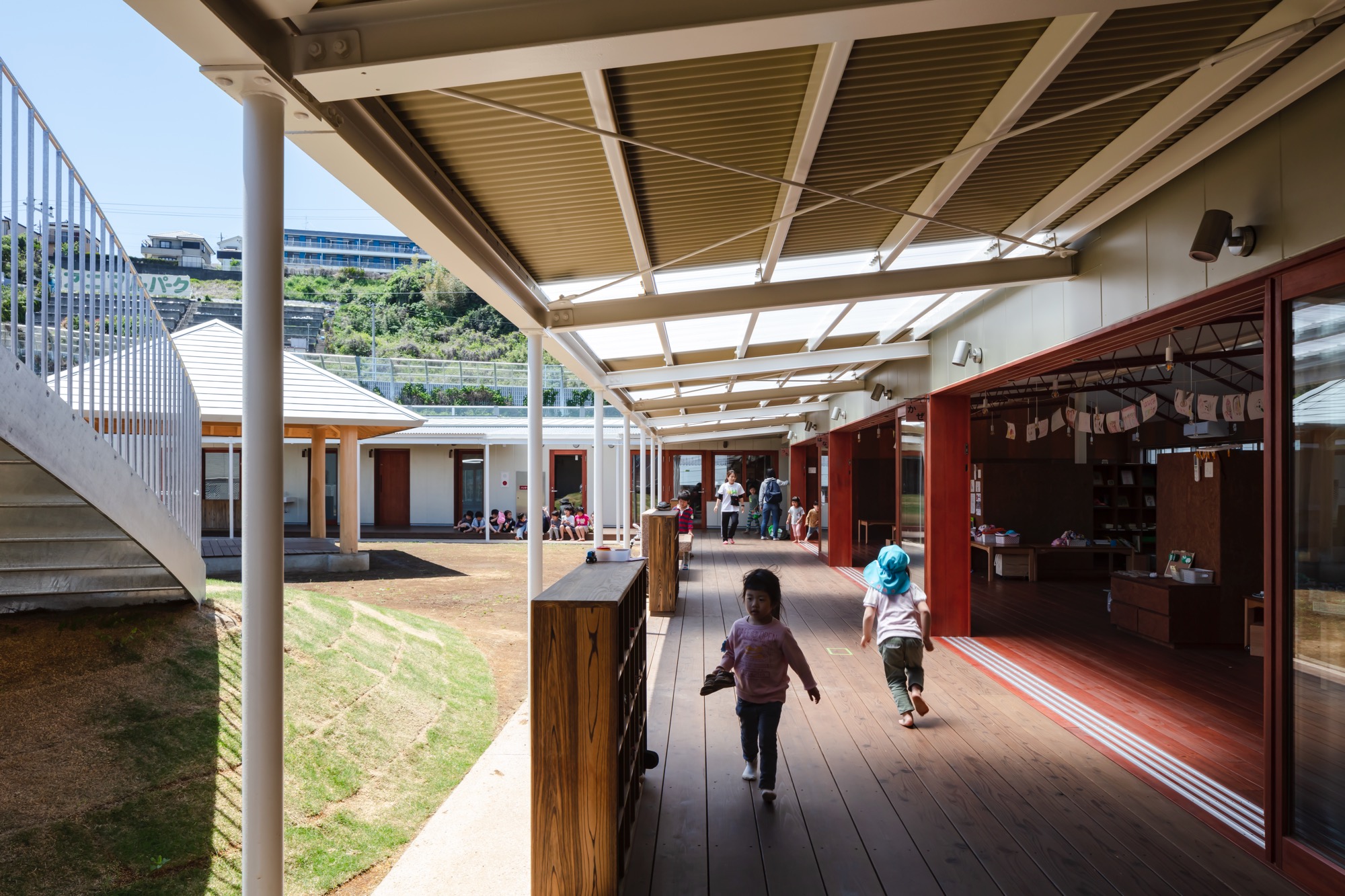 카미야토 울퉁불퉁 보육원은 보육 시설과 장애아동을 위한 탁아시설의 조합으로 계획되었다. 부지에는 가람 배치가 넓게 사용되었으며, 부지와 매스를 따라 정사각형 모양의 갤러리가 내부와 외부에 배치되어 두 정원 사이에 다양한 거리를 생성한다. 각 보육실에는 높은 창, 반 야외 공간 및 정원이 있는 박공구조의 볼륨이 있다. 이러한 교차는 공간의 규모와 빛, 바람, 비와 같은 자연 현상과의 조화 및 다른 연령과의 거리의 지속적인 변화를 통해 서로 다른 환경을 생성한다.