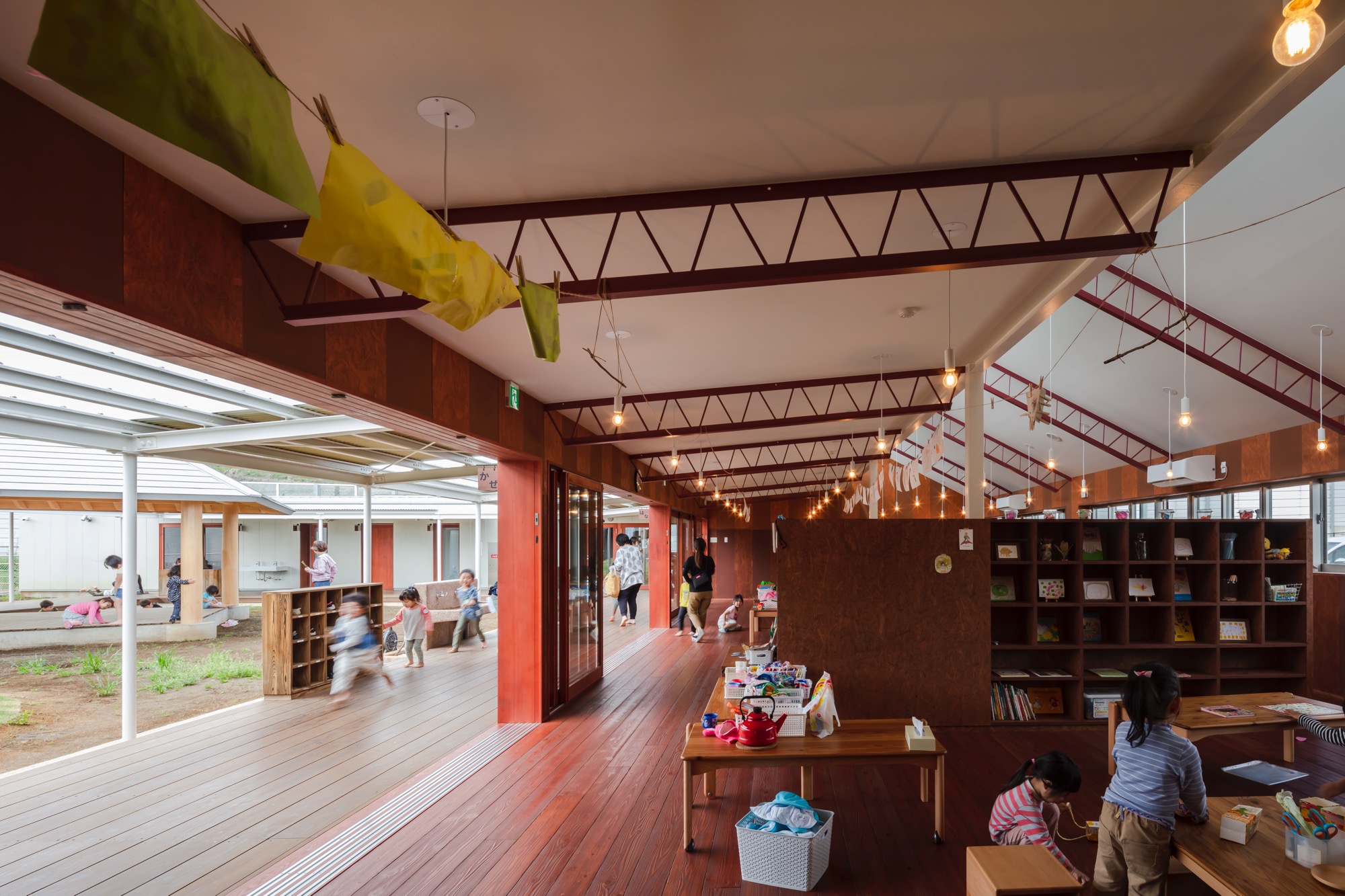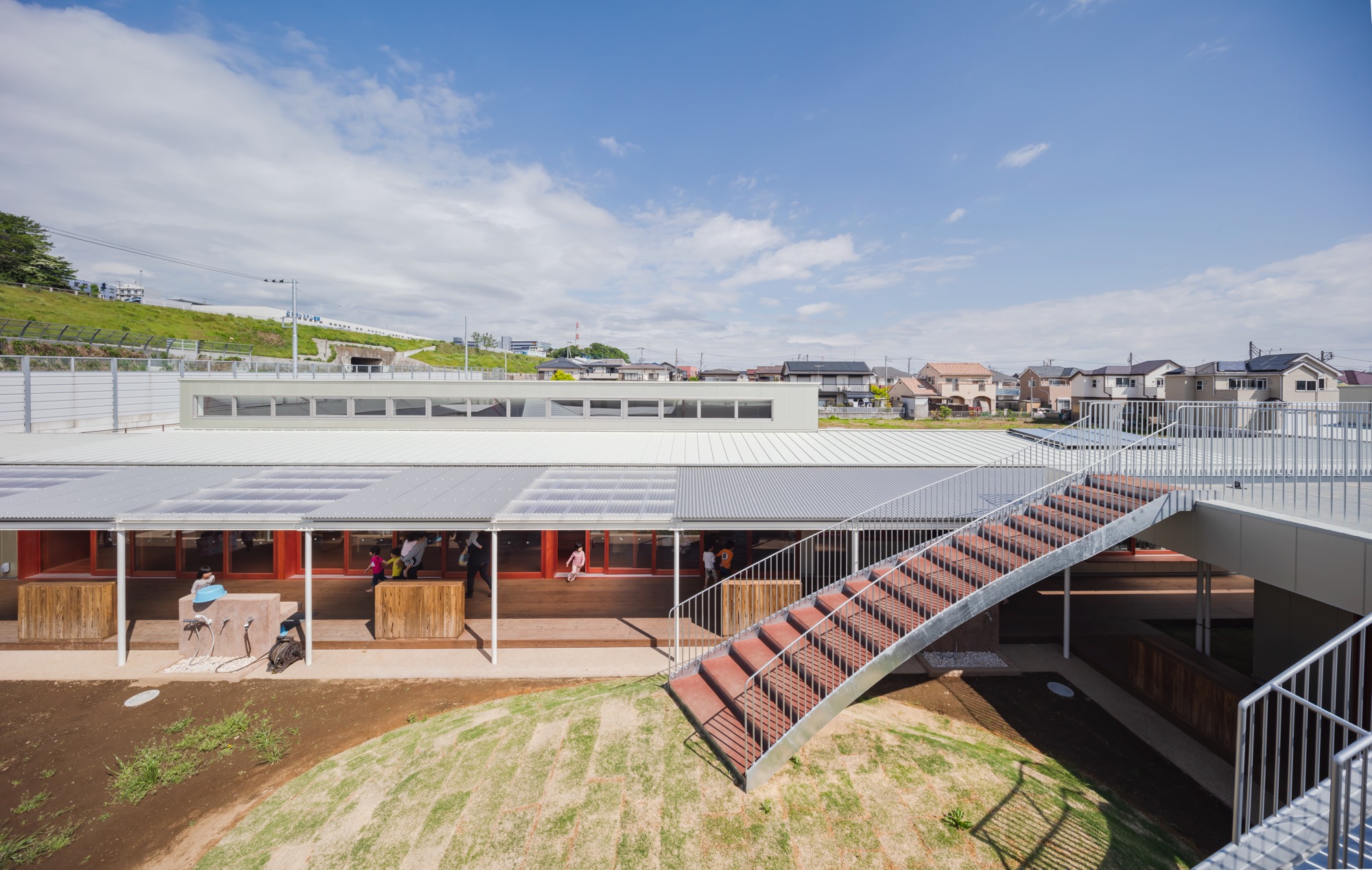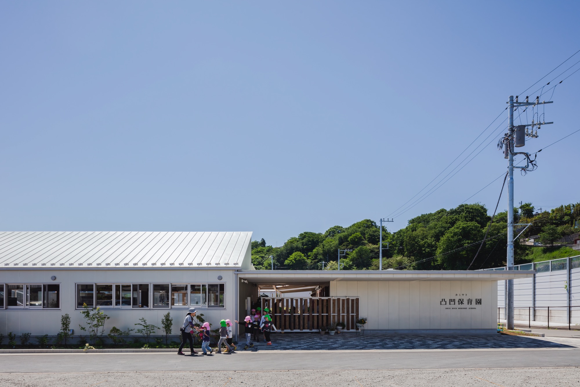 카미야토 울퉁불퉁 보육원은 보육 시설과 장애아동을 위한 탁아시설의 조합으로 계획되었다. 부지에는 가람 배치가 넓게 사용되었으며, 부지와 매스를 따라 정사각형 모양의 갤러리가 내부와 외부에 배치되어 두 정원 사이에 다양한 거리를 생성한다. 각 보육실에는 높은 창, 반 야외 공간 및 정원이 있는 박공구조의 볼륨이 있다. 이러한 교차는 공간의 규모와 빛, 바람, 비와 같은 자연 현상과의 조화 및 다른 연령과의 거리의 지속적인 변화를 통해 서로 다른 환경을 생성한다.