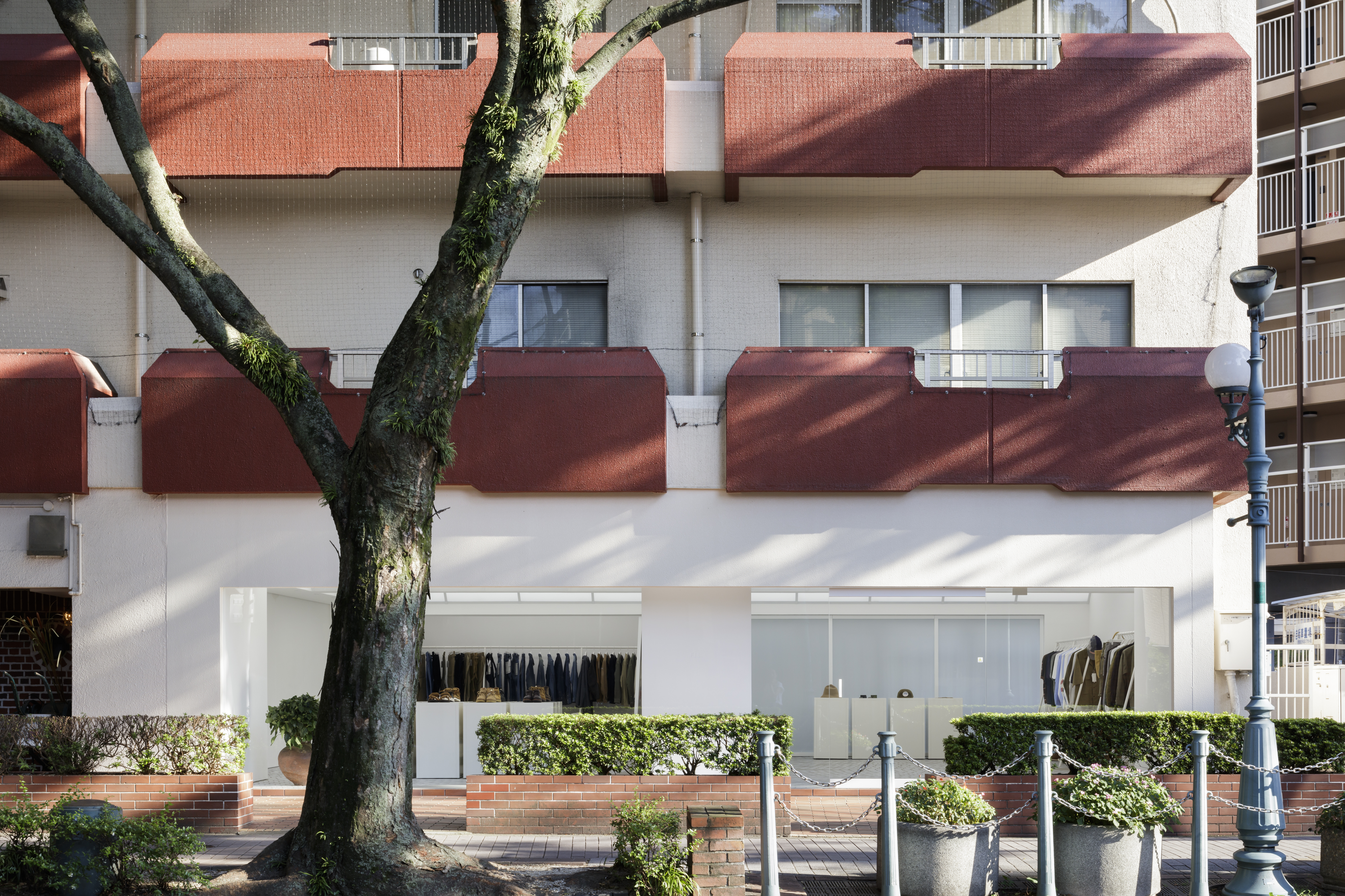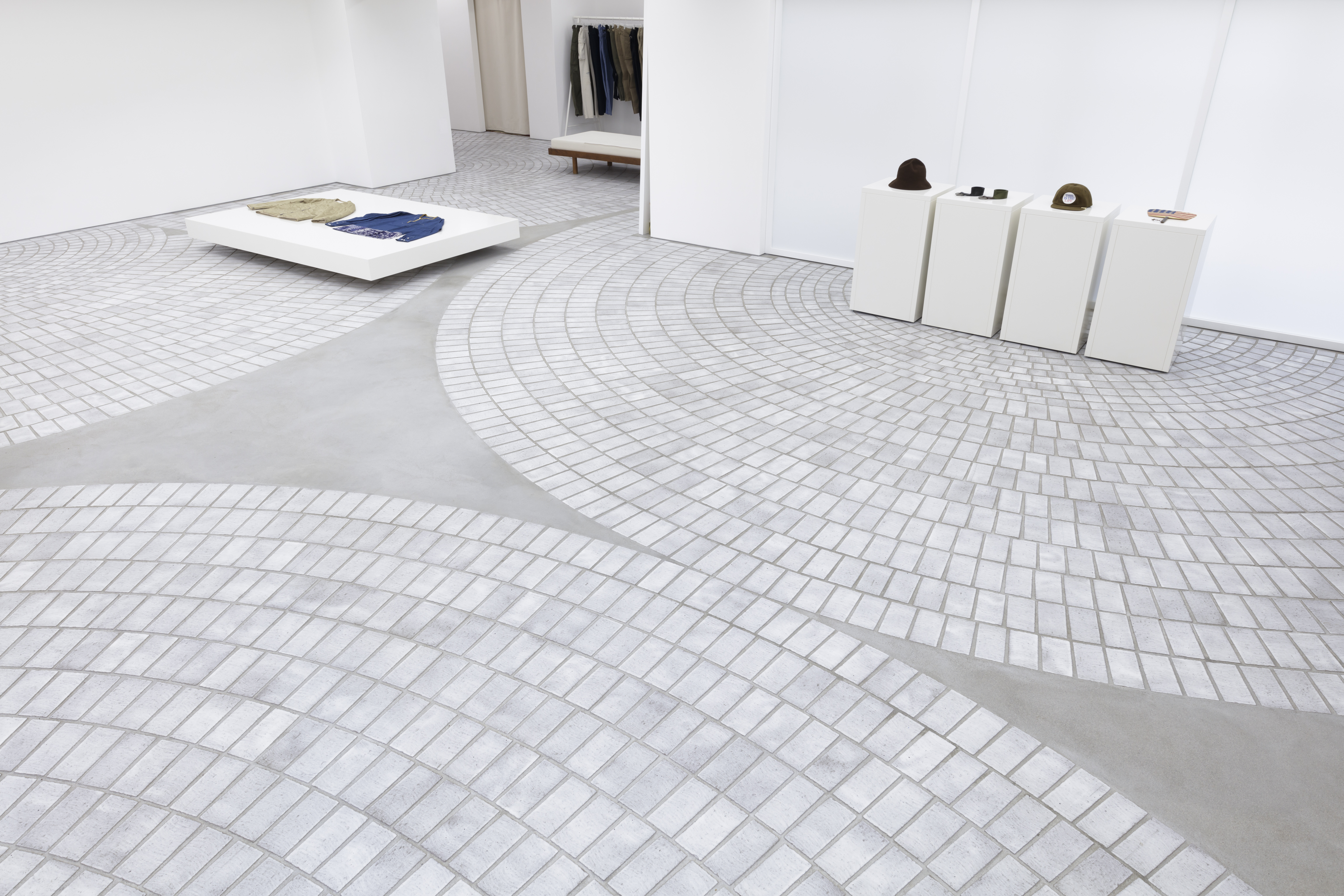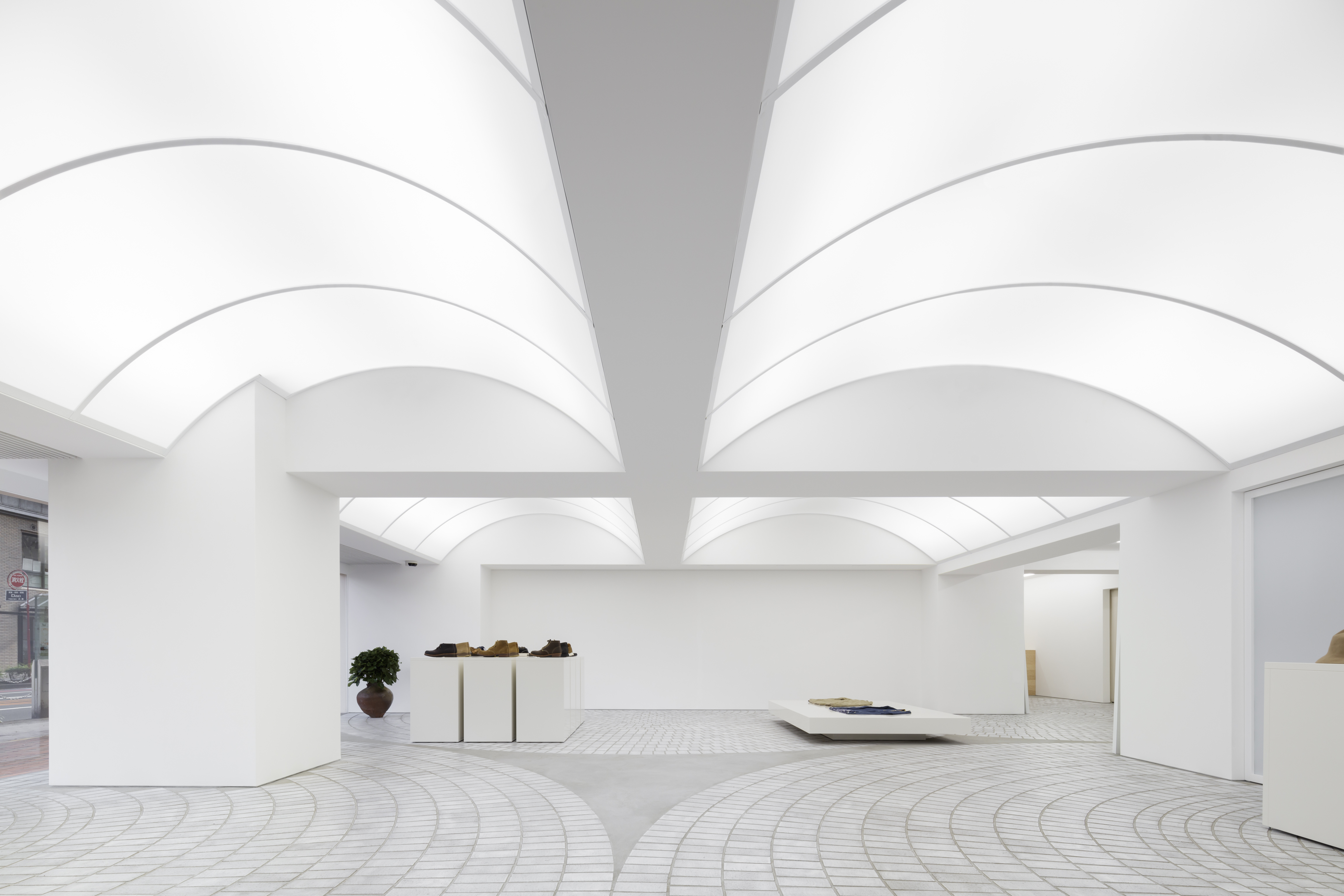 일본 패션 브랜드 ‘visvim’의 플래그십스토어의 디자인 프로젝트다. 이 상점은 100그루의 느티나무와 벽돌로 포장된 고요한 거리를 마주하고 있다. 여기에서 건축가는 주변의 분위기를 가게 내부까지 끌어들이려고 노력했다. 아치형 조명 천장은 많은 구조적 보를 사용하도록 설계되어 그늘 없이 빛을 제공한다. 바닥에는 2차로 굽기 전에 흰색 유약을 발라 만든 흰색 벽돌 패턴이 잔물결 모양으로 놓여, 입구에서 깊은 안쪽까지 이어지는 리듬을 만든다.