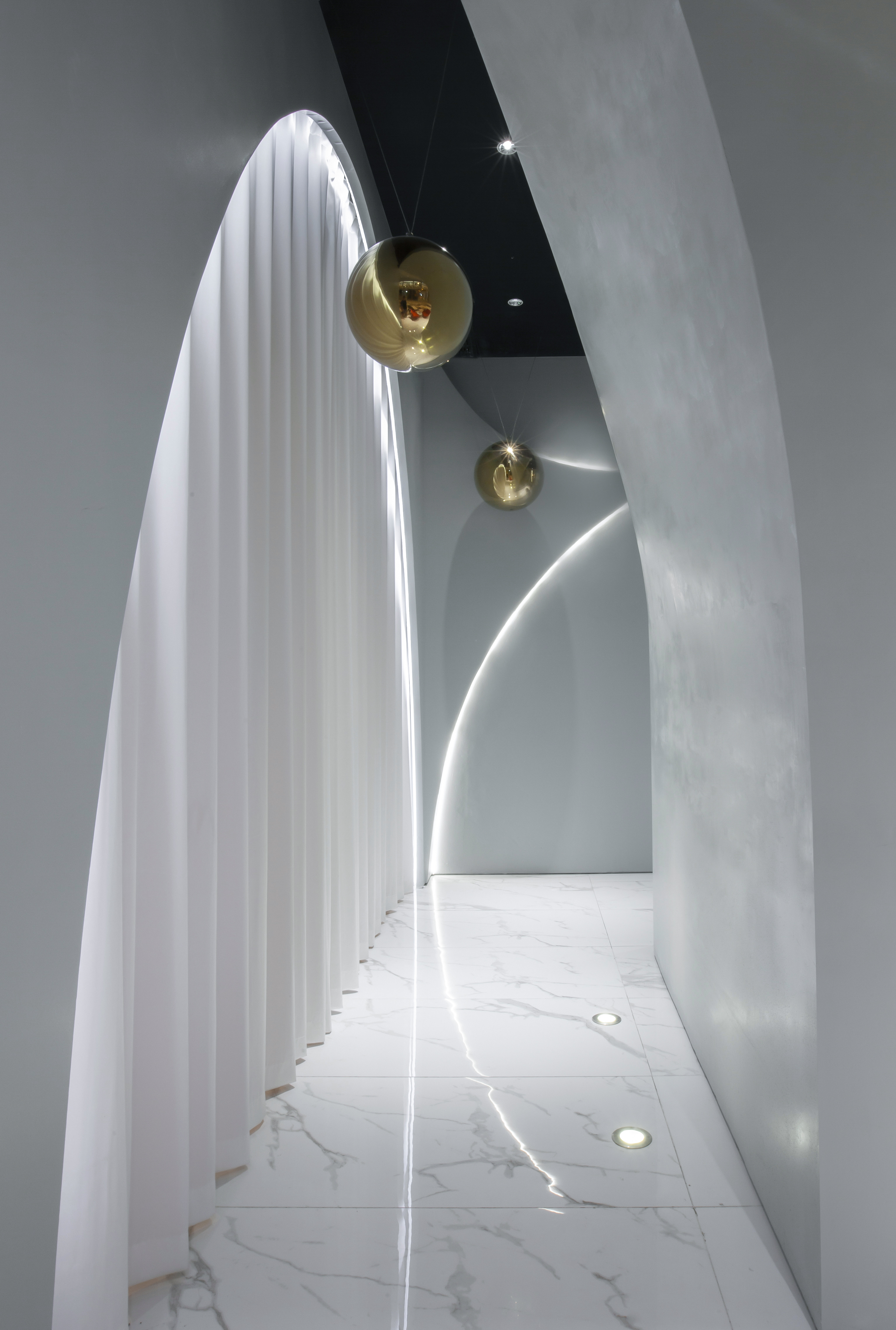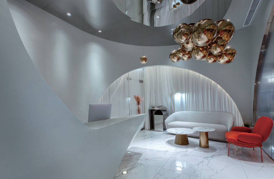 CICI Beauty & Slimming은 새로운 기술로 여성들의 건강과 아름다움을 위한 뷰티 콘셉트를 지향하는 그룹이다. 현지에 기반한 디자인팀 토우디자인은 이 브랜드의 새로운 매장 설계를 의뢰받았다. 정육면체에서 뛰쳐나와 공간의 여러 모서리들로 흩어지는 공간의 황금 방울들은 전체 공간을 가로질러 펼쳐지는 설치 미술품을 형성하며, 16개의 기능적 영역들을 연결한다. 이 공간은 여성적이며 부드러운 오목한 곡선으로부터 찾을 수 있는 호리호리함과 가벼움의 느낌을 준다. 실용적이었던 기존의 공간은 방울들에 의해 점진적으로 미적 감각이 조화롭게 부여되며, 예술적인 방울들은 공간에 통합된 후 점진적으로 몇 개의 실용적 기능들을 제공한다.