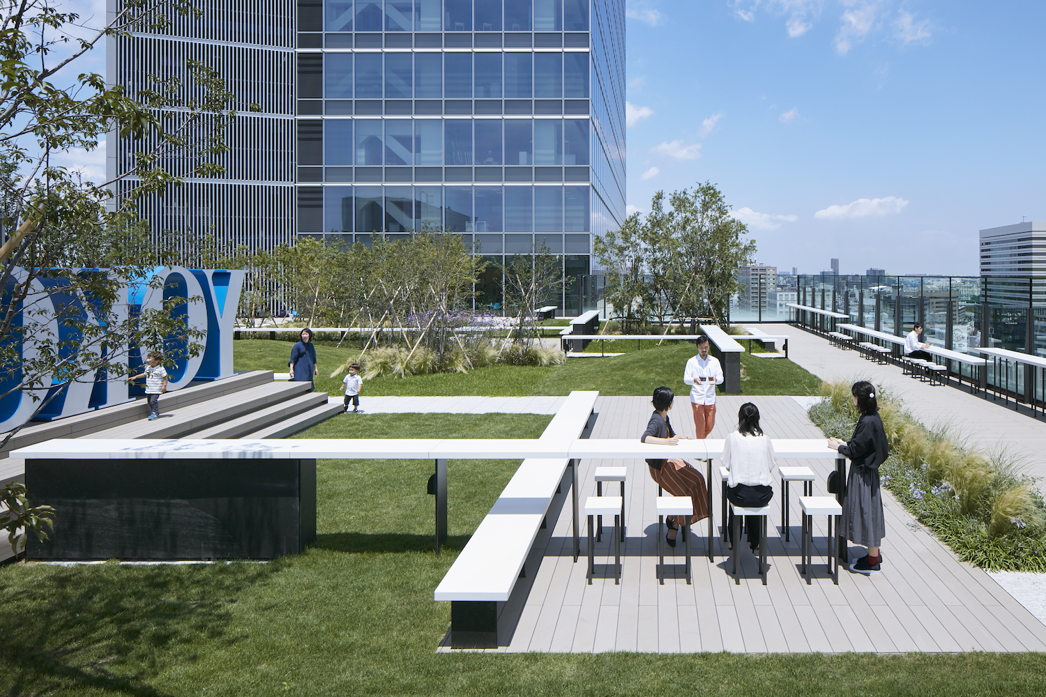 요코하마 역의 서쪽 출구에 건설된 JR 요코하마 타워 12층에 위치한 우미소라 데크(바다-하늘)는 타워의 상업 영역과 사무 영역 중간에 위치한다. 이 작은 데크 공간은 두 공간을 연결하는 공간이다. 일하는 사람들은 이 데크에서 점심을 먹고, 미팅을 개최하거나 업무 공간 연장선에서 개방된 공간을 갖게 되어, 이곳에서 일할 수도 있다. 주말에는 역에 방문한 사람들이 경치를 즐기고 휴식을 취할 수 있는 공간이 된다.