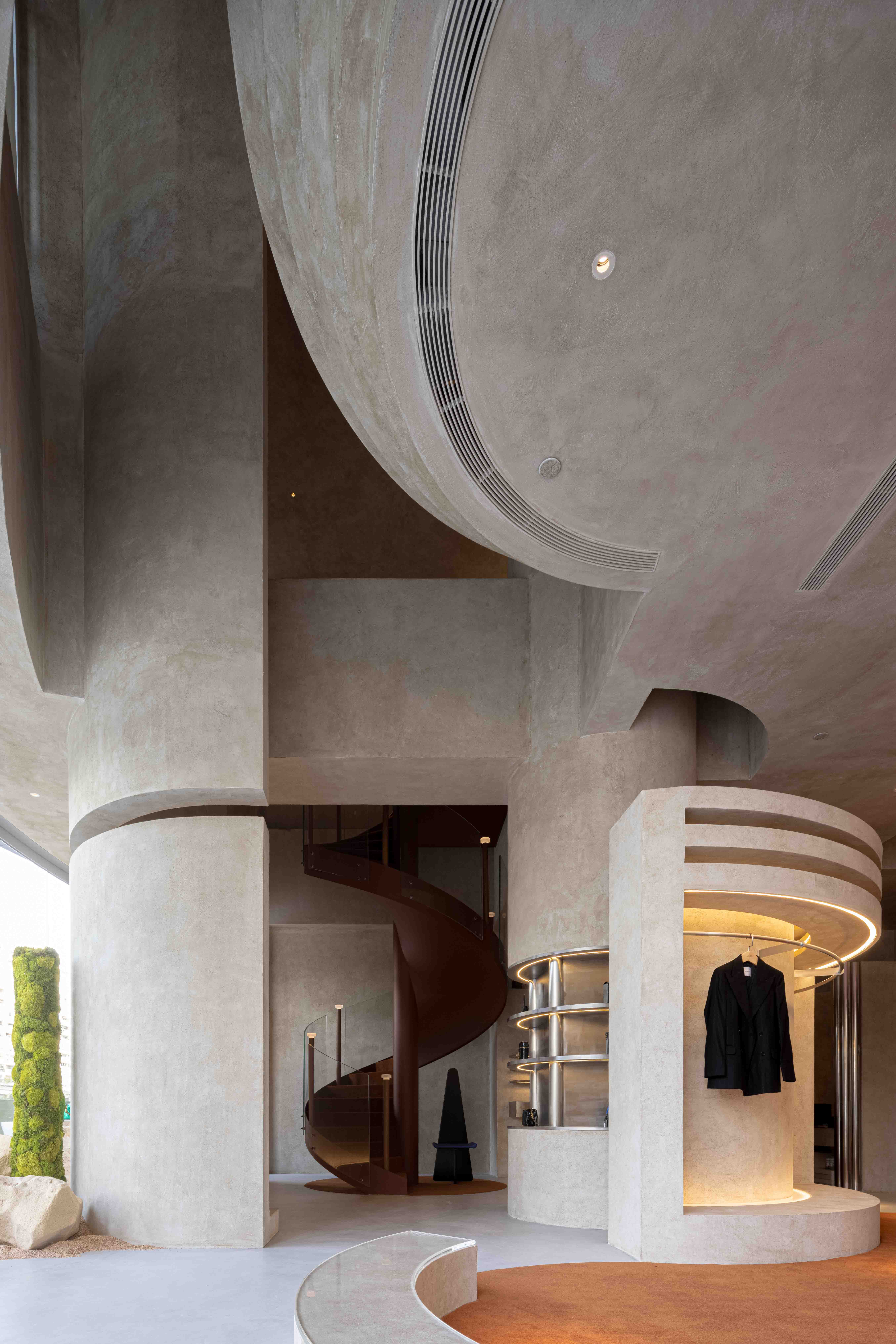 이 프로젝트는 오드리 헵번(Audrey Hepburn)의 이름을 딴 패션 부티크로 디자인 팀은 부드러움과 단단함으로 정의되는 공간 구조를 매장에 표현하고자 했다. 레트로 퓨처리즘(Retro-futurism)이라는 콘셉트를 바탕으로 레트로와 미래주의적 요소를 결합하고, 서로 다른 재료의 질감, 우아한 곡선과 날카로운 기하학적 요소를 사용하여 구조적 형태를 표현했다. 부드러운 천과 복고풍의 나무 질감이 콘크리트와 금속이 주는 시원함, 단단함과 대비된다. 단순하고 명확한 구조와 순수한 질감의 표현이 공간 미학을 창출한다.