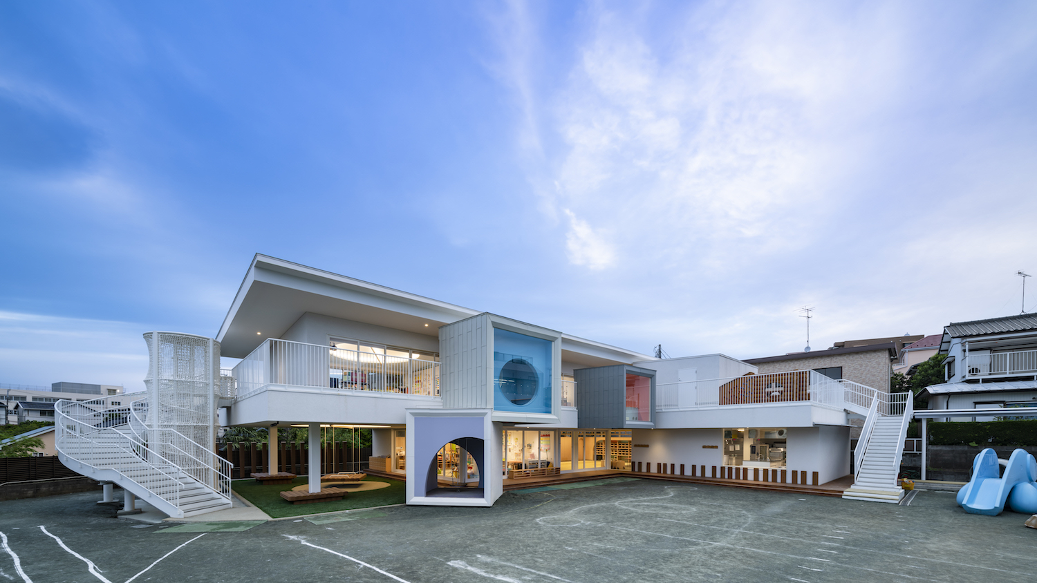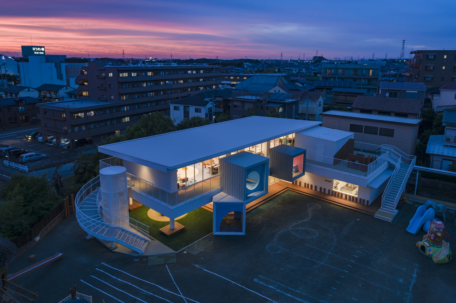 이 유치원은 “놀이는 학습”이라는 콘셉트로 두 사무소가 참여해 기획되었다. 요코하마의 주택가에 위치한 이 건물은 정원, 필로티, 외부계단, 테라스가 하나의 공간에 있으며 시설과 정원 사이를 자유롭게 이동할 수 있도록 계획됐다. 동선에는 3개의 상자 모양의 공간이 있으며 각 내부는 색상과 모양이 다르다. 특별한 기능이 없는 이 큐브 공간은 아이들의 창의력을 자극하고 놀이를 유도하며 놀이방은 다다미로 되어있어 일본 문화를 체험할 수 있는 학습공간이 된다.