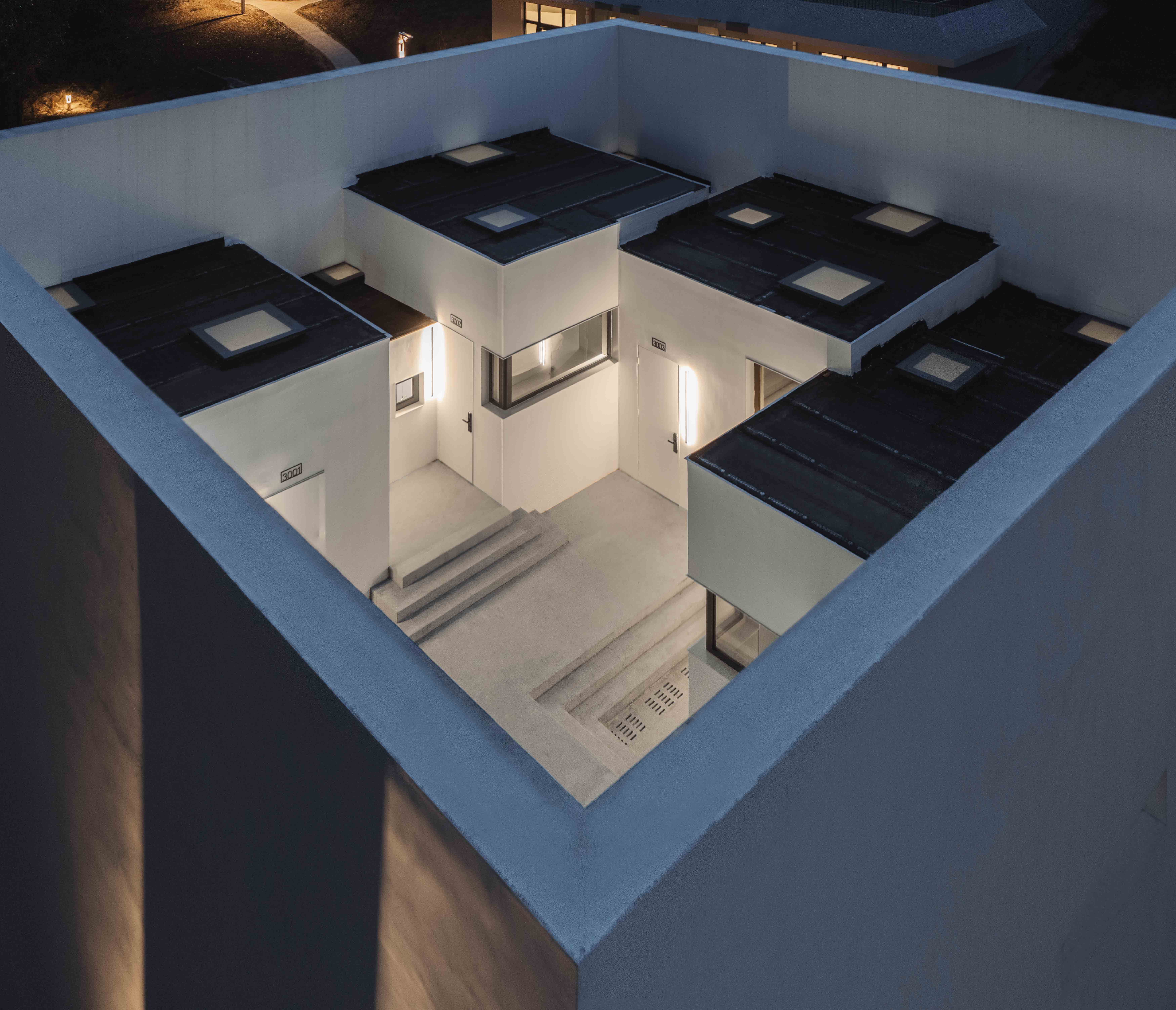샤오터우 마을에 지어진 이 프로젝트는 중국 허베이성 장자커우의 시골 마을에 지어진 게스트하우스다. 건축가는 초현실주의 화가 르네 마그리트의 “Le Calcul Mental”에서 영감을 얻었다. 또, 이 마을의 가옥들이 연속적인 벽으로 둘러싸여 있는 것을 발견하고 이 프로젝트에 투영했다. 7m 높이의 담장은 완전히 고립된 인상을 주지만, 낯선 마을을 찾은 이방인들에게 안정감을 줄 수 있고, 또, 낯선 이들을 맞아 들은 이 마을에 범퍼 역할을 한다. 야외에서 직접 출입할 수 있는 객실은 중국 전통 가옥의 형태를 재해석했다고 할 수 있다. 인테리어는 장식적인 요소를 배제하고 시계마저 치워진 공간에서 창문을 통해 들어오는 자연광의 변화로 시간을 인지하며 자연스레 휴식을 취할 수 있도록 했다.