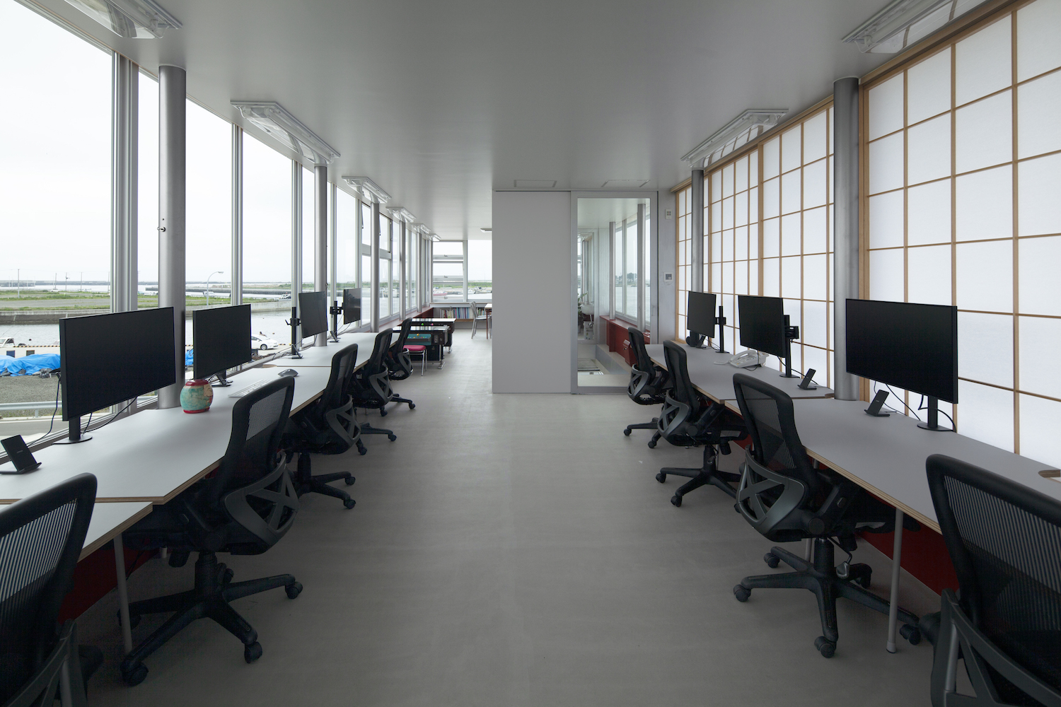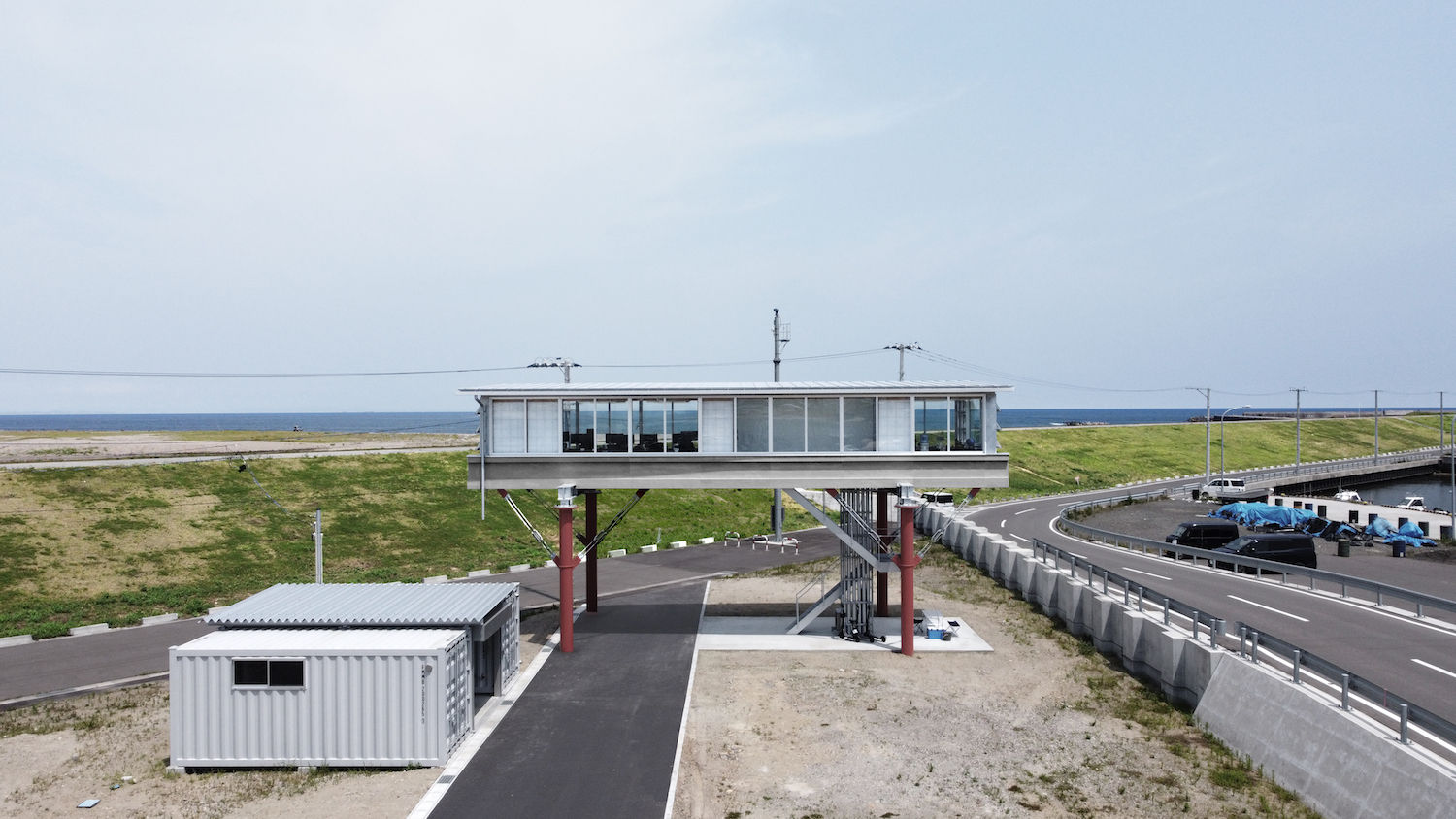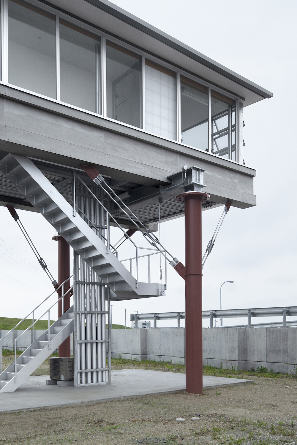대지는 2011년 대지진 이후 새로 건설된 제방과 방조제로 둘러싸여 바다로의 시야가 가로막혀 있었다. 제방 위에 바닥을 만들기 위해 토목공항에서 교량이나 교각을 구축할 때 사용되는 말뚝 교각(Pile Bent)이라는 구조가 채택됐다. 말뚝 자체가 기둥이 되고 지면을 뚫는 강철 실린더가 된다. 바다를 조망하는 2층과 대조적으로 필로티는 제방을 공간의 배경으로 받아들인다. 둑을 조경의 요소로 삼음으로써 황량한 풍경 속의 사람들을 위한 공간이 만들어진다.