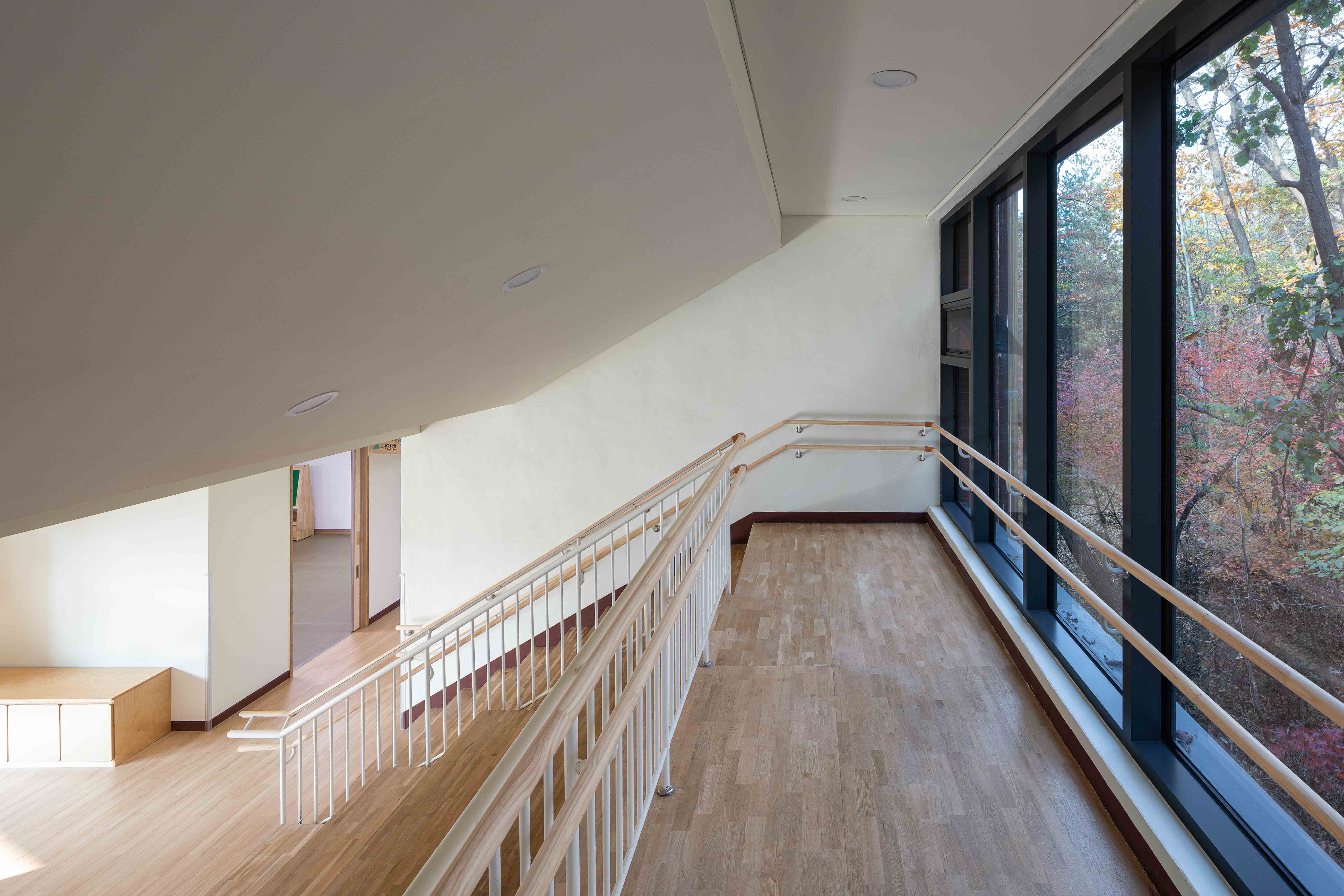 기존 다원 어린이집은 하나의 대지에 경로당과 어린이집이 존치되어 있었다. 부지는 서측 산속 막다른 6m의 미성길 도로와 인접하며, 동측과 남측은 생태공원과 연결되는 임야와 인접했다. 새로운 어린이집은 경사가 있는 6m 도로에서 보행자 동선과 차량 동선을 분리했고, 단차를 이용하여 일부 개방된 지하주차장를 계획했다. 주출입구 쪽에는 다양하고 개방적인 외부공간인 옥외 놀이터가 있다. 1층의 주진입부 근처에는 진입마당이, 보육실과 가까운 곳에는 전용마당이 있다. 홀과 계단실을 중심으로는 뒷산과 연결되어 주변과 소통하는 열린 배치 및 개방적인 공간이 펼쳐진다. 2층과 3층 외부데크는 홀과 연결되어 홀에서 열린 풍경을 볼 수 있으며, 아이들의 외부 놀이공간으로도 사용된다. 뿐만 아니라, 외부데크는 피난계단까지 연결되어 피난통로의 역할도 한다. 홀을 중심으로 계단과 외부테크는 뒷산과 남측 생태공원으로 열린 시야를 확보했다. 3층의 유희실은 경사지붕 측면 창으로 들어오는 햇살로 빛이 가득한 공간이 된다.