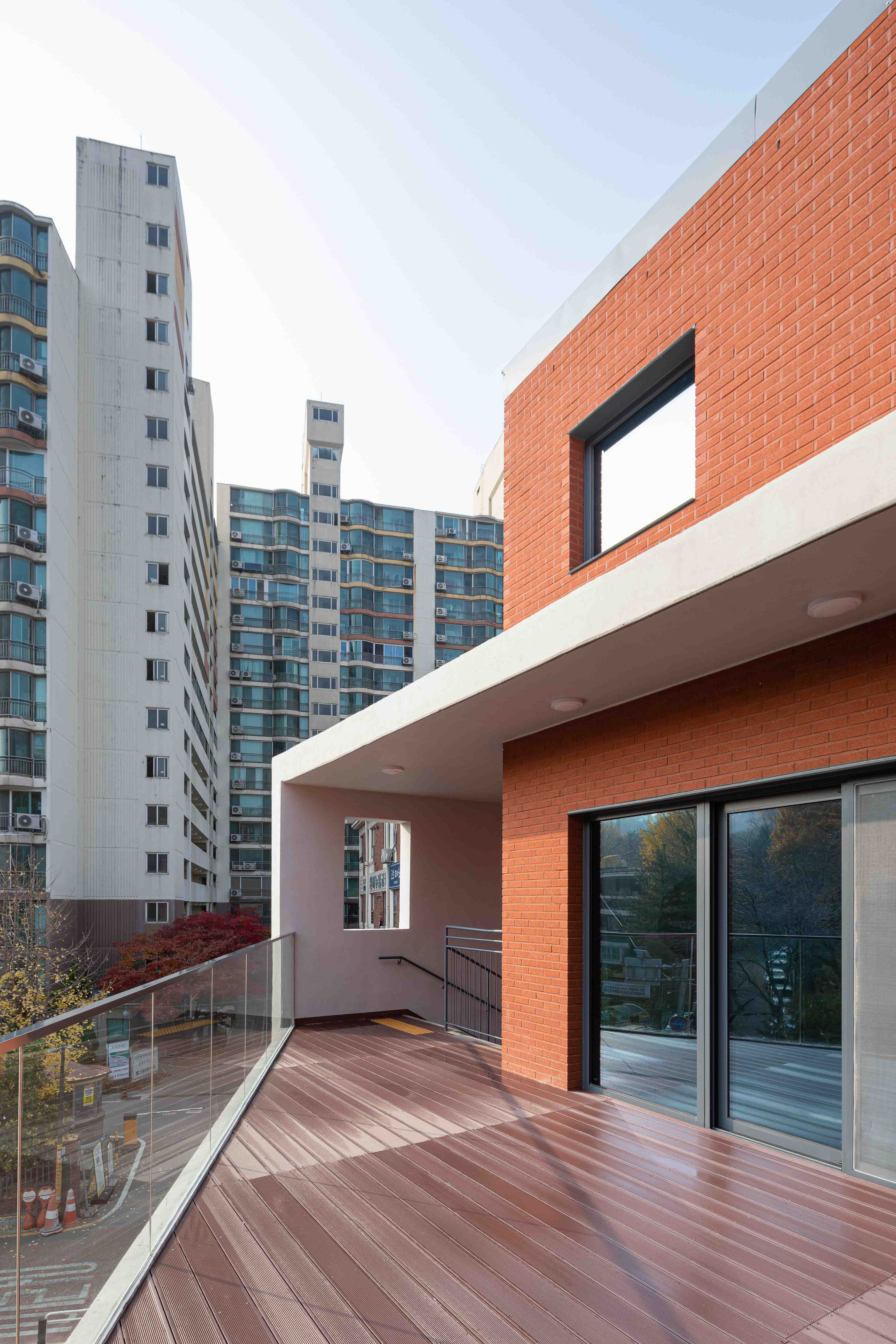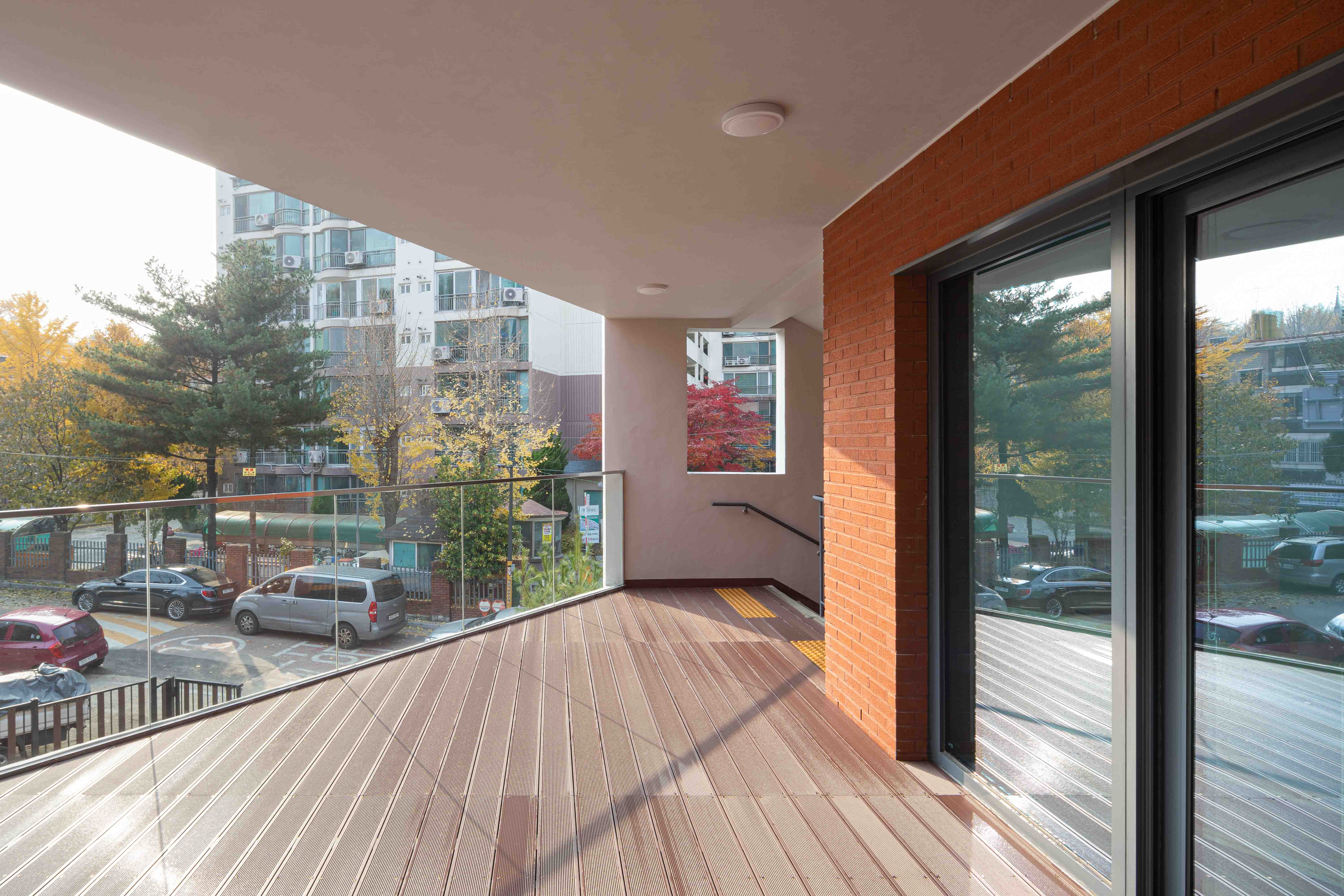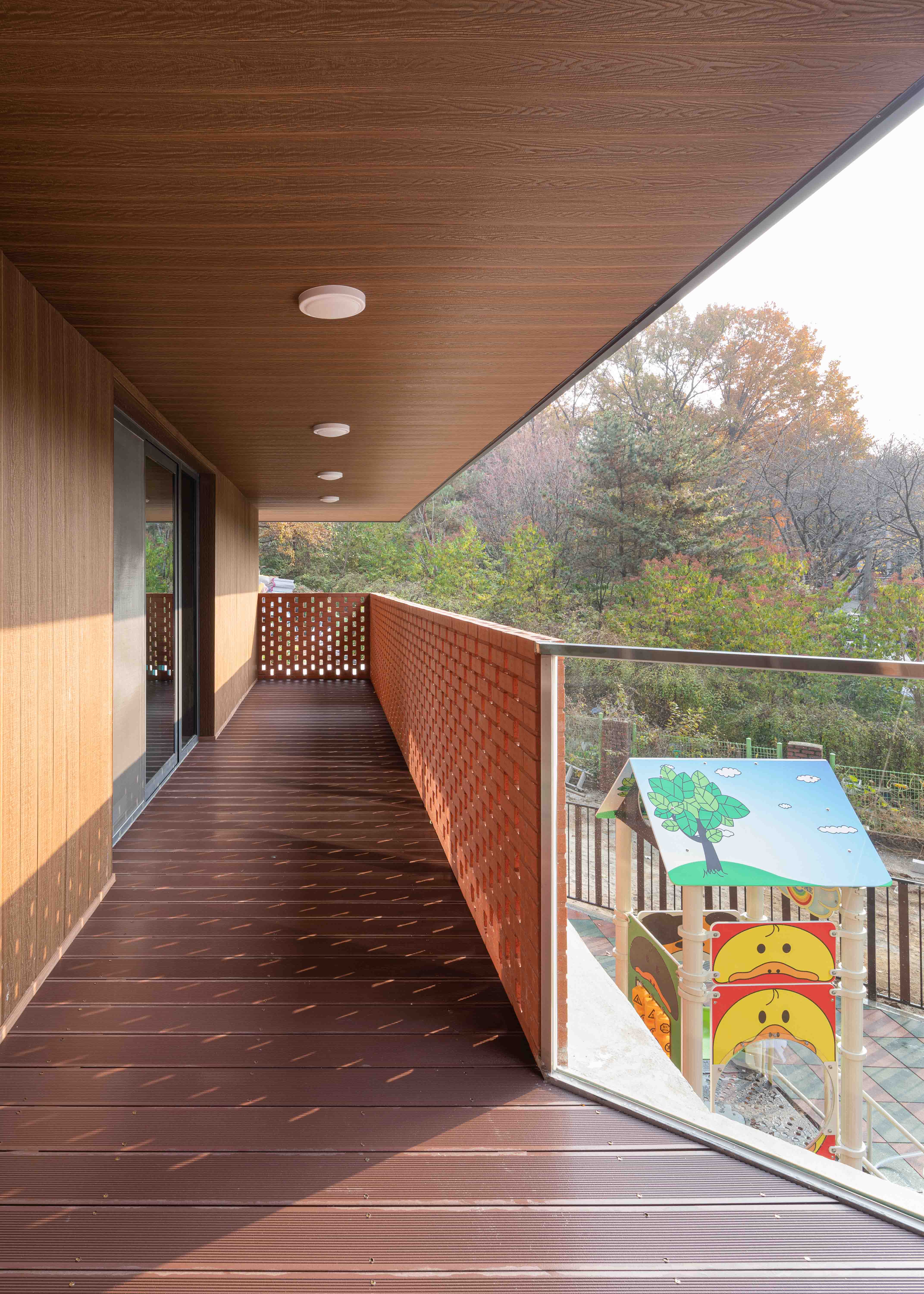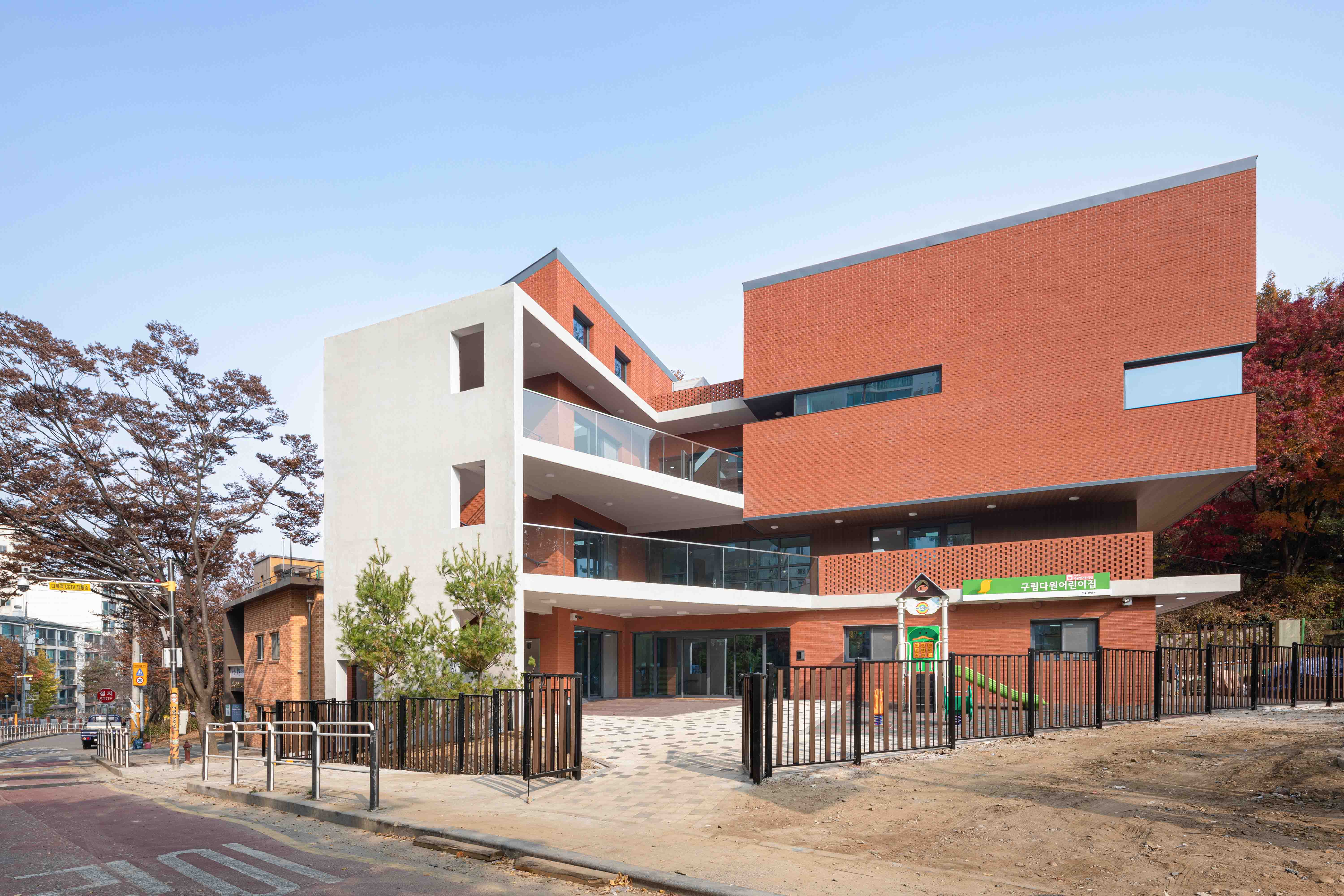 입면은 맞은편에 있는 아파트로 인해 가로 경관을 저해하는 획일적 디자인이나 과장된 디자인, 폐쇄적인 디자인을 지양했다. 주변 지역의 건축물 규모, 높이와 조화를 이루면서도, 저층부 외부 공간은 이용자, 보행자를 위해 개방적으로 열려 있는 어린이집이다.