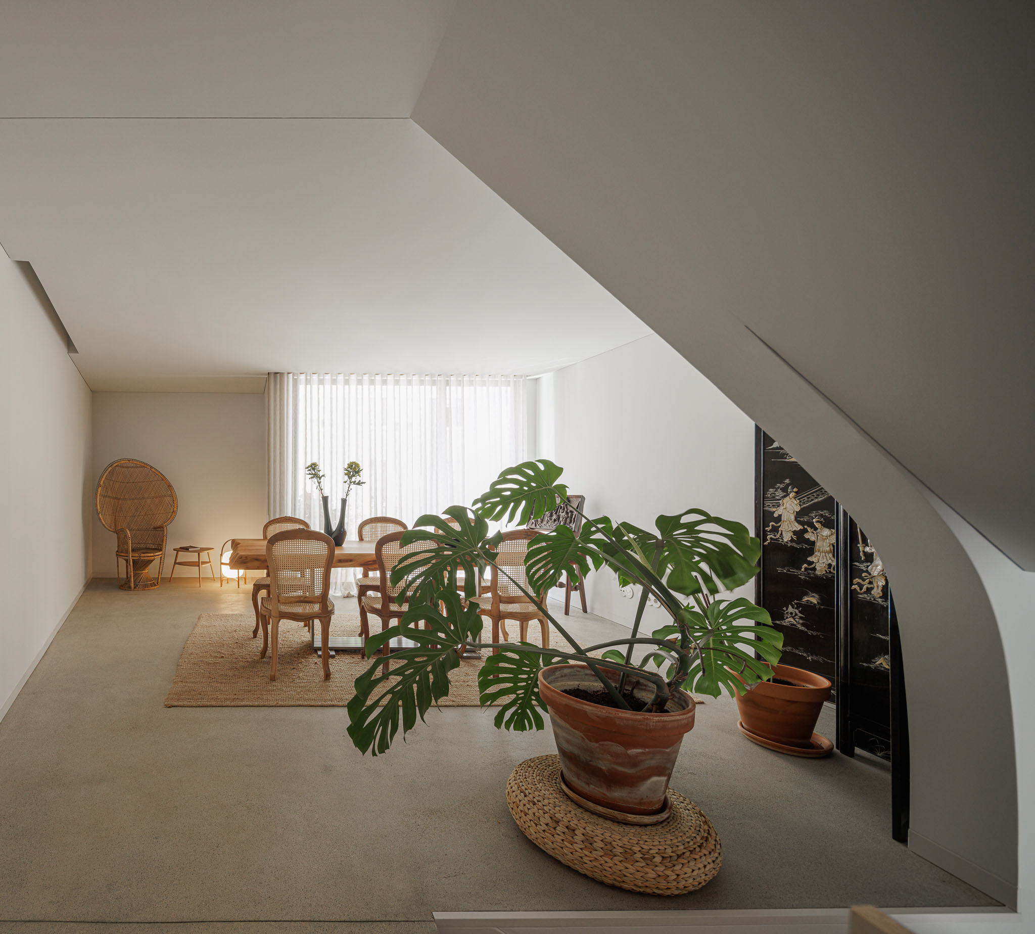 소셜 공간은 시각적으로 연결되어 있어, 연속적이고 자율적인 공간에서 여러 병렬 경험을 할 수 있다. 반지하 사무실은 거실의 발코니를 가로지르는 큰 창문으로 환하다. 높은 층에 위치한 개인 공간은 프라이버시를 보장하는 디자인으로 구성되어 있다. 모든 층의 시멘트와 문, 캐비넷 및 가드레일을 위한 부드러운 목재와 같은 원자재는 주택 프로젝트의 일관성을 강화한다. 대리석은 주방 조리대 및 위생 설비에 사용된다. 이전 건물의 오래된 벽돌을 보존한 반지하 사무실부터 옥상까지, 건축은 세련되어 있으며 일상 생활과 가족 행사에 적합한 리듬으로 다양하고 채광이 좋은 거주 공간을 만든다.