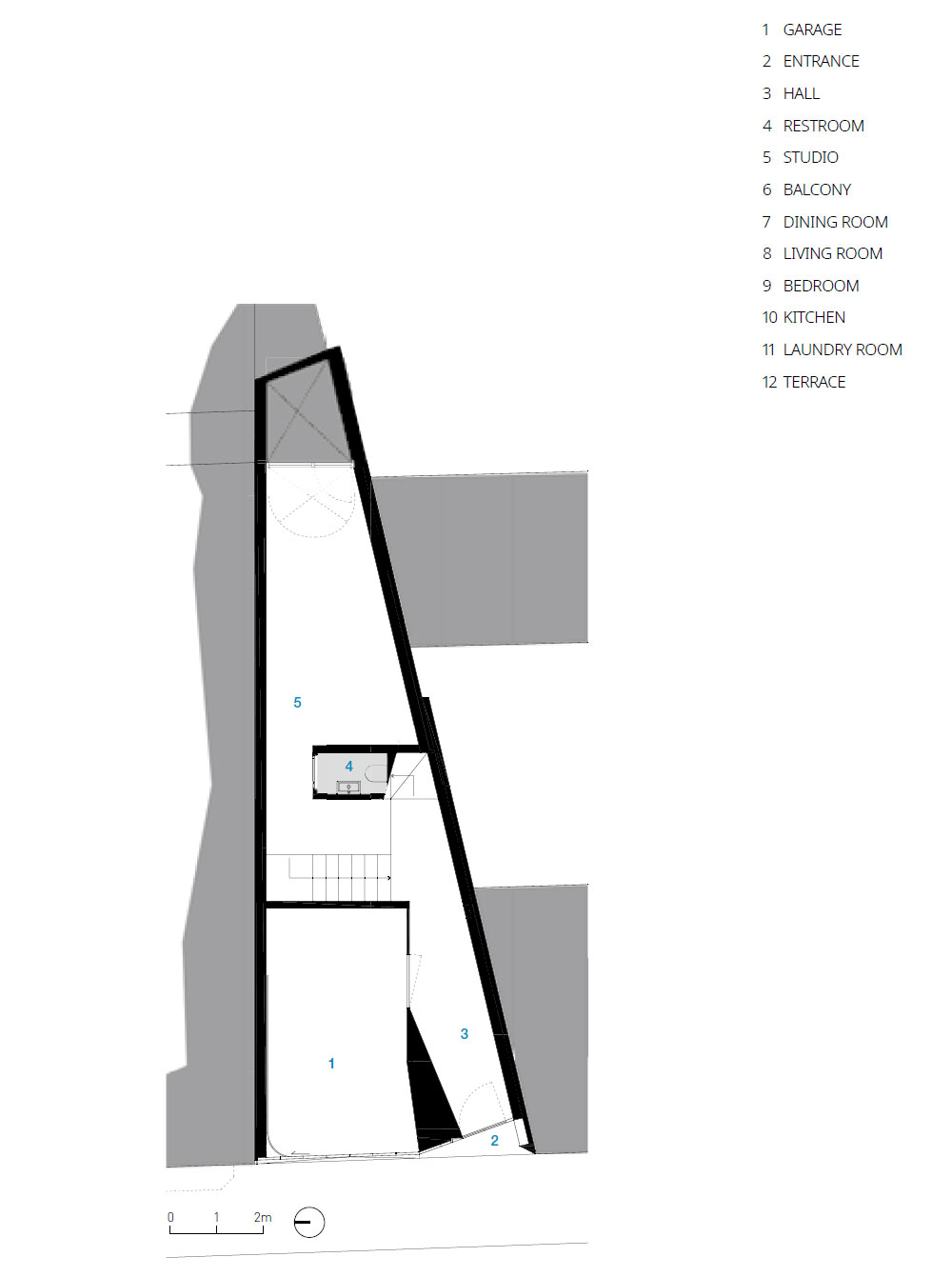버티컬 하우스는 포르투갈의 도시 포르투에 위치한 단독 주택이다. 이 프로젝트는 도심 지역의 좁은 부지에 기능적인 프로그램을 수용하고자 한다. 다양한 공간의 구성은 수직적으로 이루어지며, 중앙 계단을 중심으로 반층에 방이 분산되어 있다. 계단은 난간이 종이 접기 조각처럼 펼쳐지는 개입을 통합한다. 건물의 수직성은 동일한 규모와 비율로 거리 전면을 따른다. 집의 정면은 전형적인 "포르투 도시 주택" 입면 구성을 나타내며, 수직 창, 정면의 3분할 및 처마 장식 상단을 갖추고 있다. 마찬가지로, 베이스, 샤프트 및 가둥머리의 경계를 구분하여 구성의 고전적인 구조를 암시한다. 단일성이 강조된 집의 외관은 균일한 마감과 파사드의 입체적인 라인으로 강화된다.