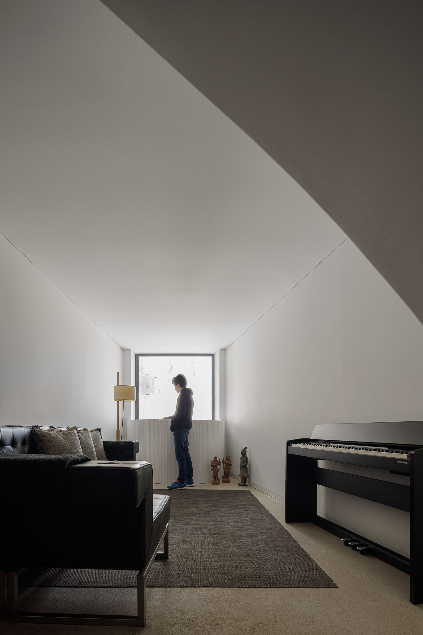 소셜 공간은 시각적으로 연결되어 있어, 연속적이고 자율적인 공간에서 여러 병렬 경험을 할 수 있다. 반지하 사무실은 거실의 발코니를 가로지르는 큰 창문으로 환하다. 높은 층에 위치한 개인 공간은 프라이버시를 보장하는 디자인으로 구성되어 있다. 모든 층의 시멘트와 문, 캐비넷 및 가드레일을 위한 부드러운 목재와 같은 원자재는 주택 프로젝트의 일관성을 강화한다. 대리석은 주방 조리대 및 위생 설비에 사용된다. 이전 건물의 오래된 벽돌을 보존한 반지하 사무실부터 옥상까지, 건축은 세련되어 있으며 일상 생활과 가족 행사에 적합한 리듬으로 다양하고 채광이 좋은 거주 공간을 만든다.