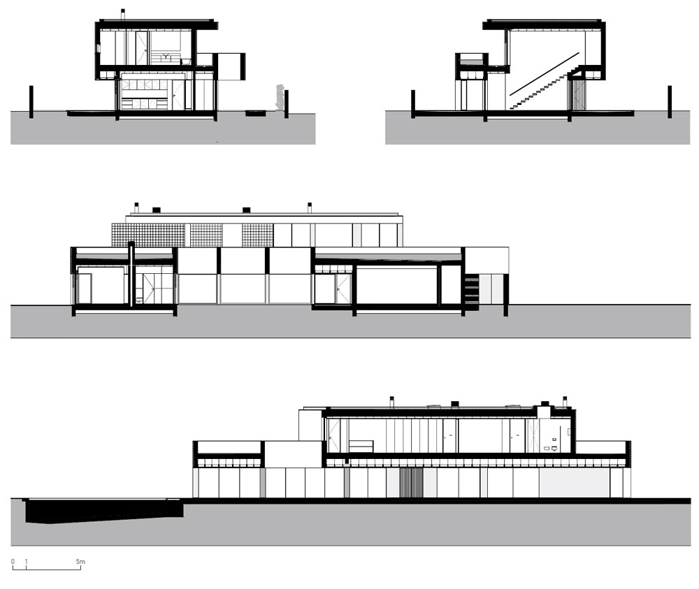 두 층에 걸친 긴 건물의 형태를 결정하는 길고 좁은 토지에 이 집은 위치해 있다. 차량 접근은 마리아 알베르티나 거리에서 대지의 더 넓은 면에 수직으로 이루어지며, 반면에 보행자 접근은 남쪽인 레구아 대로에서 동쪽으로 이어지고 집을 따라 입구까지 이어진다. 거기서부터 현관을 통해 남쪽으로는 거실, 부엌, 게스트방에 접근할 수 있고, 북쪽으로는 차고와 체육관에 접근할 수 있다. 작은 윗층에는 공용 욕실이 있는 두 개의 침실, 마스터 스위트룸, 및 사무실이 있다. 긴 모양의 이 집은 외부와 태양 사분원호와의 관계를 최대한 활용하려고 노력한다. 사교 및 레저 공간은 남서쪽으로 열려 부분적으로 덮힌 긴 파티오 공간을 즐길 수 있다. 동쪽으로 내부 순환은 큰 거울을 통해 이루어지는데 이는 큰 반짝 거리는 부분으로 외부 보행자 접근과 분리된다. 윗층에서는 침실과 사무실이 대형 발코니와 테라스로 연결되어 있으며, 동쪽이던 남쪽이던 아침 햇살을 즐길 수 있다. 채적은 수평적으로 표시되며, 하얀 석고로 만든 슬래브와 빔이 시멘트 타일의 벽 클래딩을 대조시켜 세트에 가소성과 생기를 제공한다. 1층 슬래브의 개구부와 대형 유리창이 건물의 언어를 완성한다. 개념적 아이디어는 형식적인 과장과 기존 언어와 대조되는, 단순하고 깨끗하며 거의 미니멀리즘적인 디자인을 기반으로 한다.