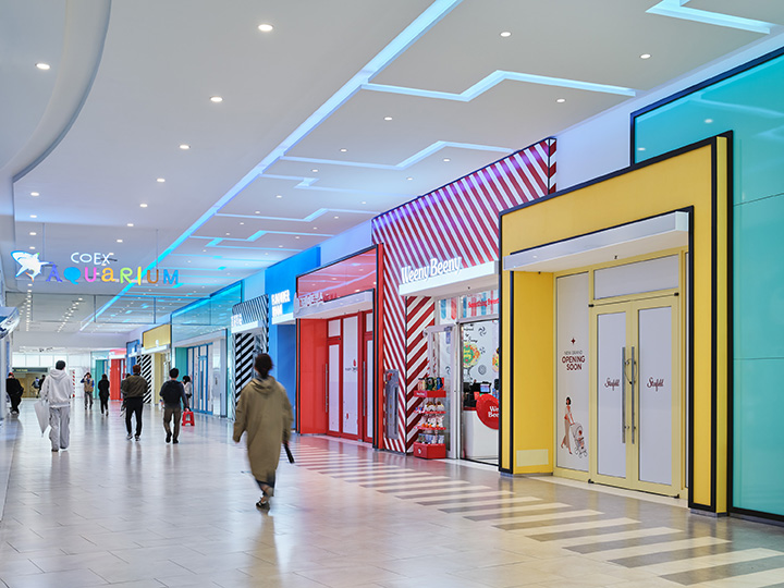 In 2017, the client of this project, "Starfield," took over management of "Coex Mall." To remedy the fatal flaw of the area, they built a landmark known as the "Starfield Library." Even though the "Starfield Library" served as a landmark, individuals still got lost. This was known to the client, but the primary reason why this flaw was inevitable was that people entering "Starfield Coex Mall" could not determine their direction. Without a nearby absolute reference point, such as the sun, it is impossible to determine the direction based on a single point in space. Therefore, it was difficult to determine direction with only one landmark, the "Starfield Library," in the "Starfield Coex Mall." The client and we realized this, and to overcome it, we created several connected points to the Starfield Library. When these points are connected in a straight line, they serve as a compass for people to navigate the space. We planned three points, "Gourmet Street," "Live Plaza," and "Aquarium Street," to form a linear connection that would serve as a compass for people in the space, rather than relying on the "Starfield Library" alone. To make these points more distinguishable, we came up with the idea of assigning them each a distinct personality.