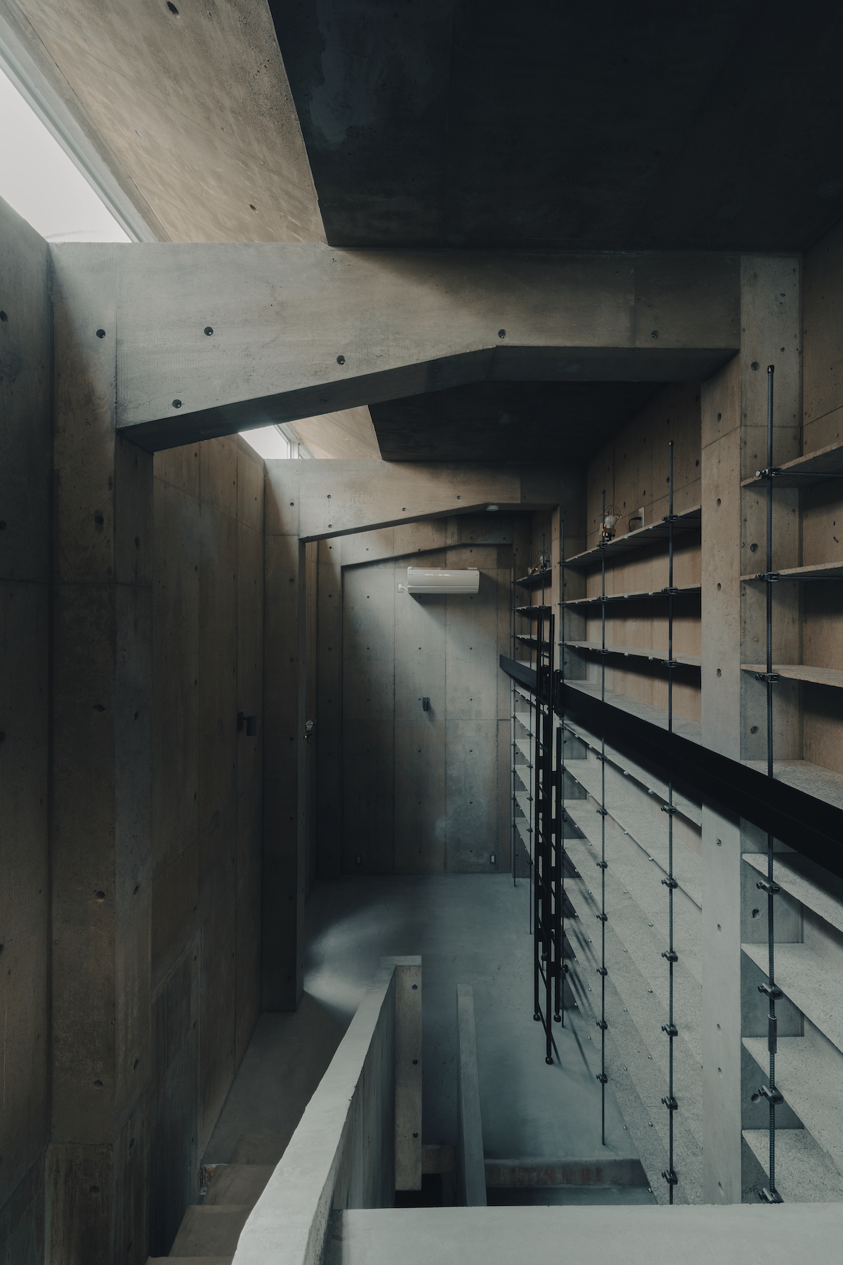 이 작은 도시형 주택의 건축주가 요구한 것은 평범하고 간단했다. 그는 거대한 책장으로 둘러싸인 수직적인 공간에서 자신만의 세계에 완전히 몰입할 수 있는 독신남의 공간을 원했다. 이를 위해 건축가는 그가 알고 있는 건축적 고의성을 부인하는 것에서 시작했다. 순수한 물질성과 도로, 다리와 같은 토목공학적 구조가 설계의 기준점을 제공했다.