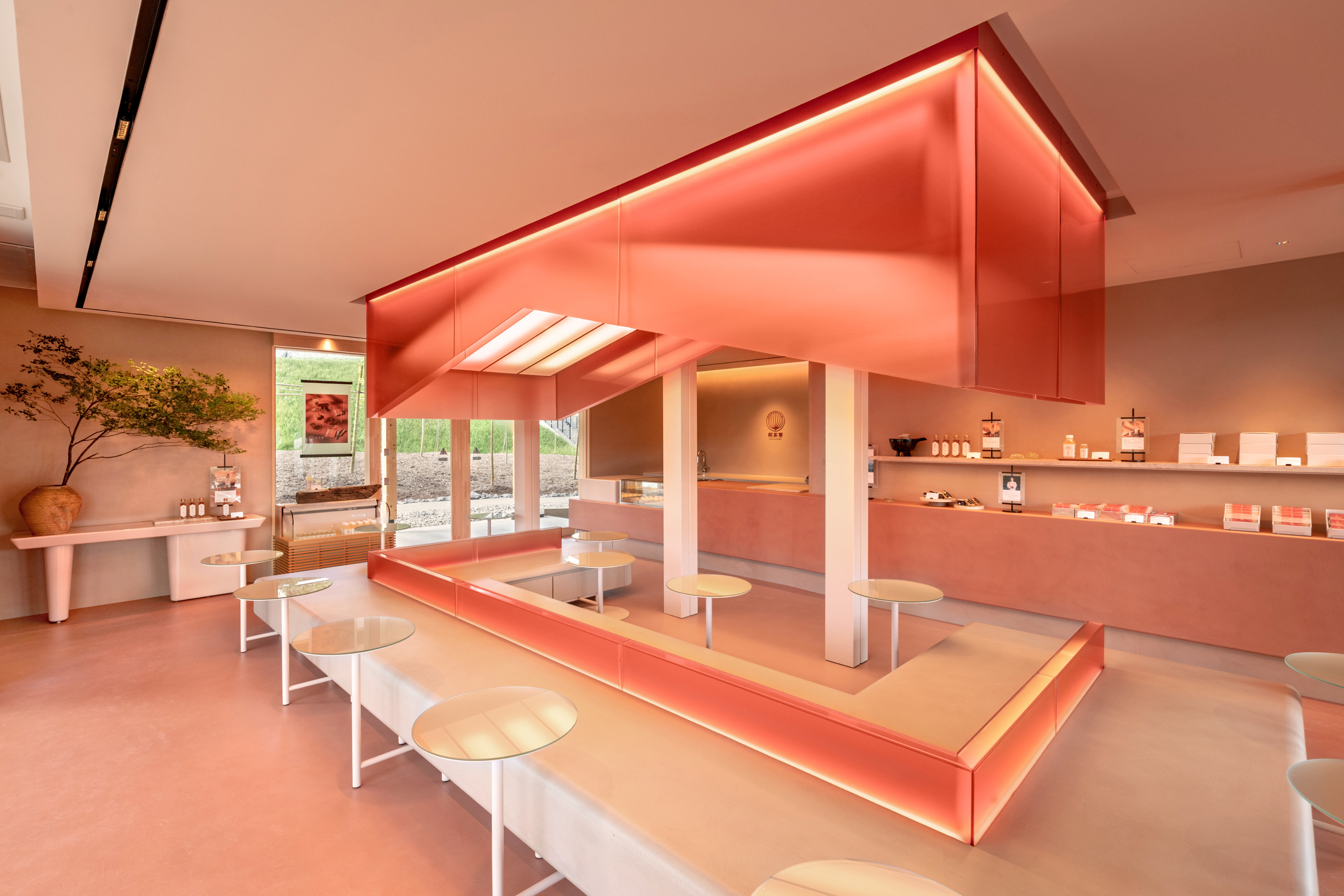 쌀고오지 제조업체인 우오누마 조조(Uonuma Jozo)가 운영하는 이 카페는 미에현의 고급 리조트와 쇼핑센터 안에 위치하며 아마자케와 달콤한 발효 고오지 음료, 기타 고오지 제품을 판매하고 있다. 이 카페의 재료, 색상, 형태는 겨울이면 눈이 3m 이상 쌓이는 일본 북부 우오누마의 전통건축과 고오지 발효의 열기에서 영감을 받았다. 카페 중앙의 벤치로 둘러싸인 붉은 구조물은 외부에서 볼 때 강한 대비 효과를 내기 위해 눈높이에 맞춰 설치됐다. 붉은 석고 바닥은 카페에 있는 사람들의 얼굴에서 반사되는 붉은 빛을 더한다. 이러한 일련의 색상 변환은 발효 시 발생하는 온기를 표현하기 위한 것이다.